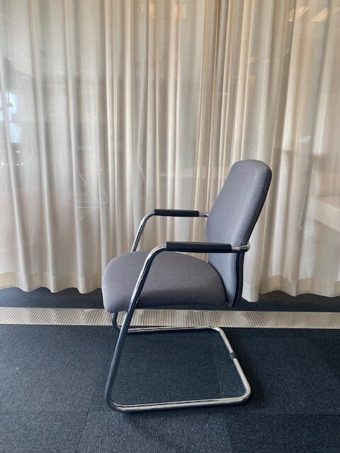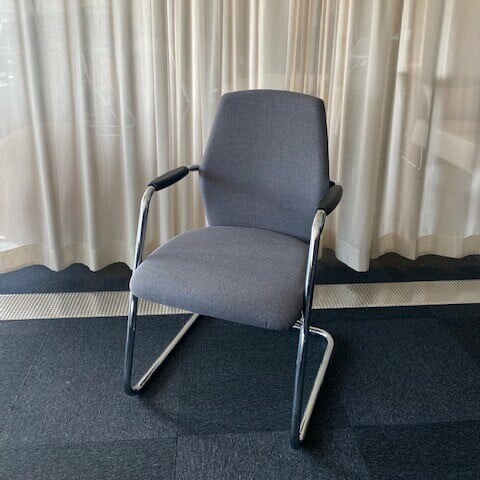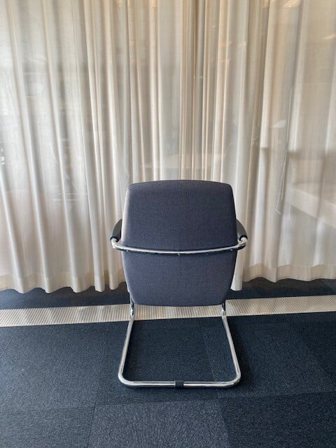 Sits och rygg i tyg (blå). Medstativ i metall (krom).