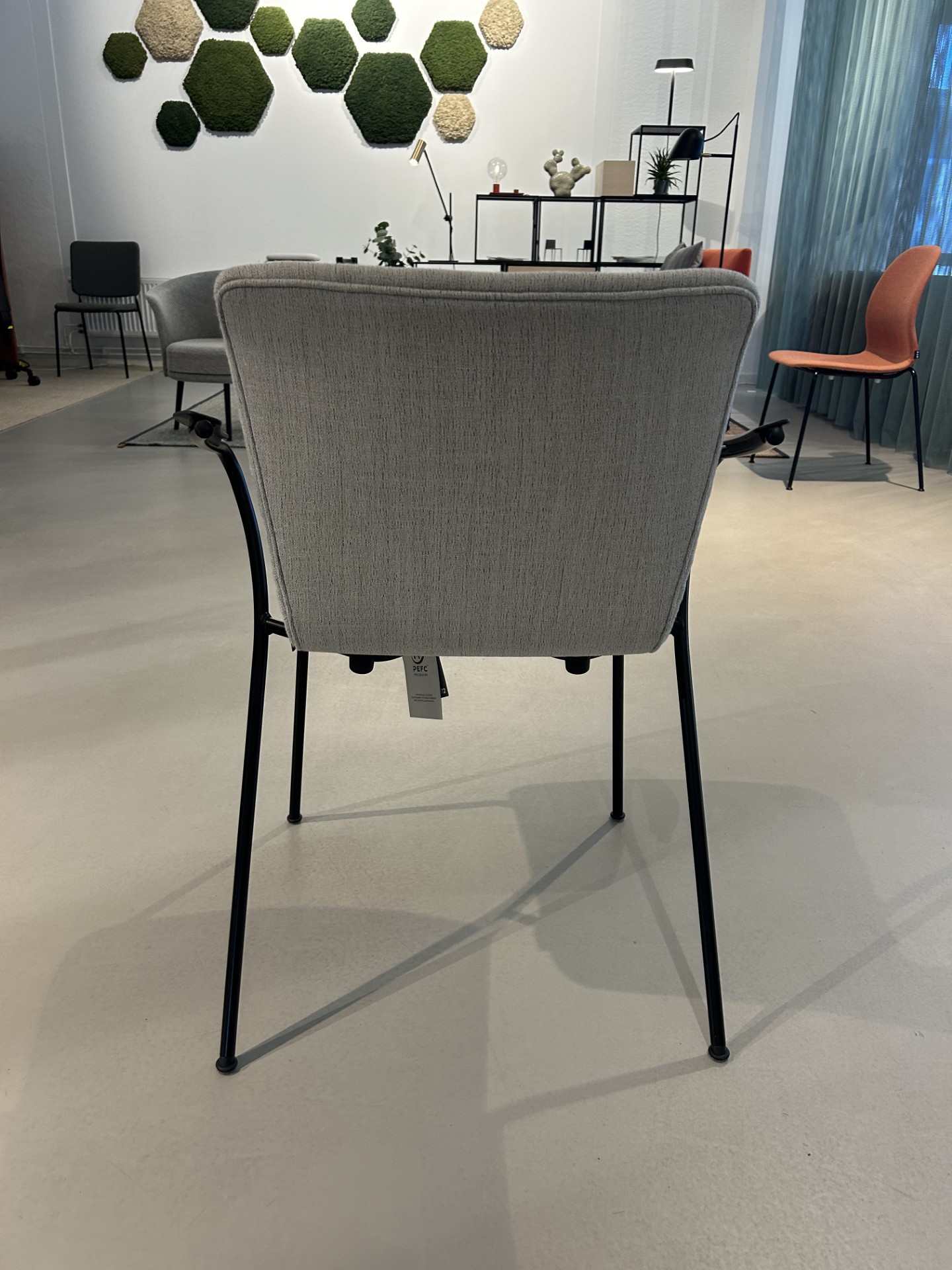 Sits och rygg i tyg (beige). Ben i metall (svart).