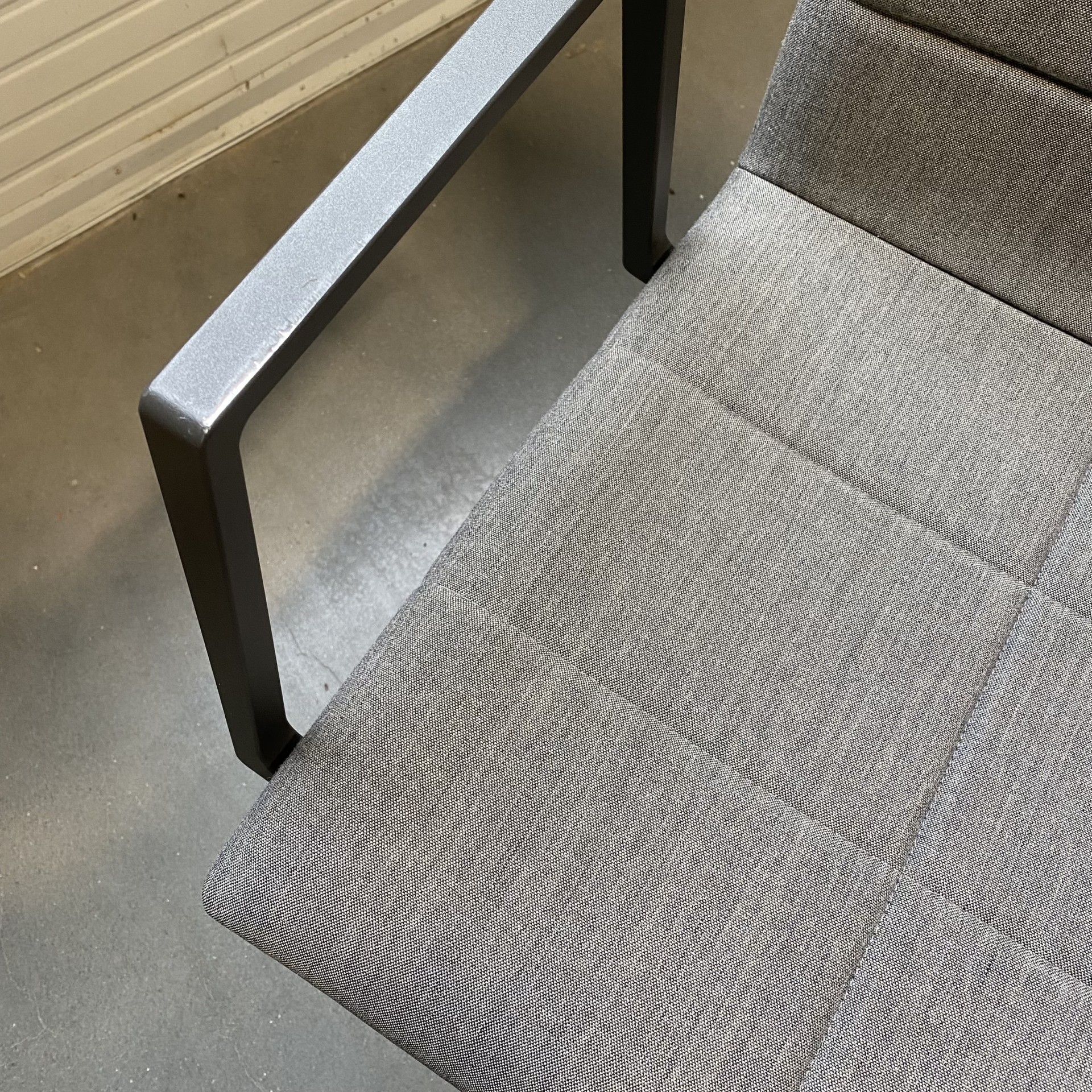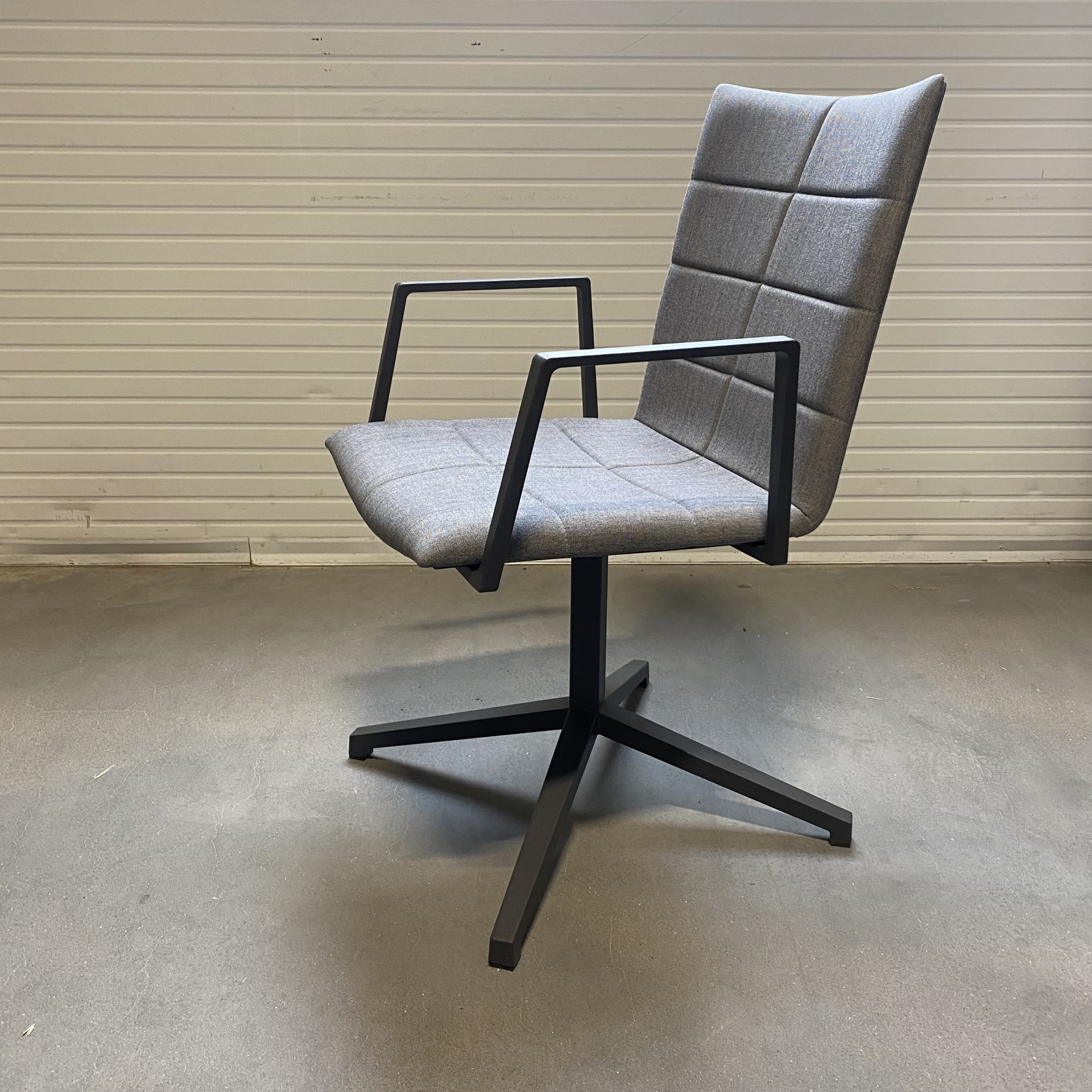 Sits och rygg i tyg (grå). Kryssfot i metall (svart).