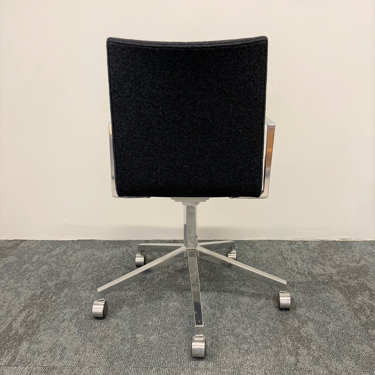 Sits och rygg i tyg (grå). Kryssfot i metall (aluminium). Höj- och sänkbar.