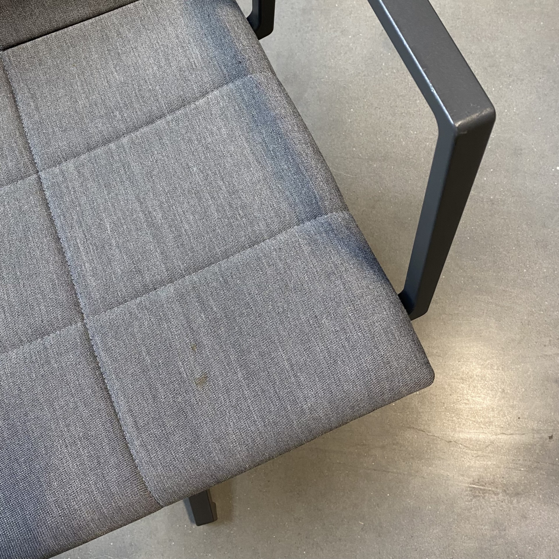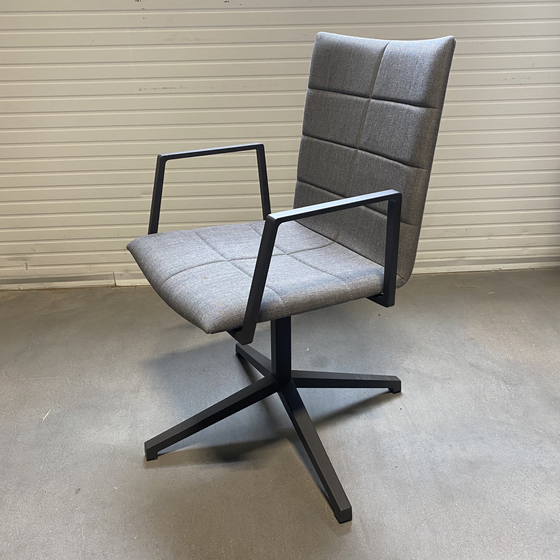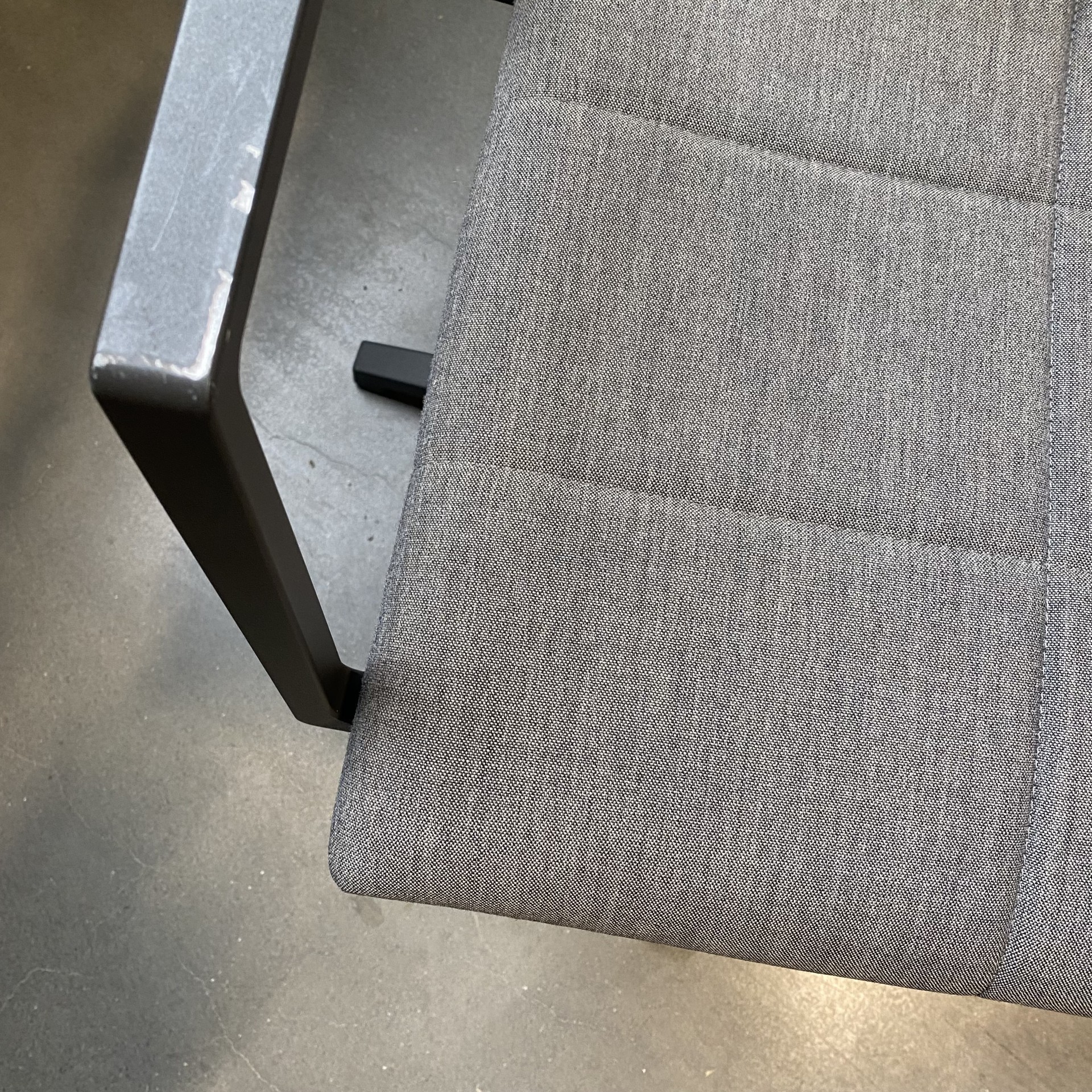 Sits och rygg i tyg (grå). Kryssfot i metall (svart).