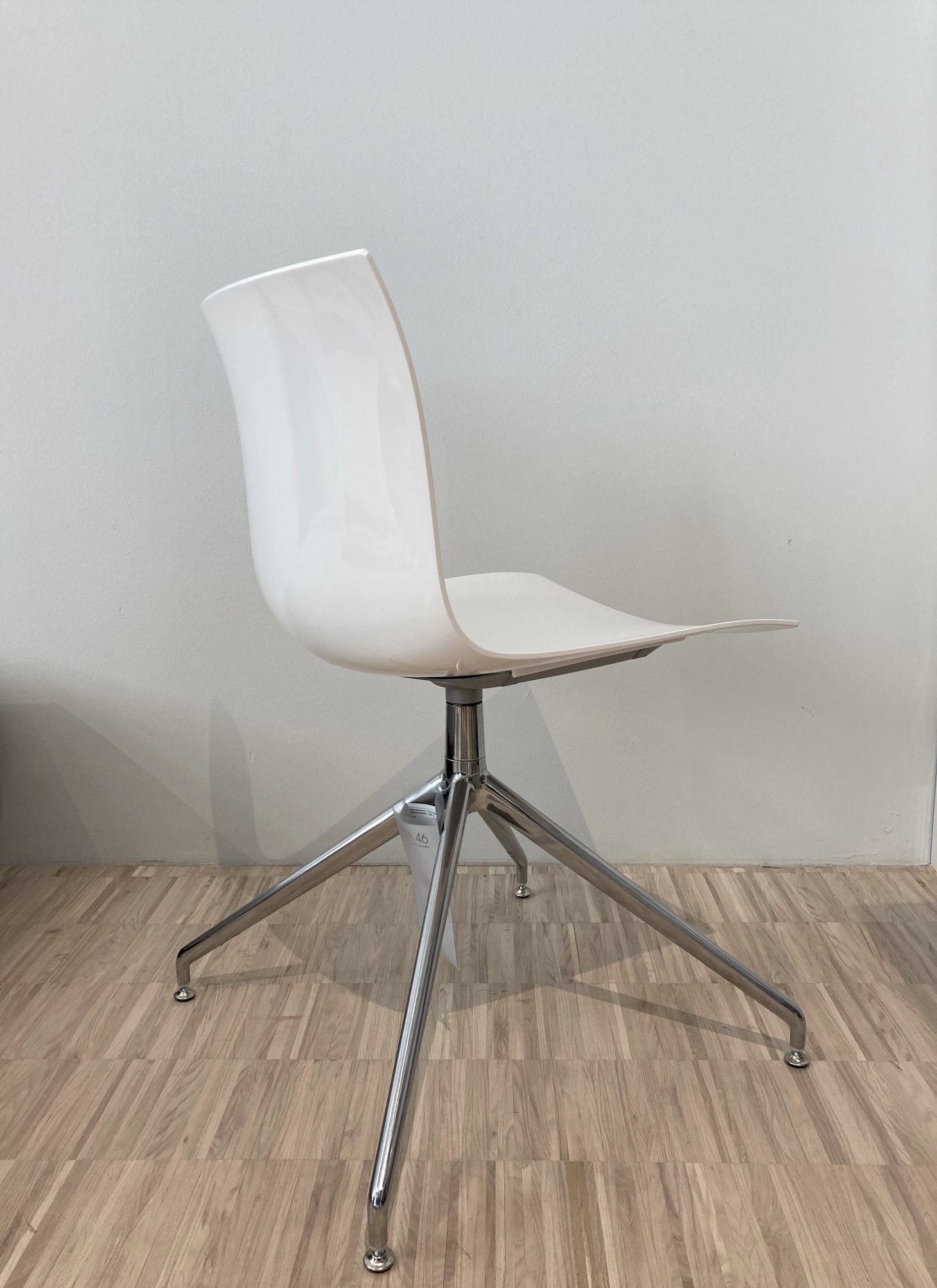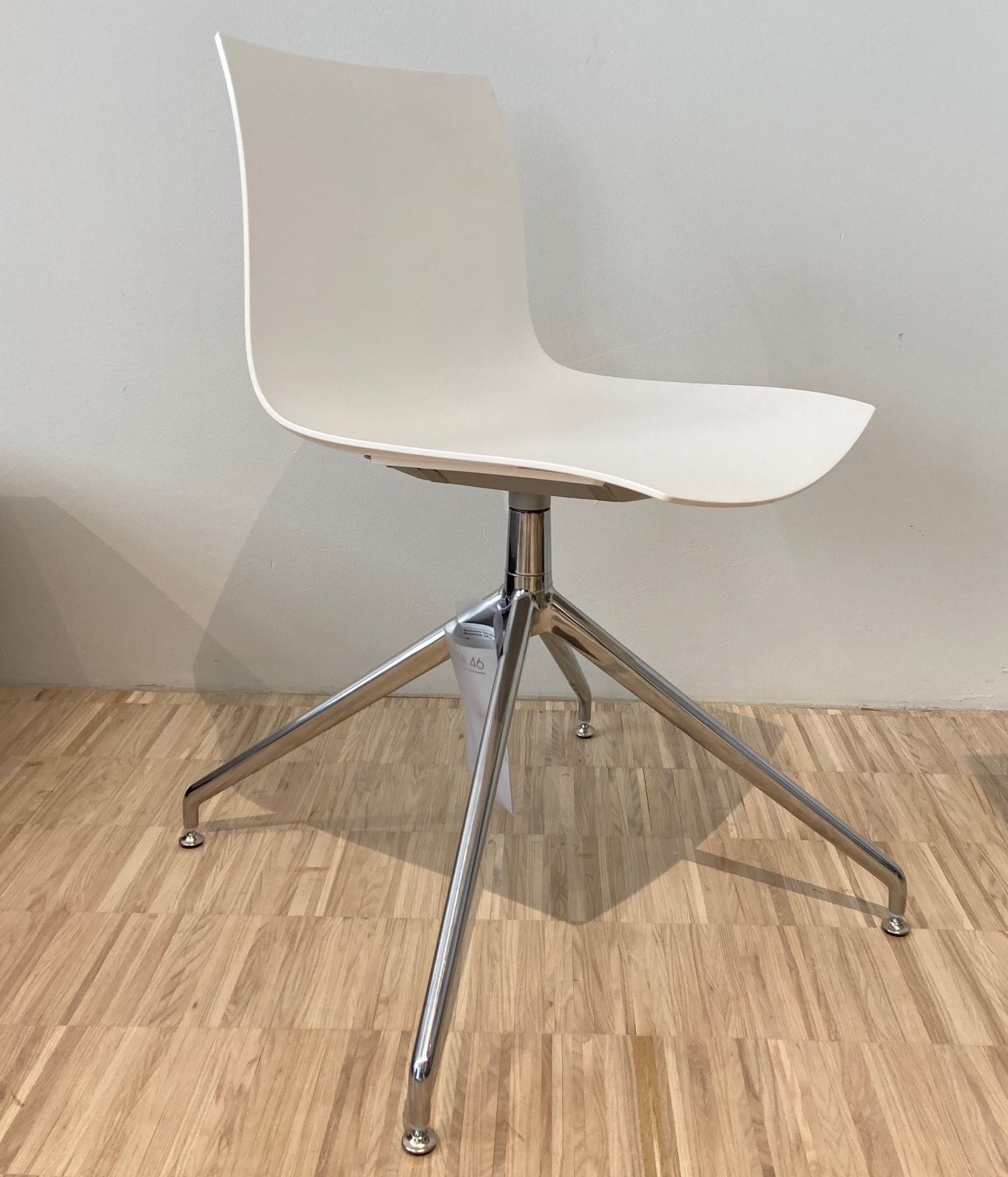 Sits och rygg i plast (vit). Kryssfot i metall (aluminium).