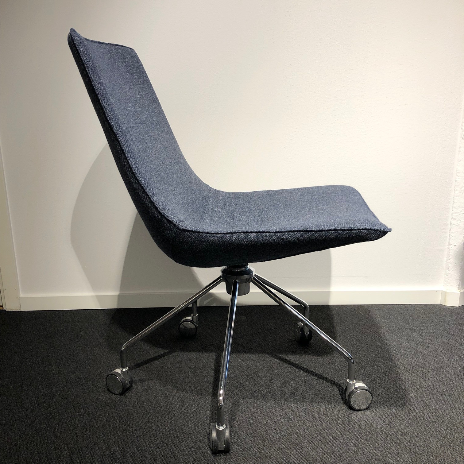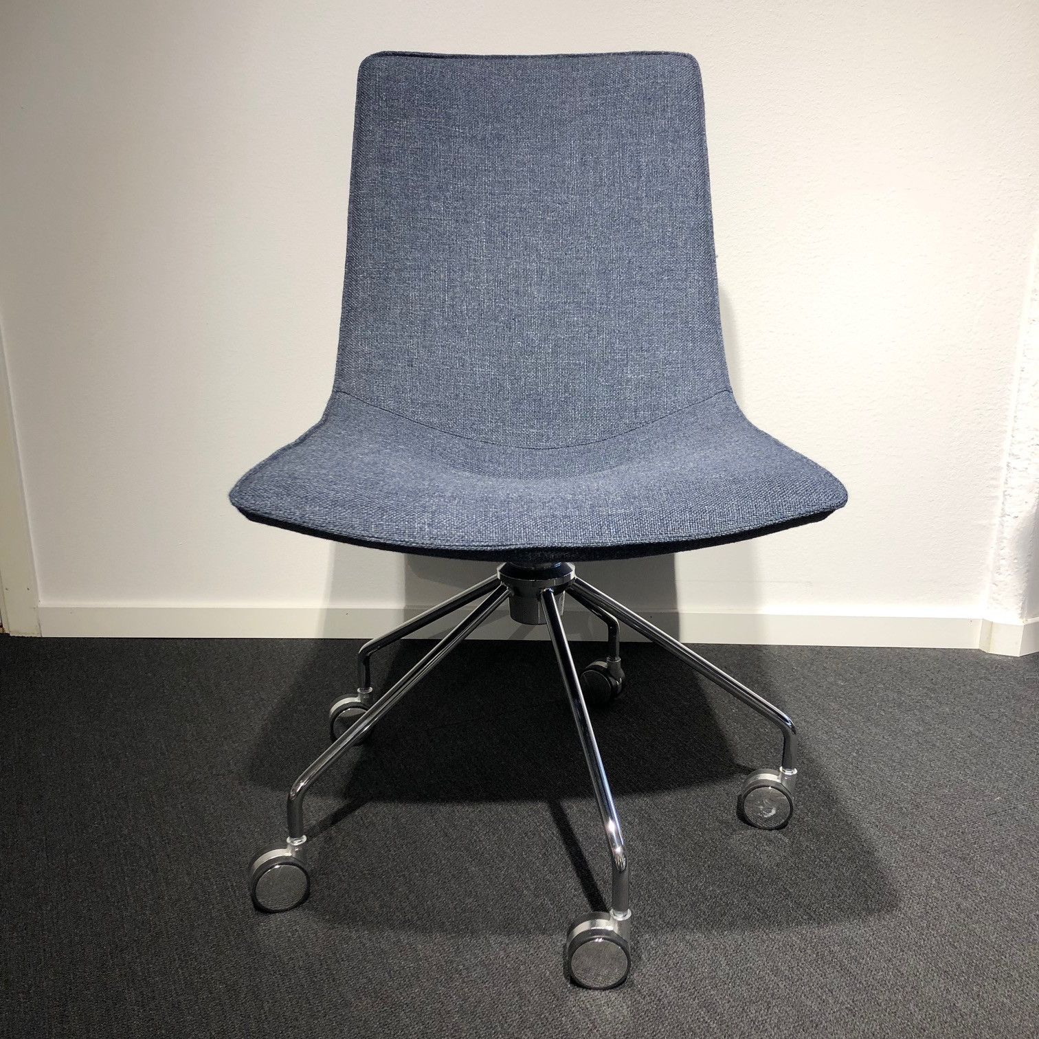 Sits och rygg i tyg (blå). Kryssfot i metall (krom).