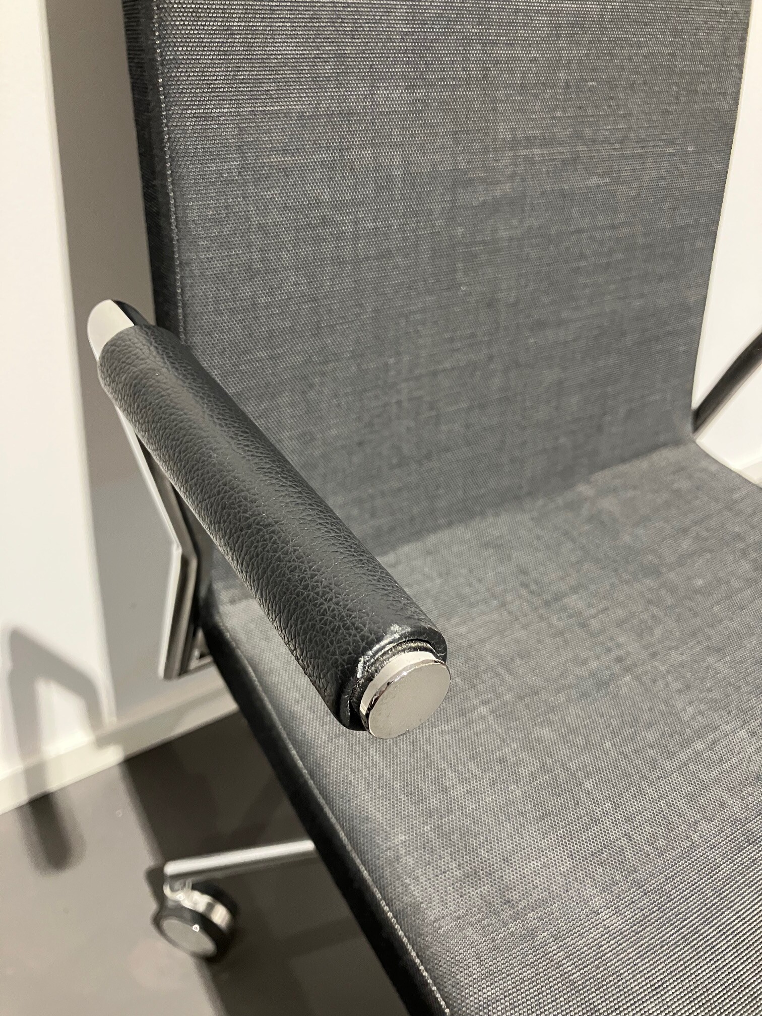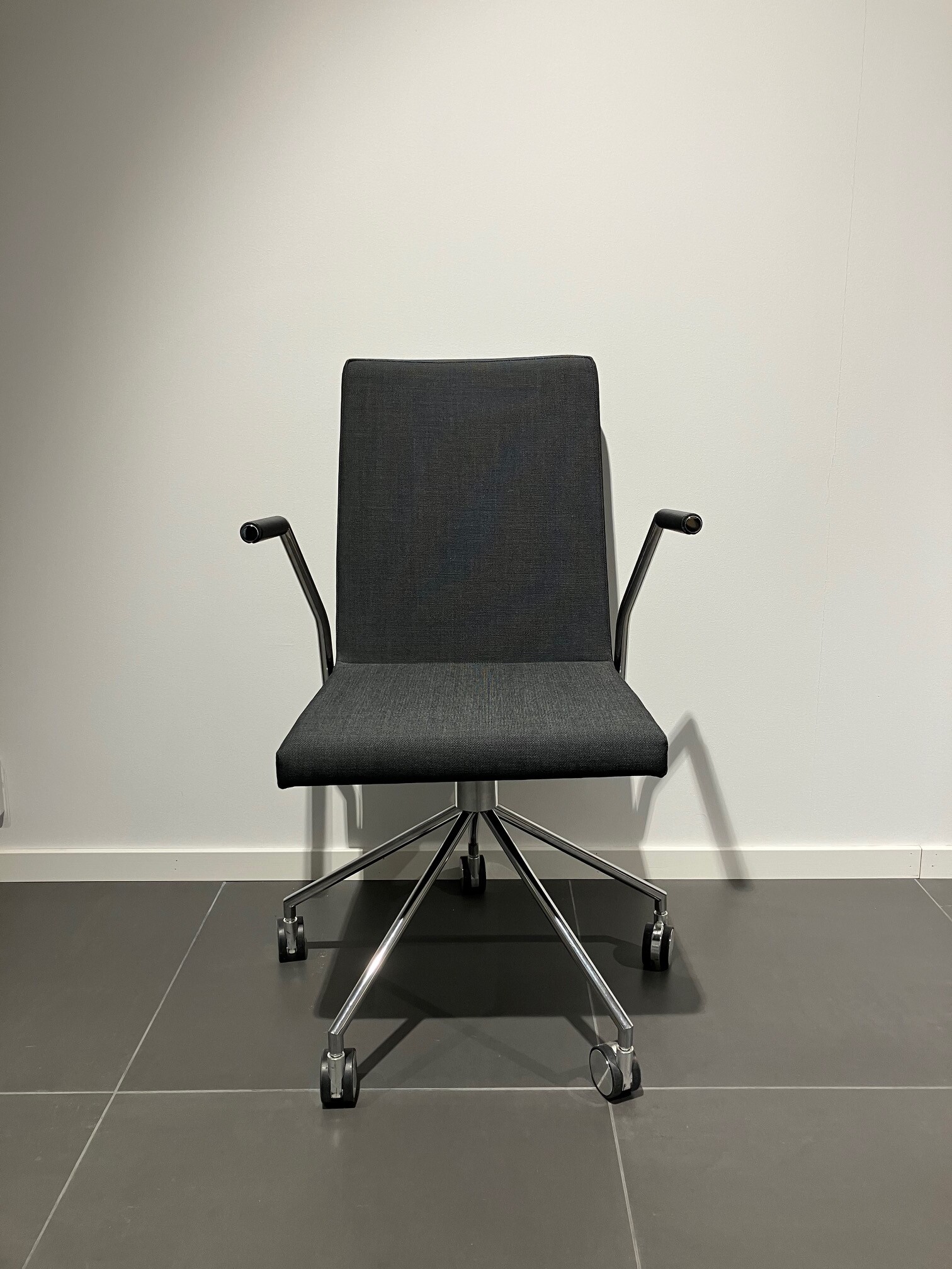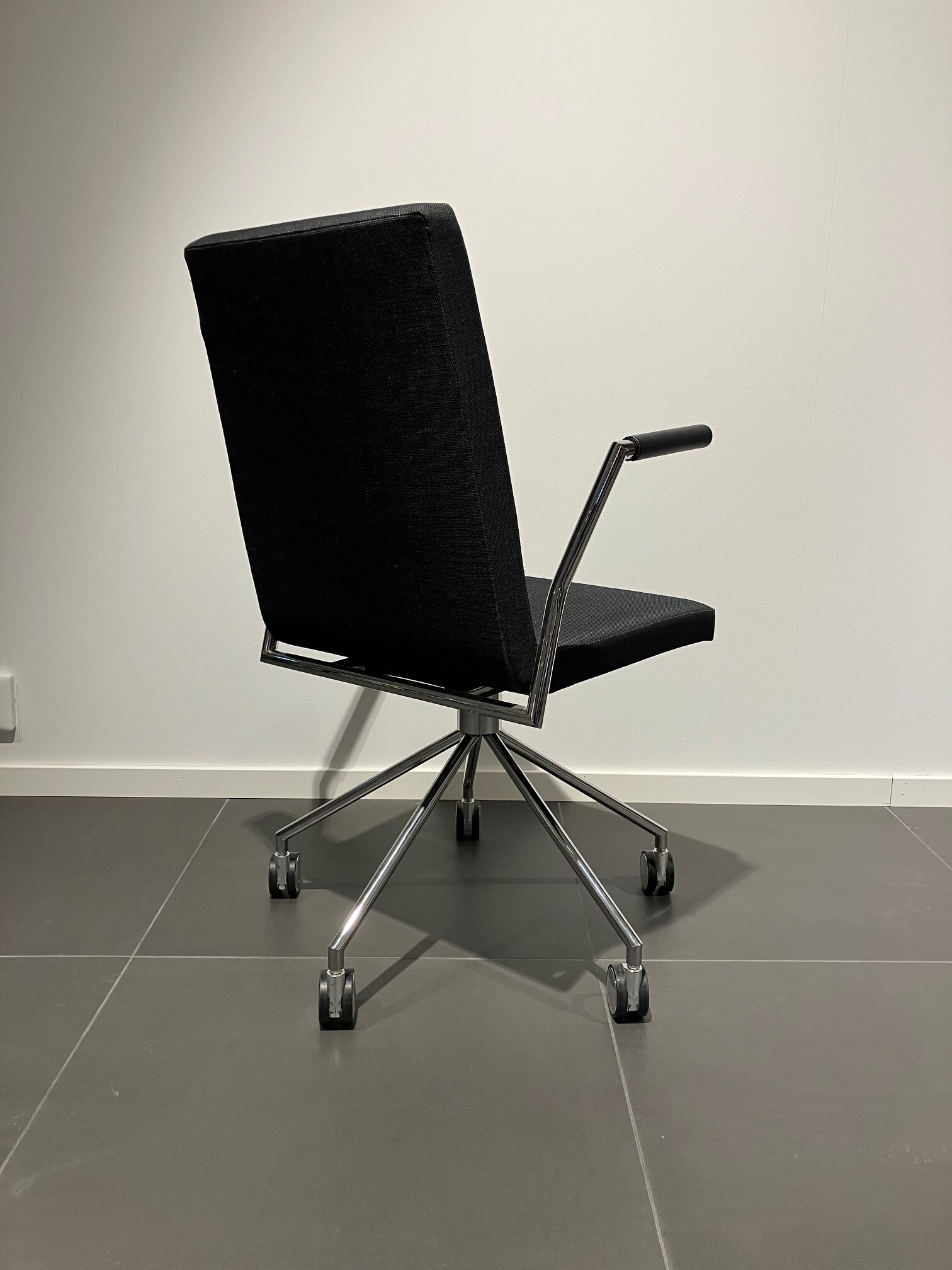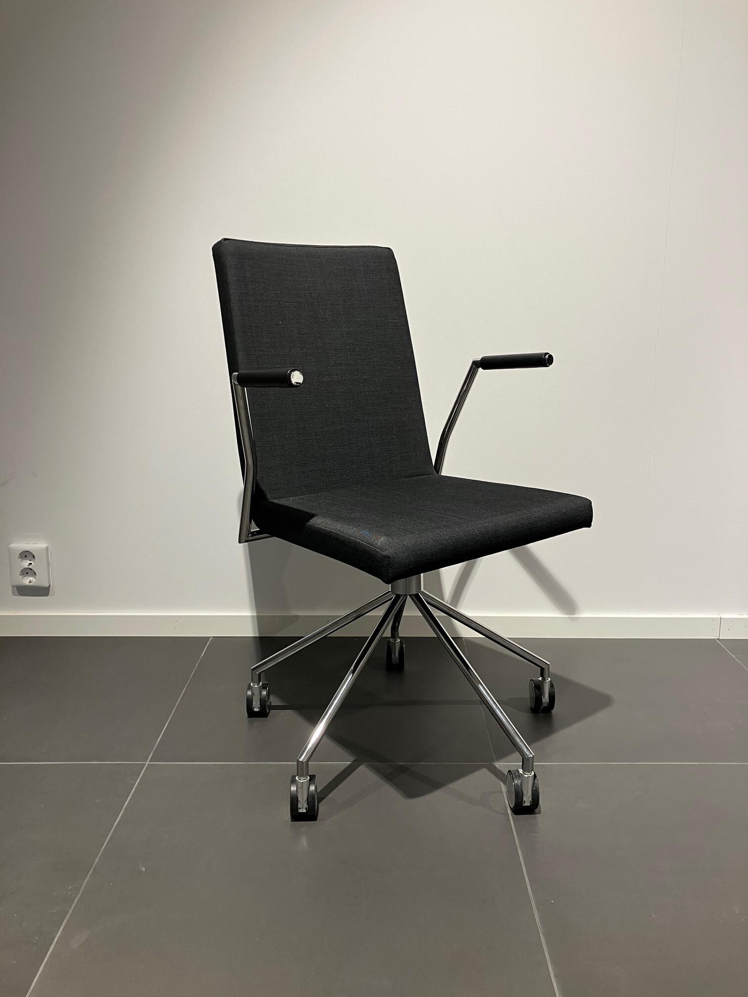 Sits och rygg i tyg (svart). Kryssfot i metall (krom).