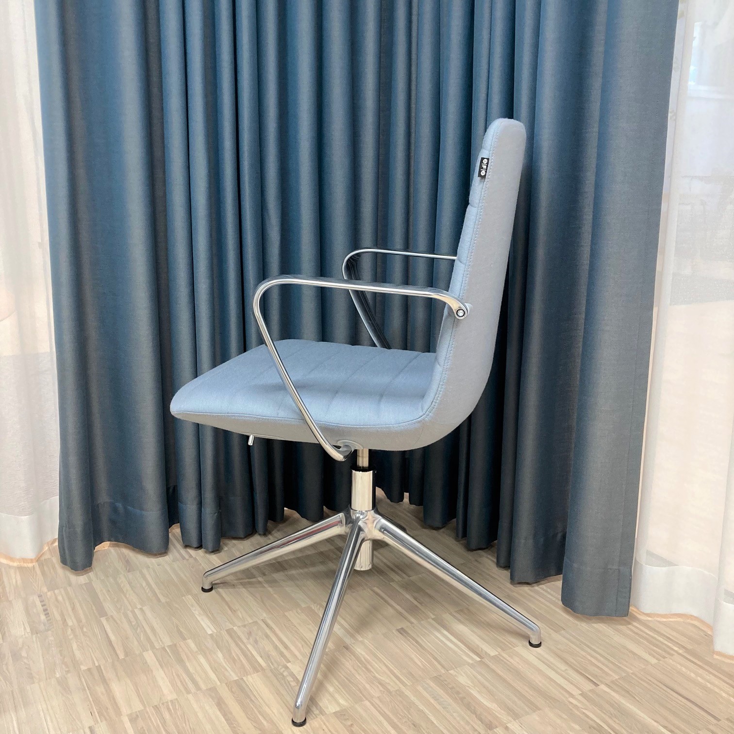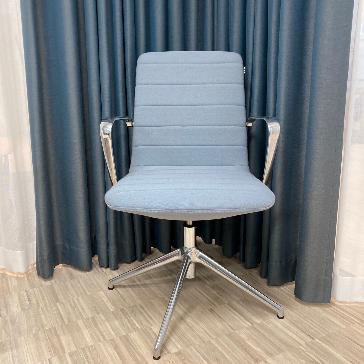 Sits och rygg i tyg (blå). Kryssfot i metall (aluminium). Höj- och sänkbar.