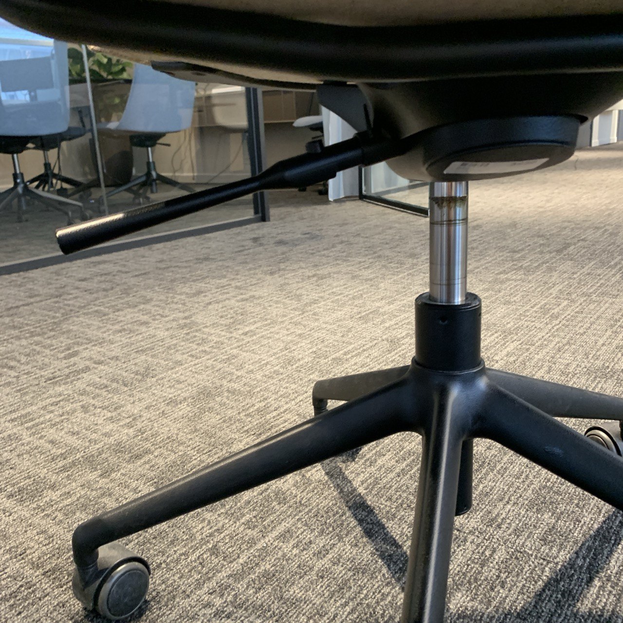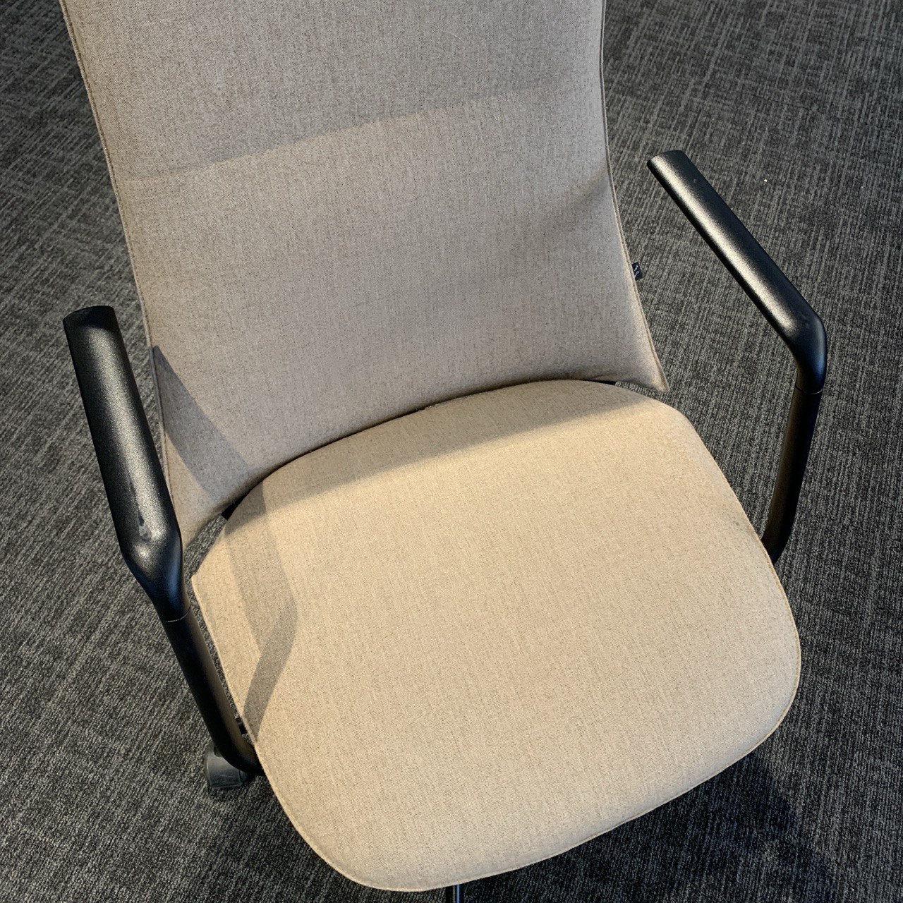 Sits och rygg i tyg (beige). Kryssfot i metall (svart). Höj- och sänkbar.