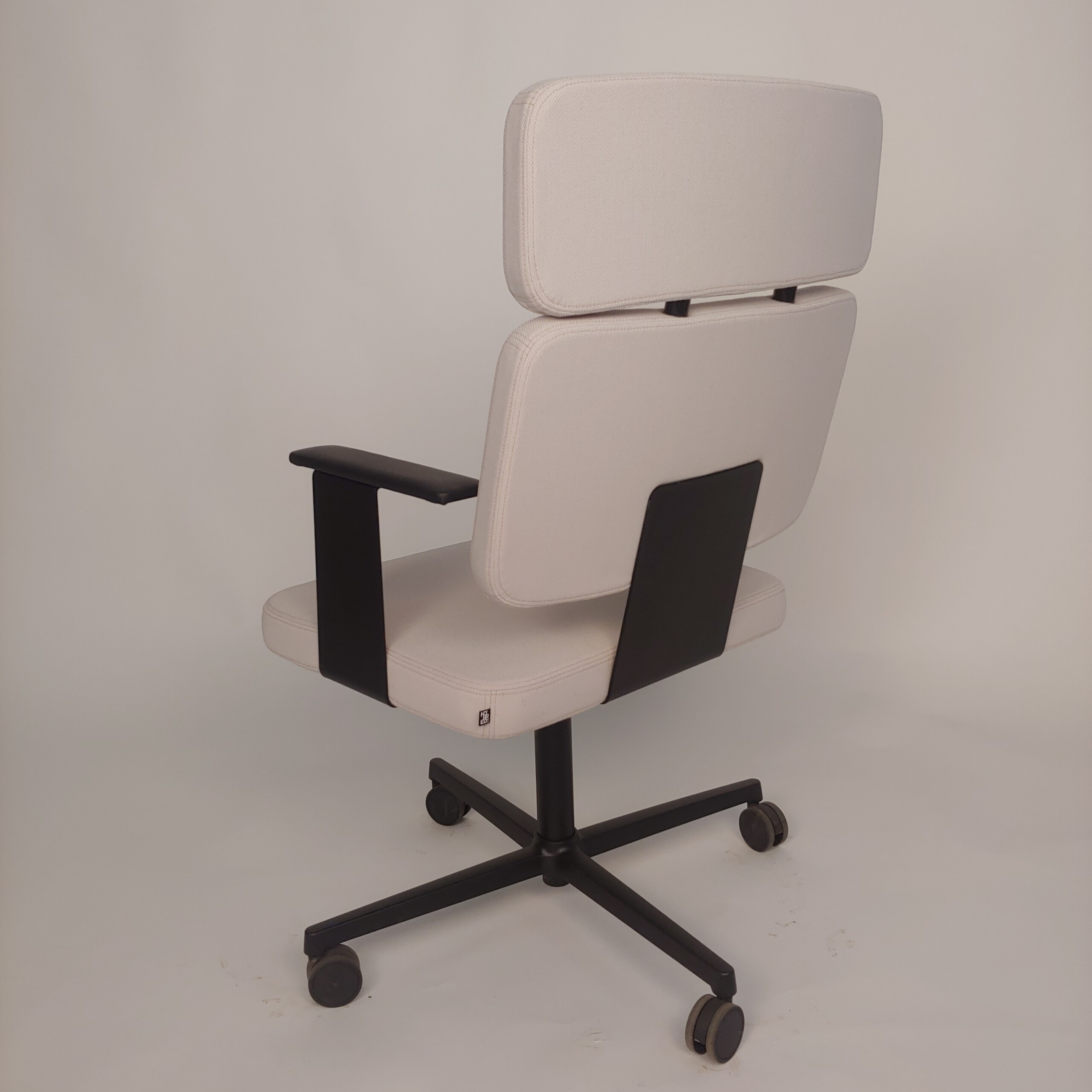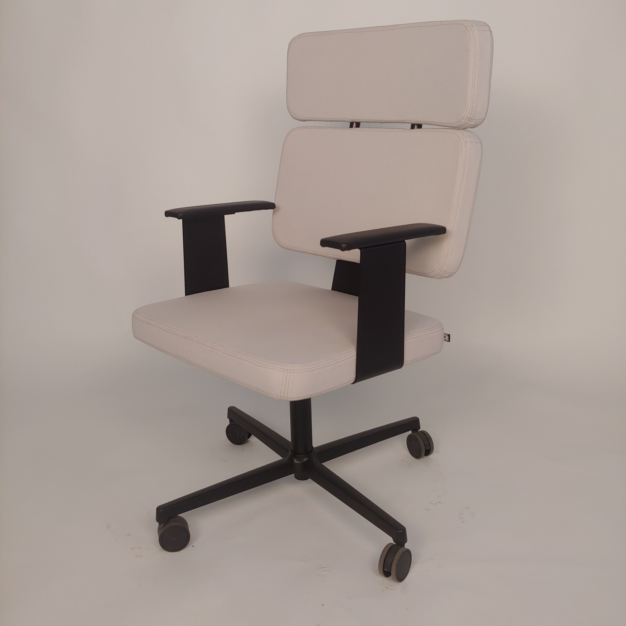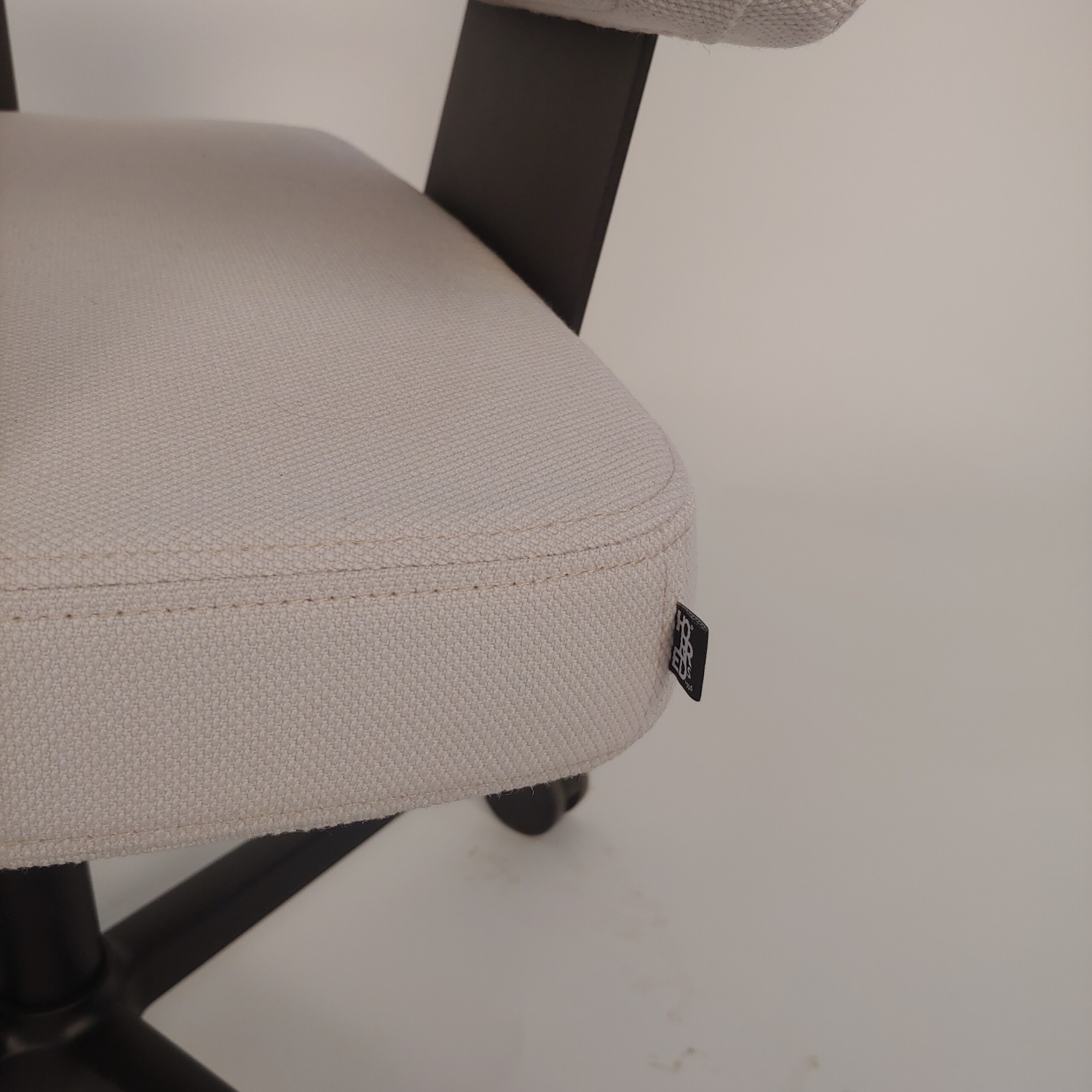 Sits och rygg i tyg (grå). Kryssfot i metall (svart).