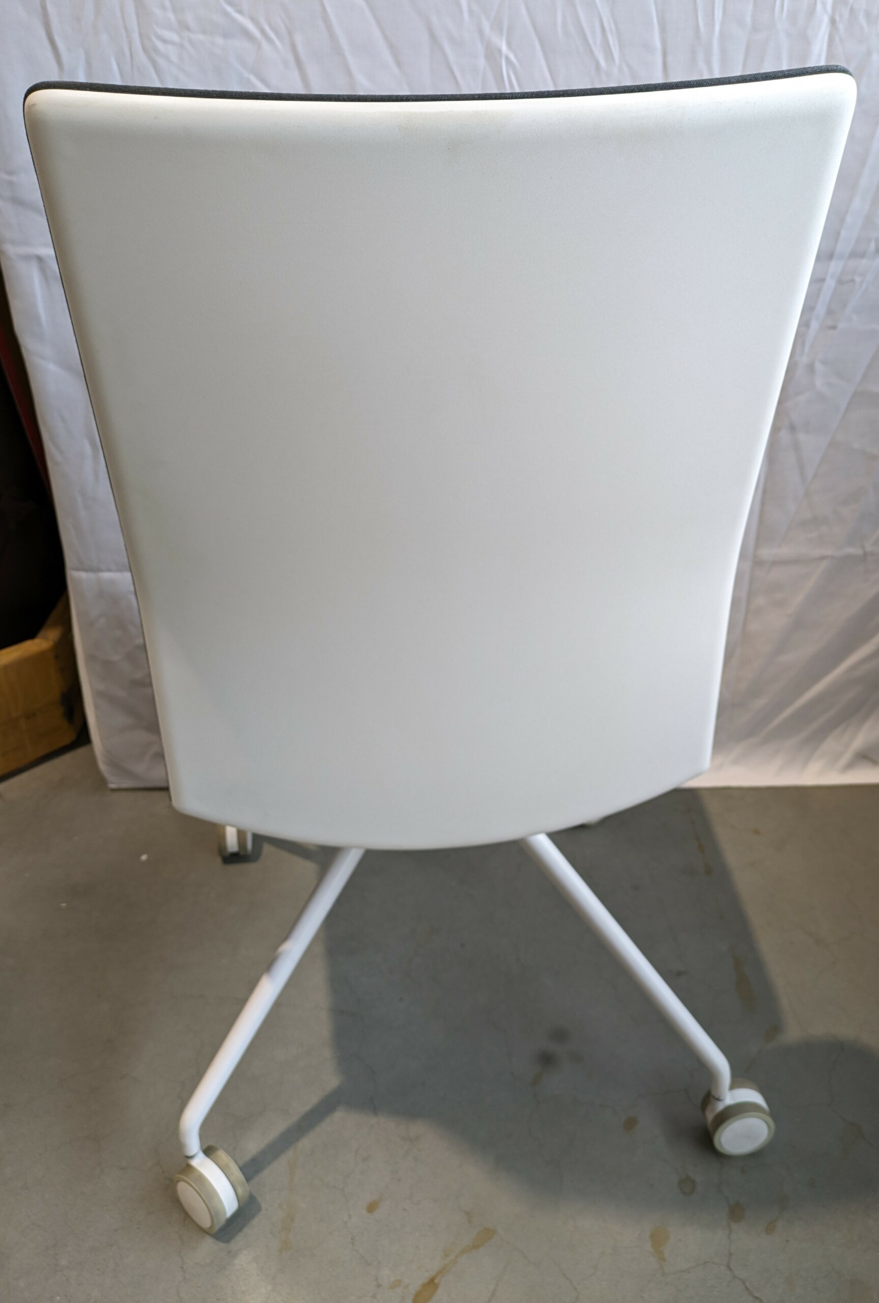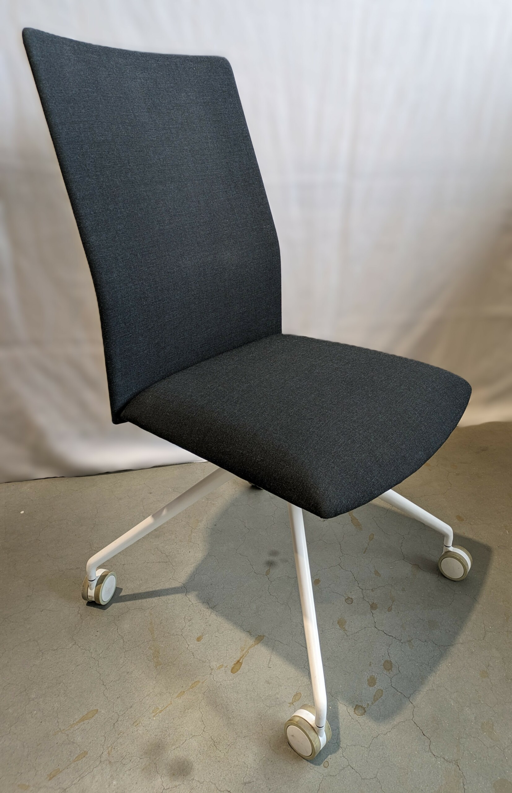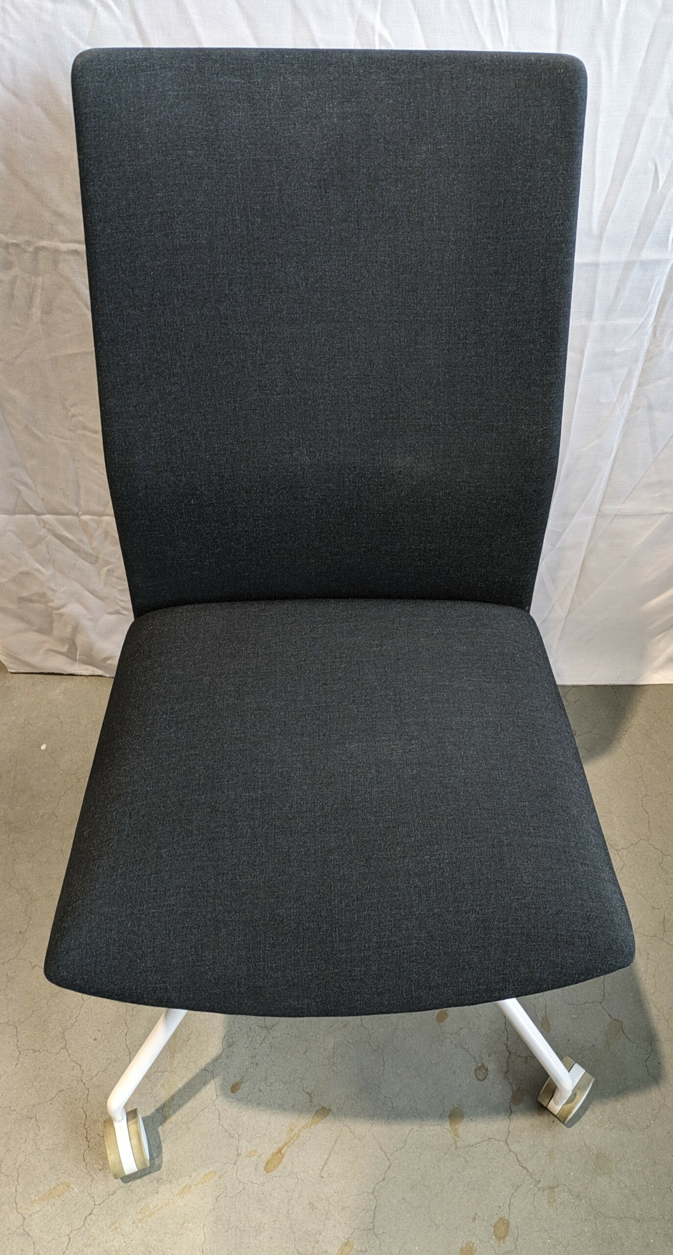 Sits och rygg i tyg (blå). Kryssfot i metall (vit). Höj- och sänkbar.