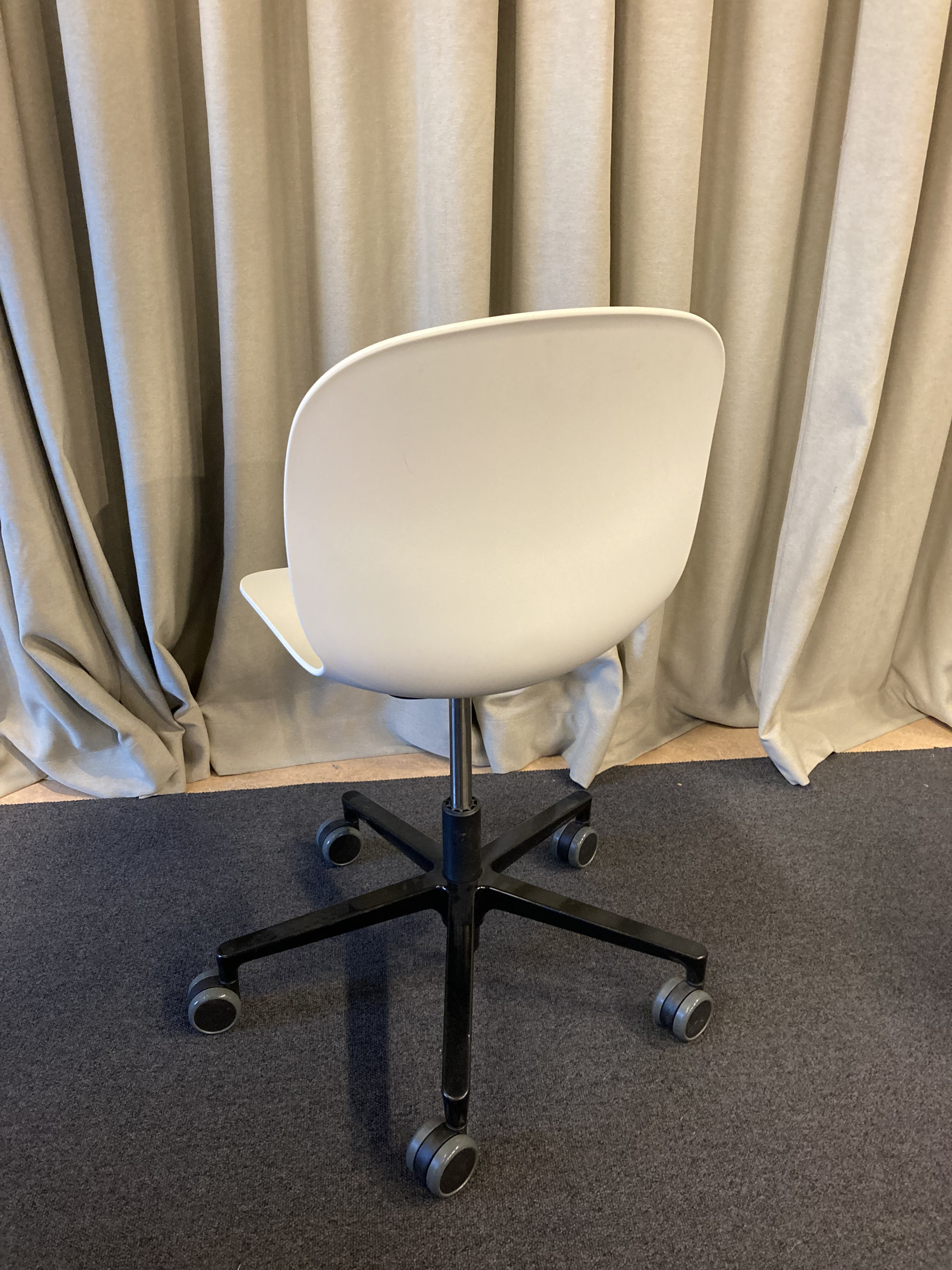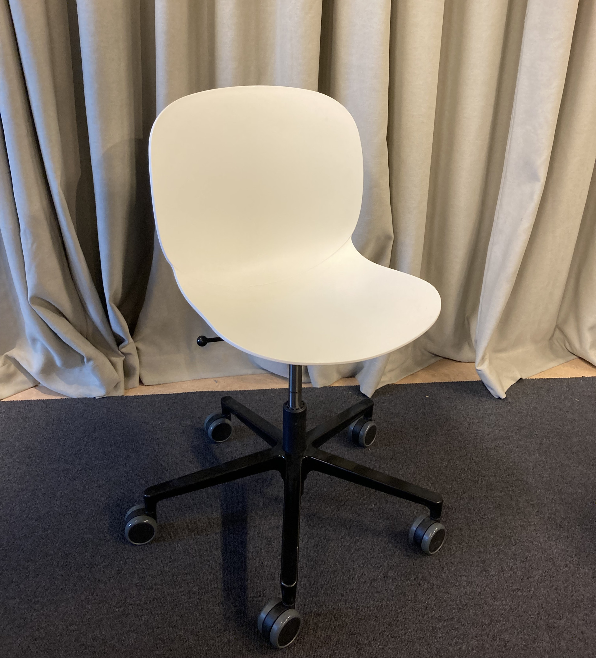Sits och rygg i plast (vit). Kryssfot i metall (svart). Höj- och sänkbar.