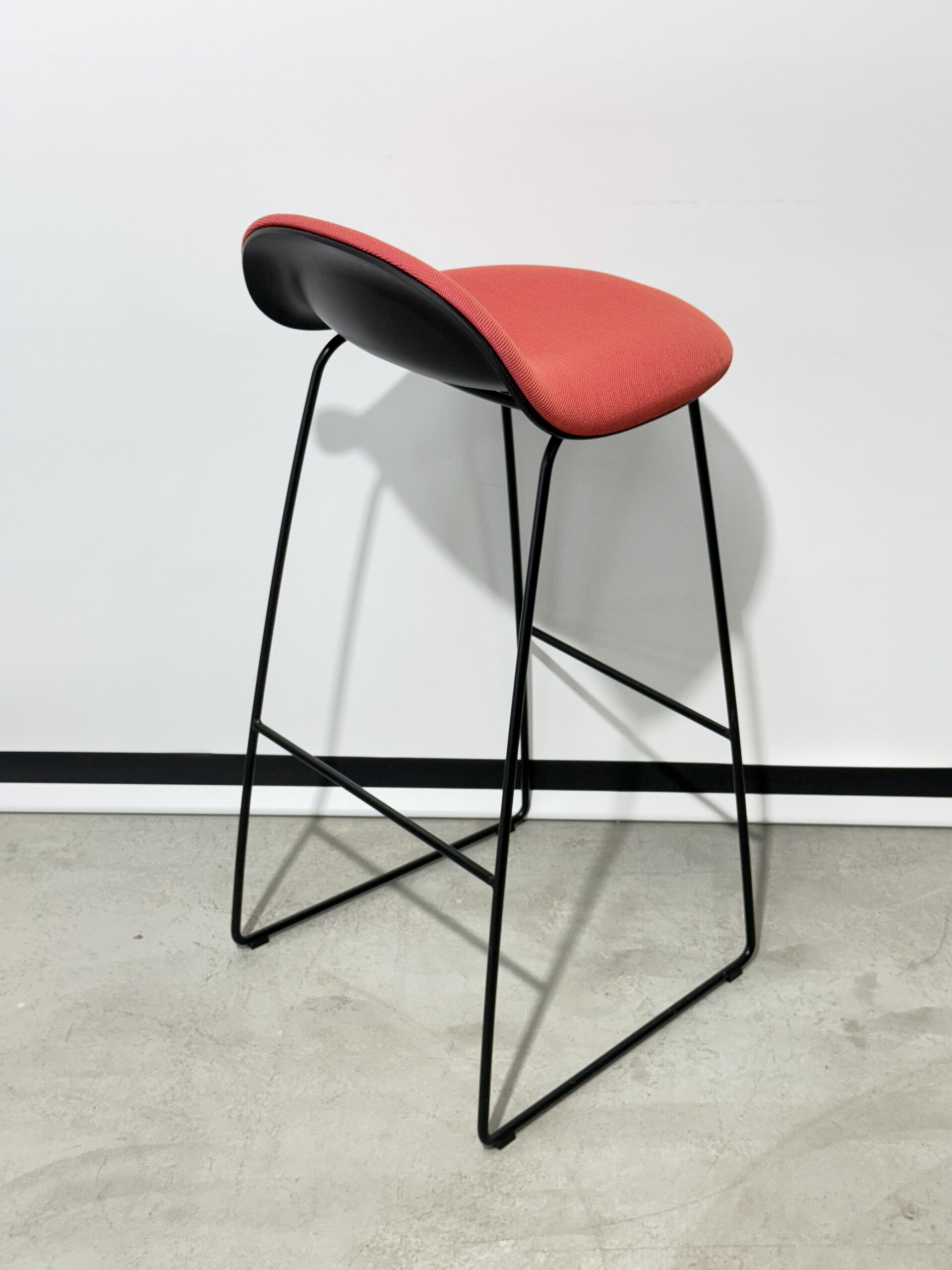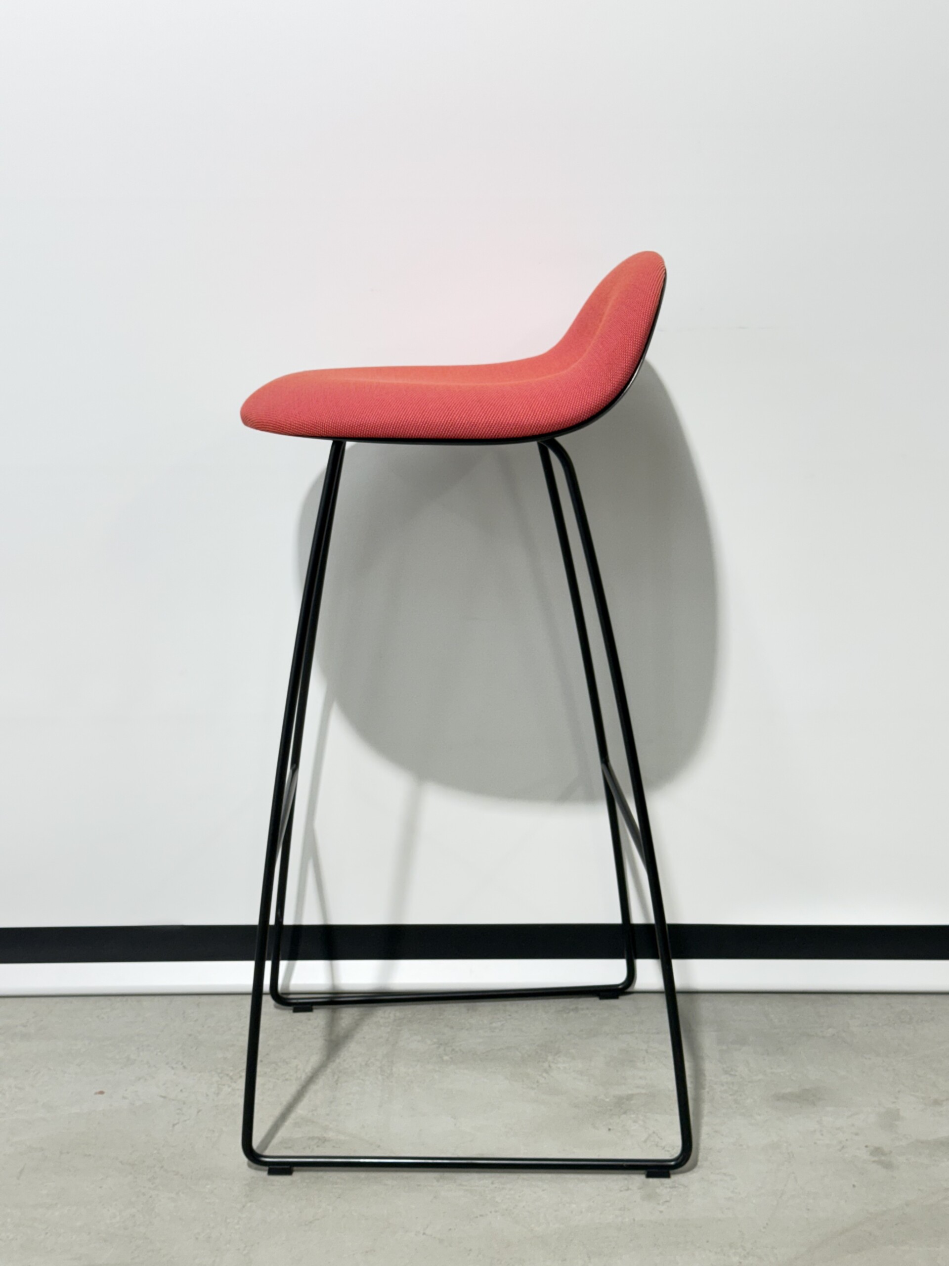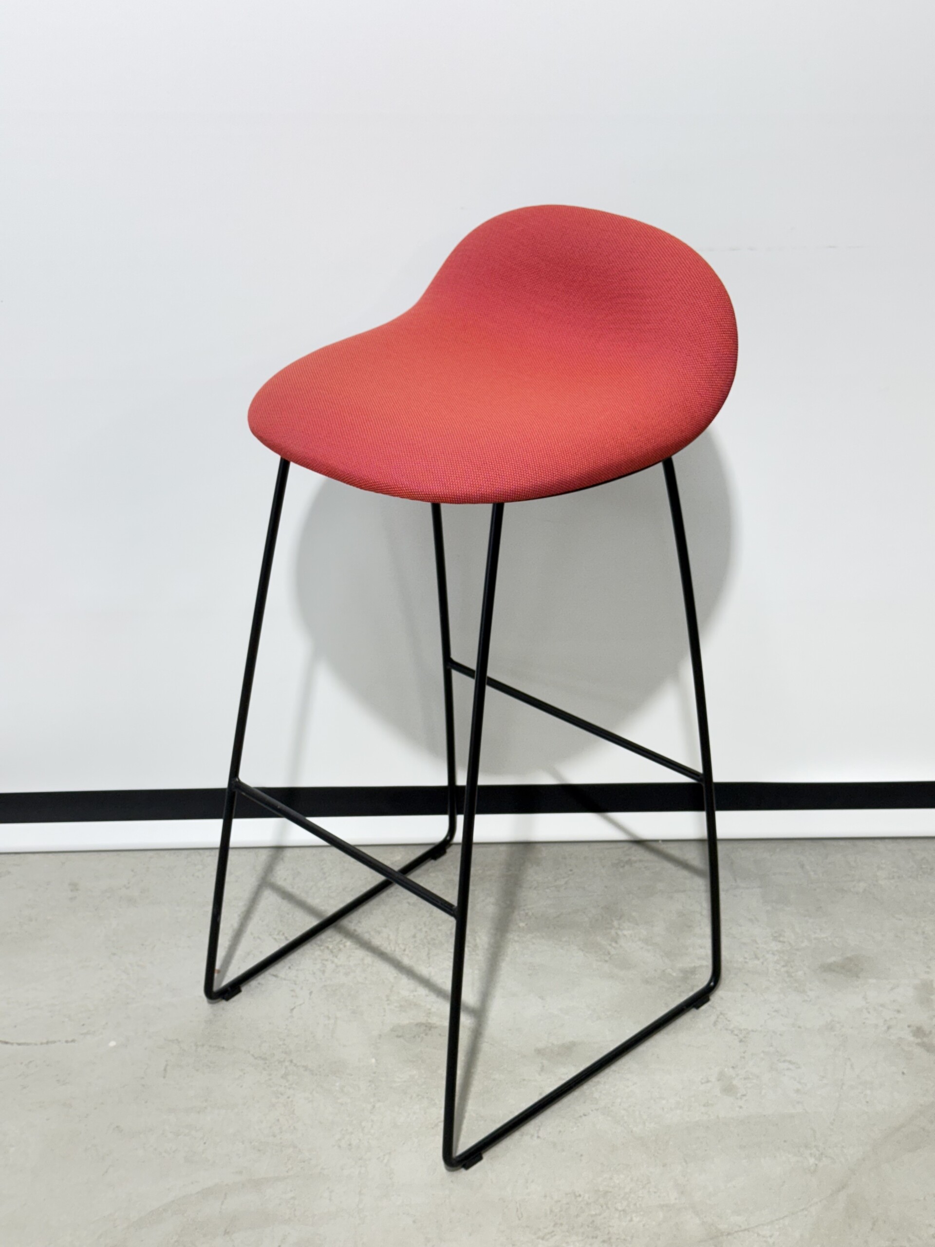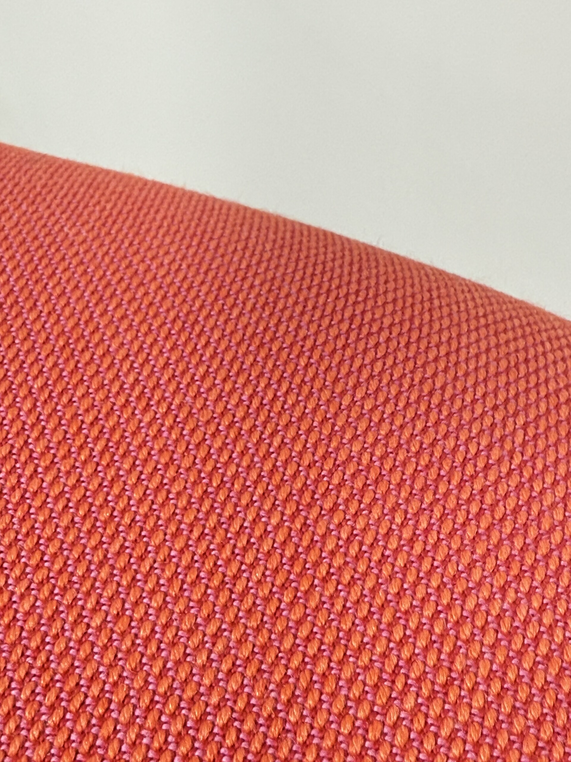 Sits och rygg i tyg (orange). Medstativ i metall (svart).
