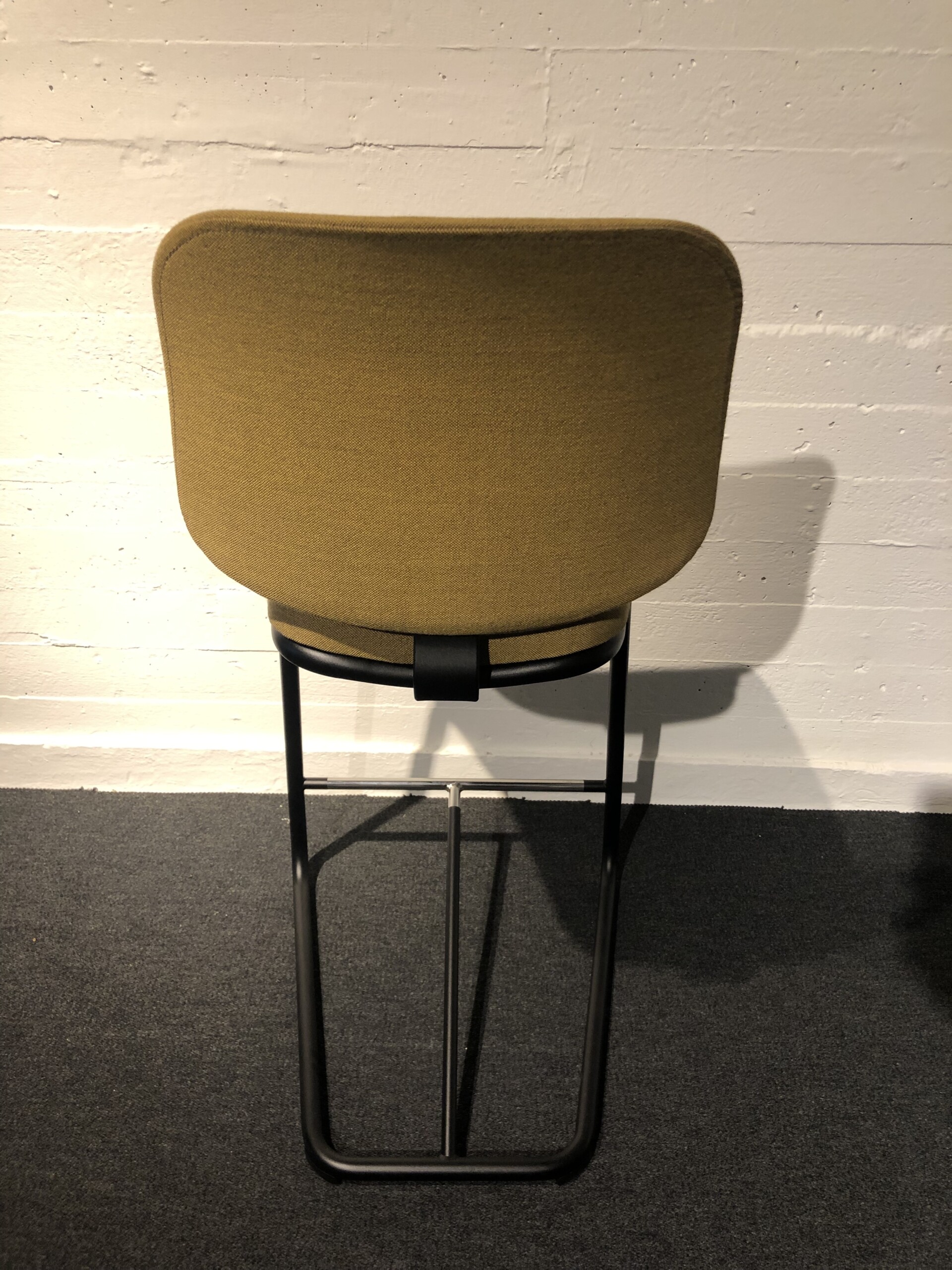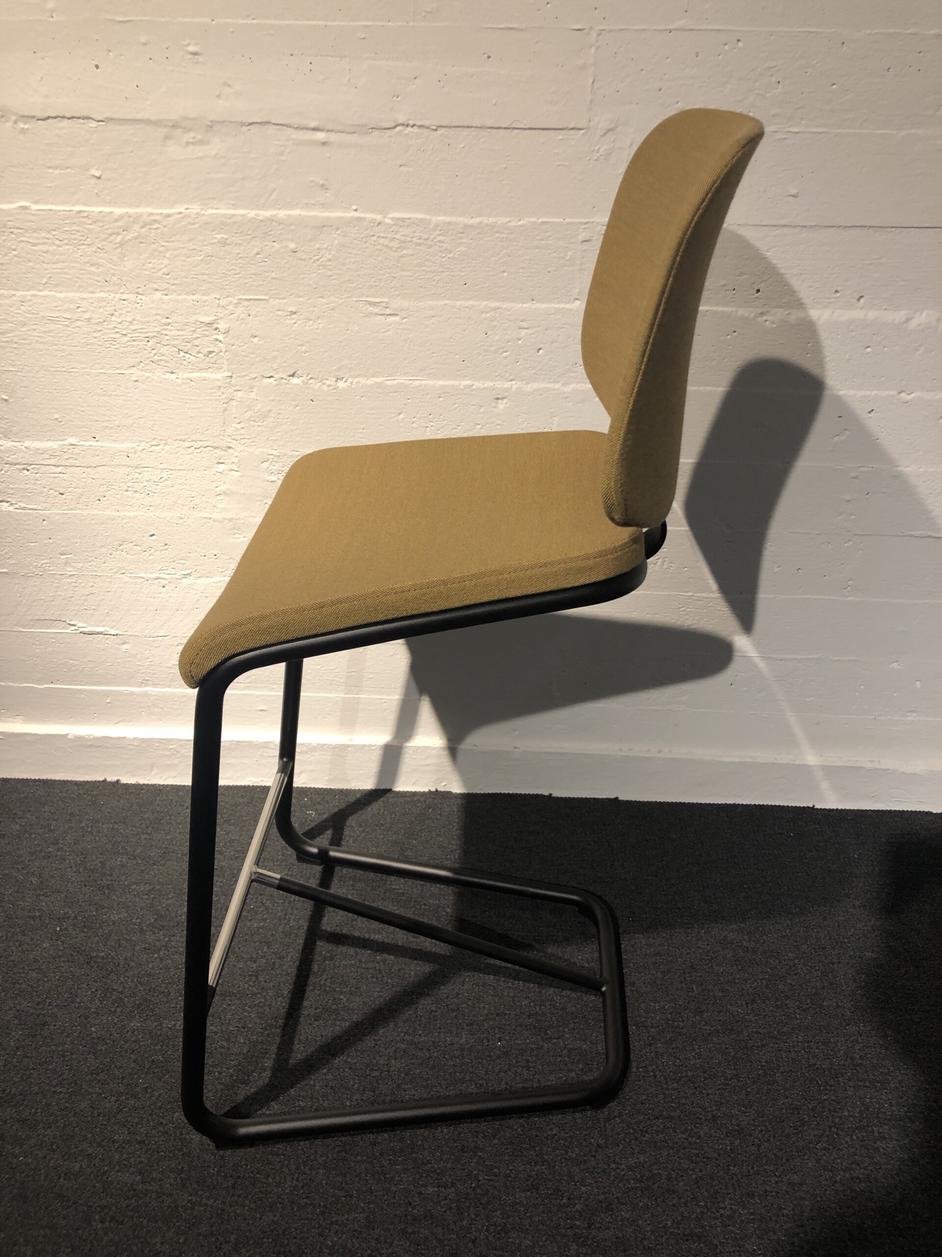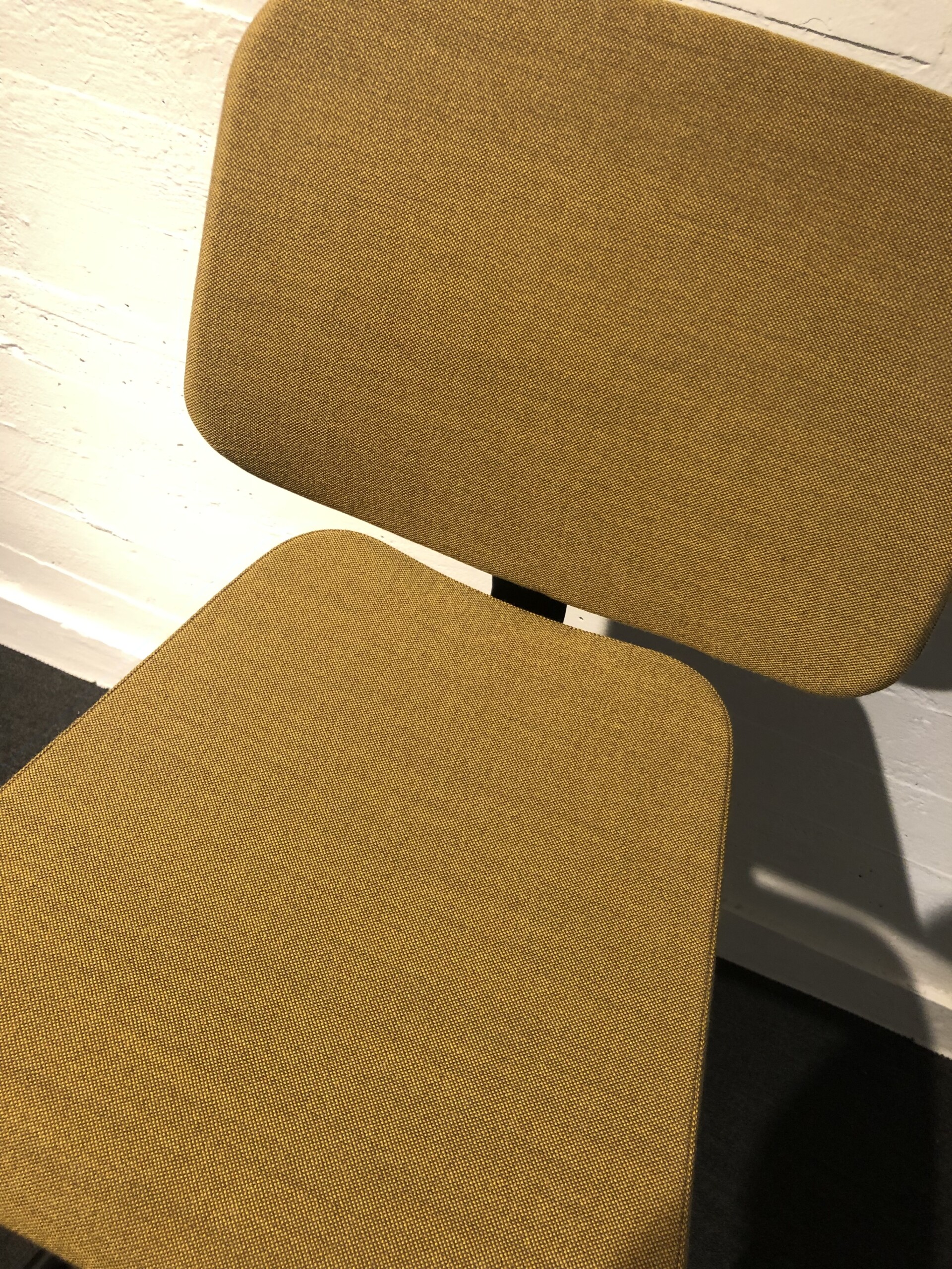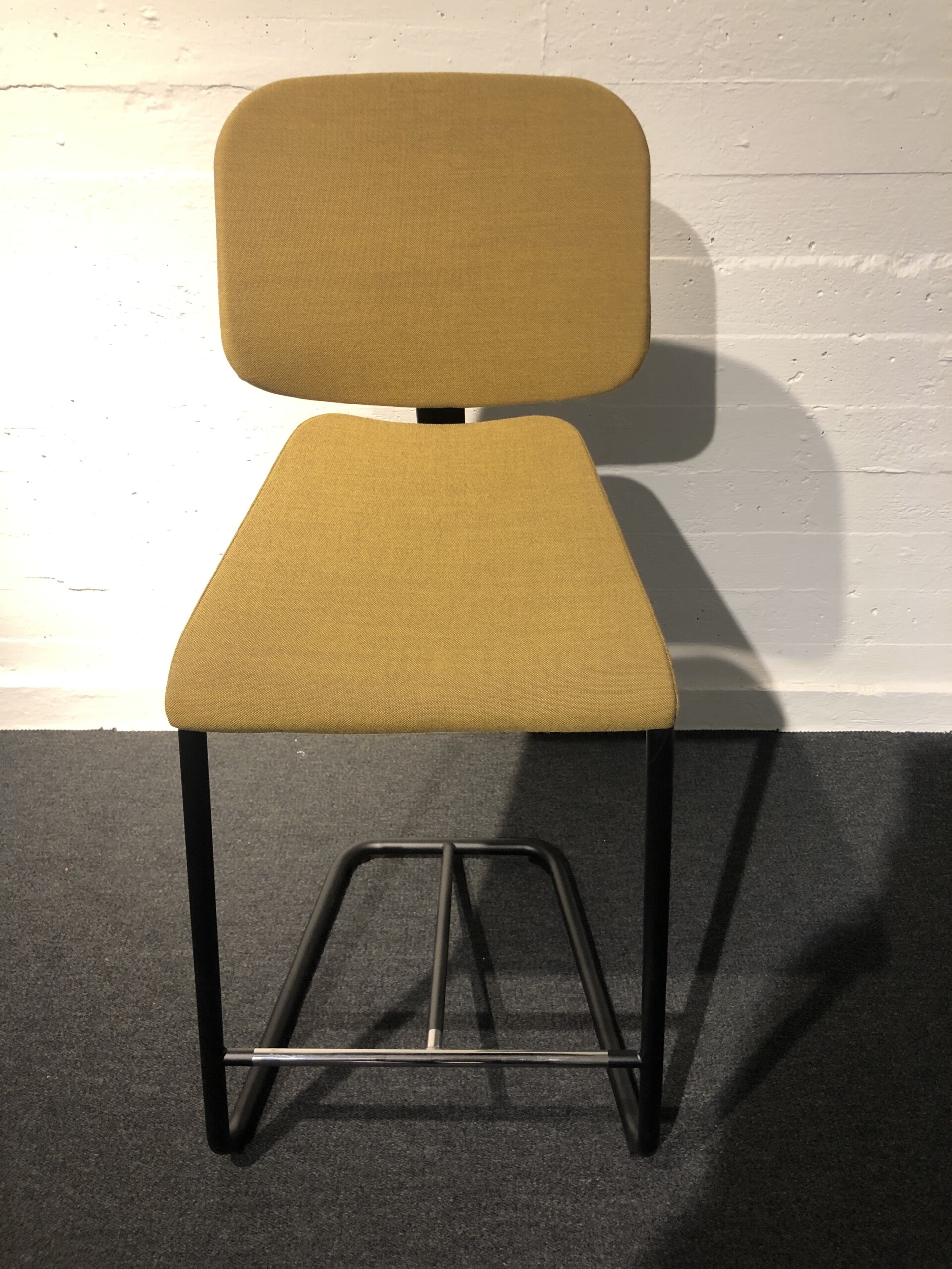 Sits och rygg i tyg (gul). Medstativ i metall (svart).