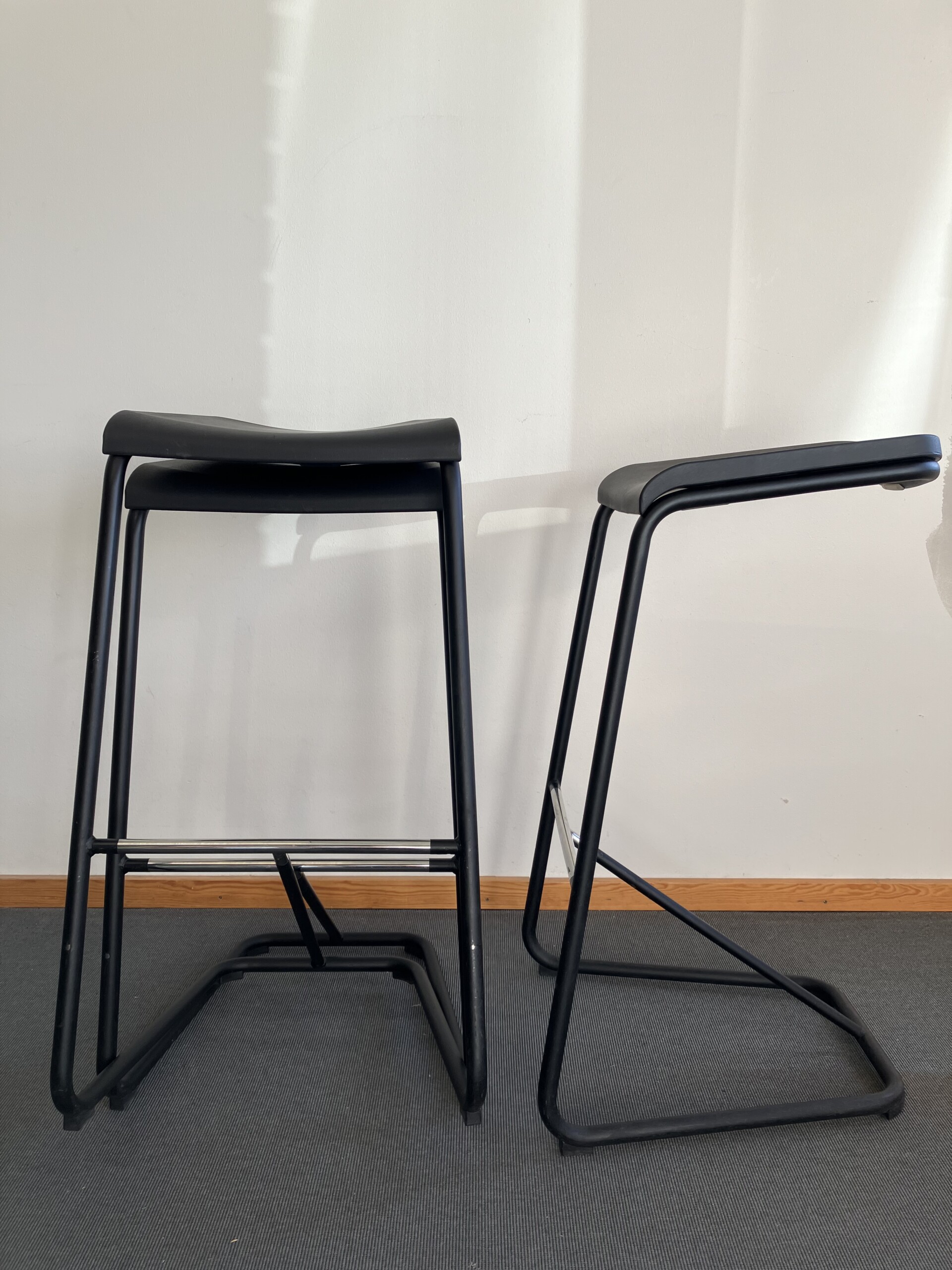 Sits i plast (svart). Medstativ i metall (svart).