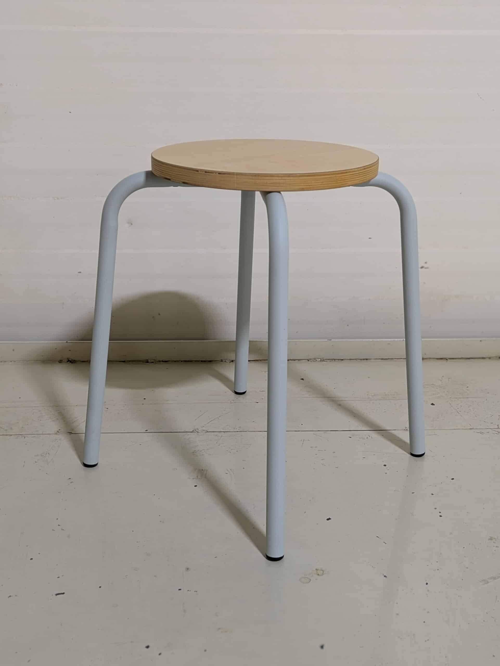 Sits i laminat (björk). Ben i metall (blå).