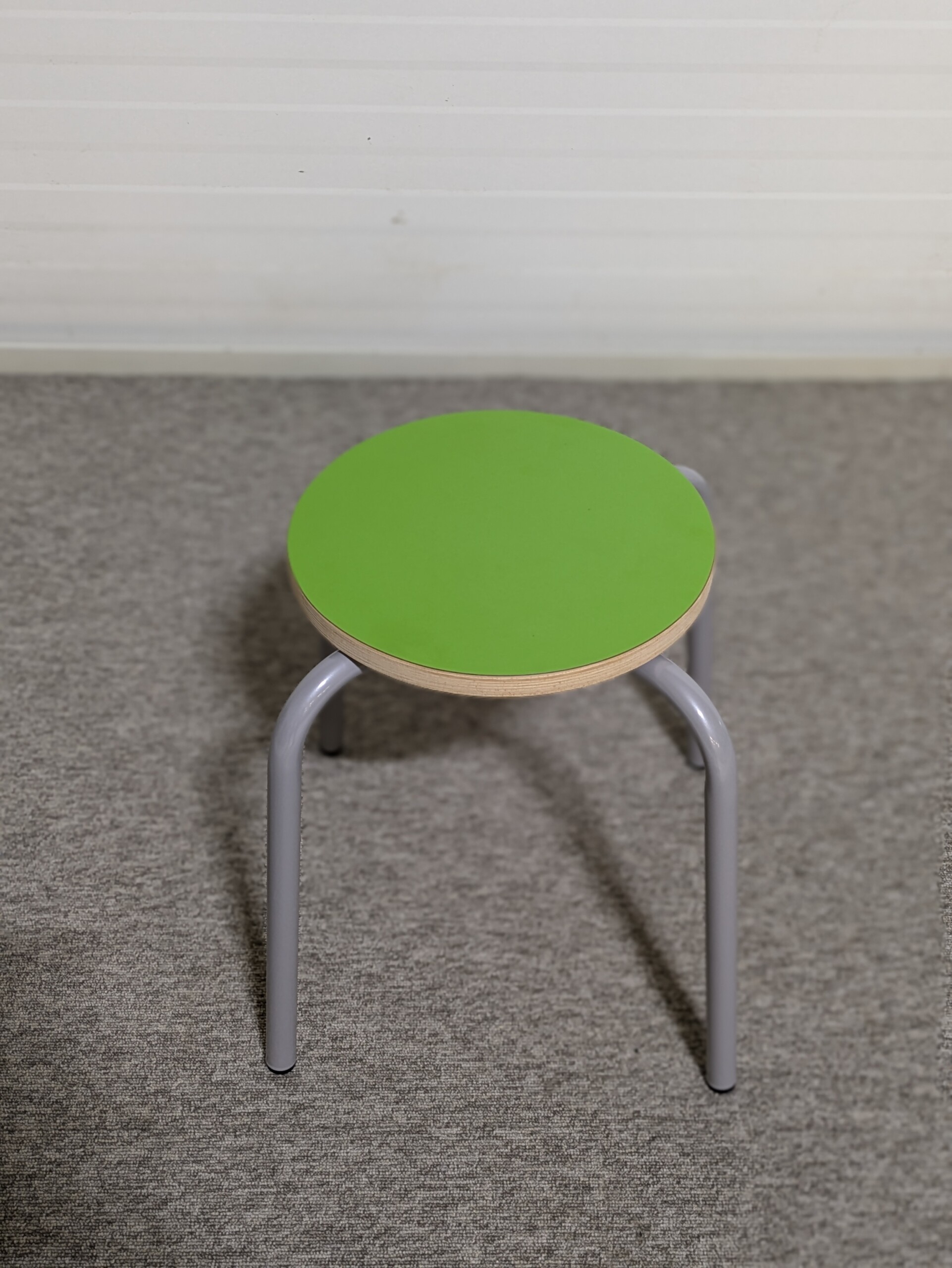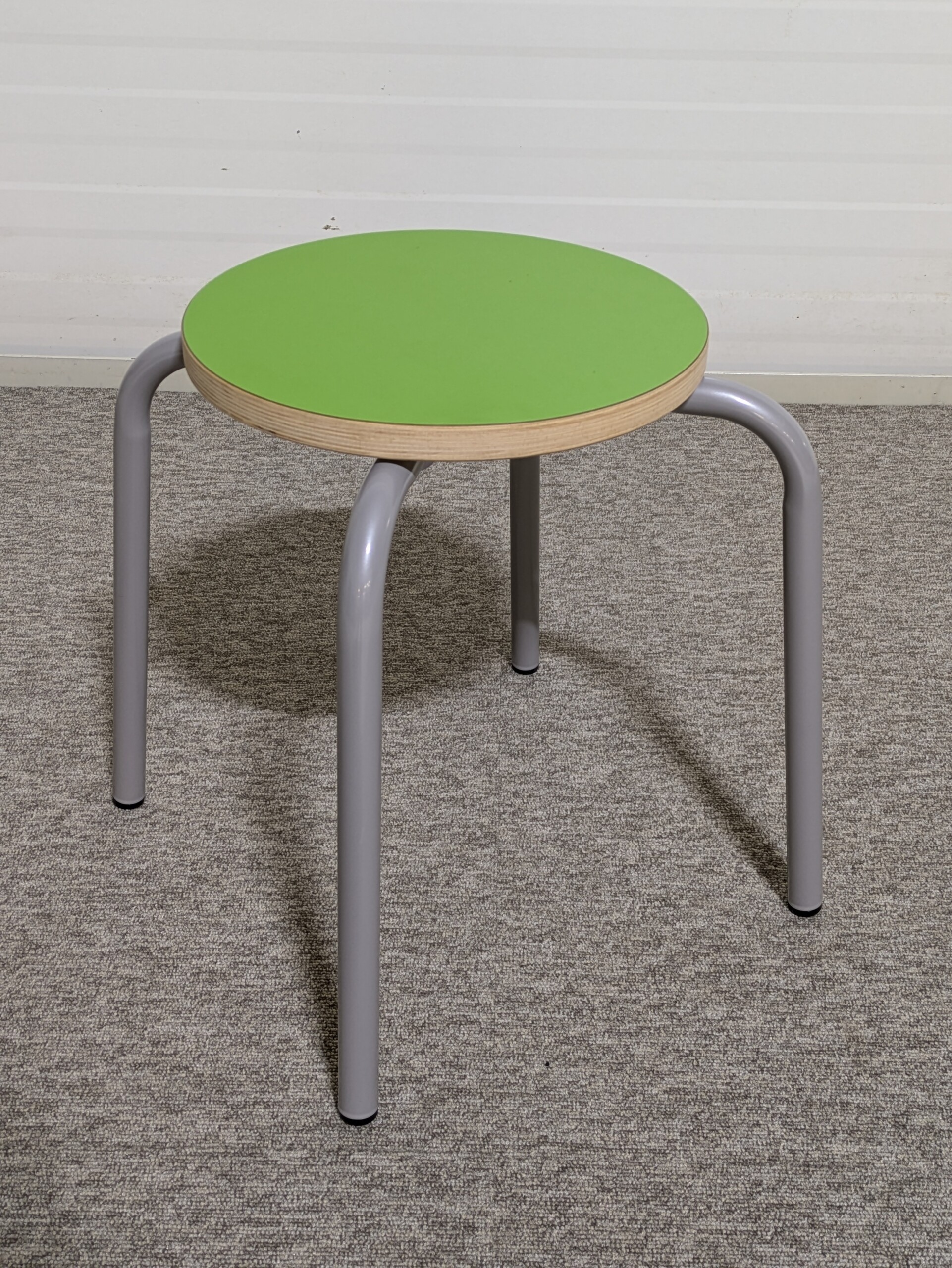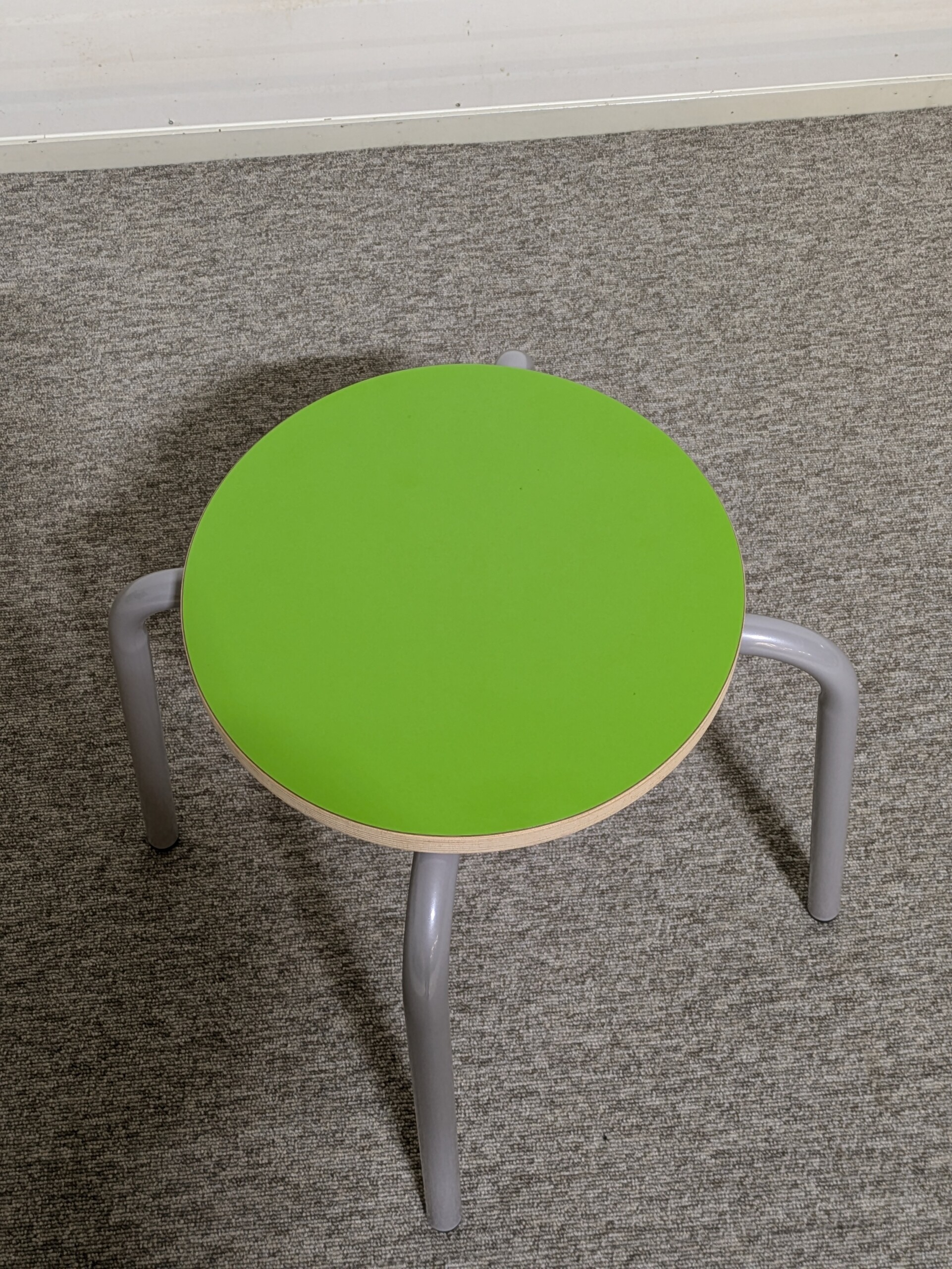 Sits i laminat (grön). Ben i metall (grå).