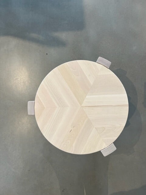 Sits och ben i trä (björk).