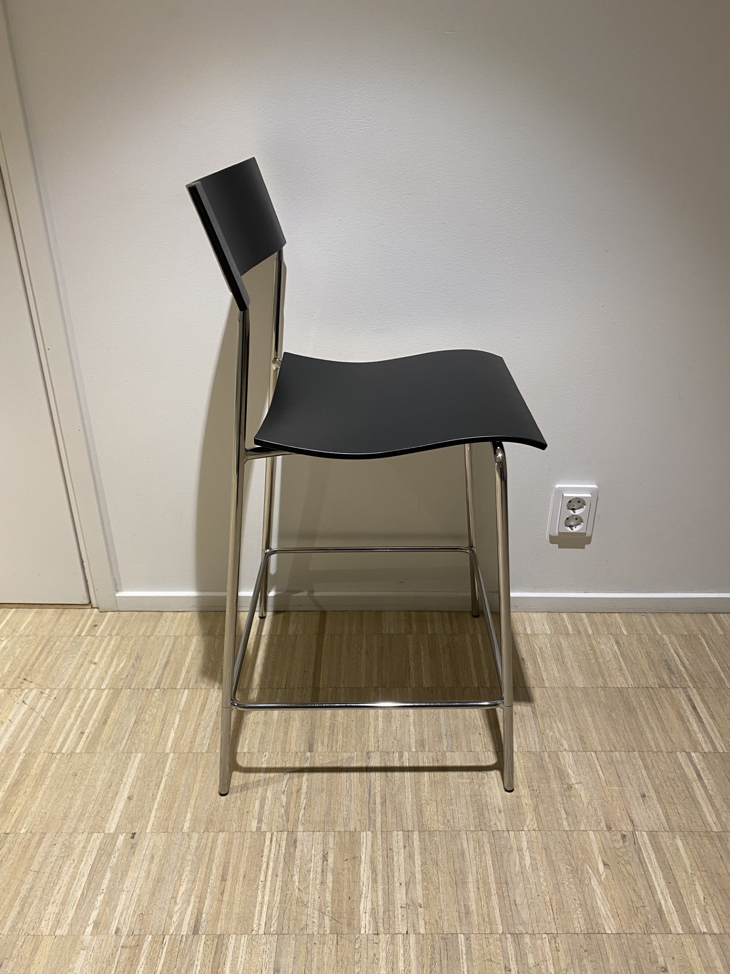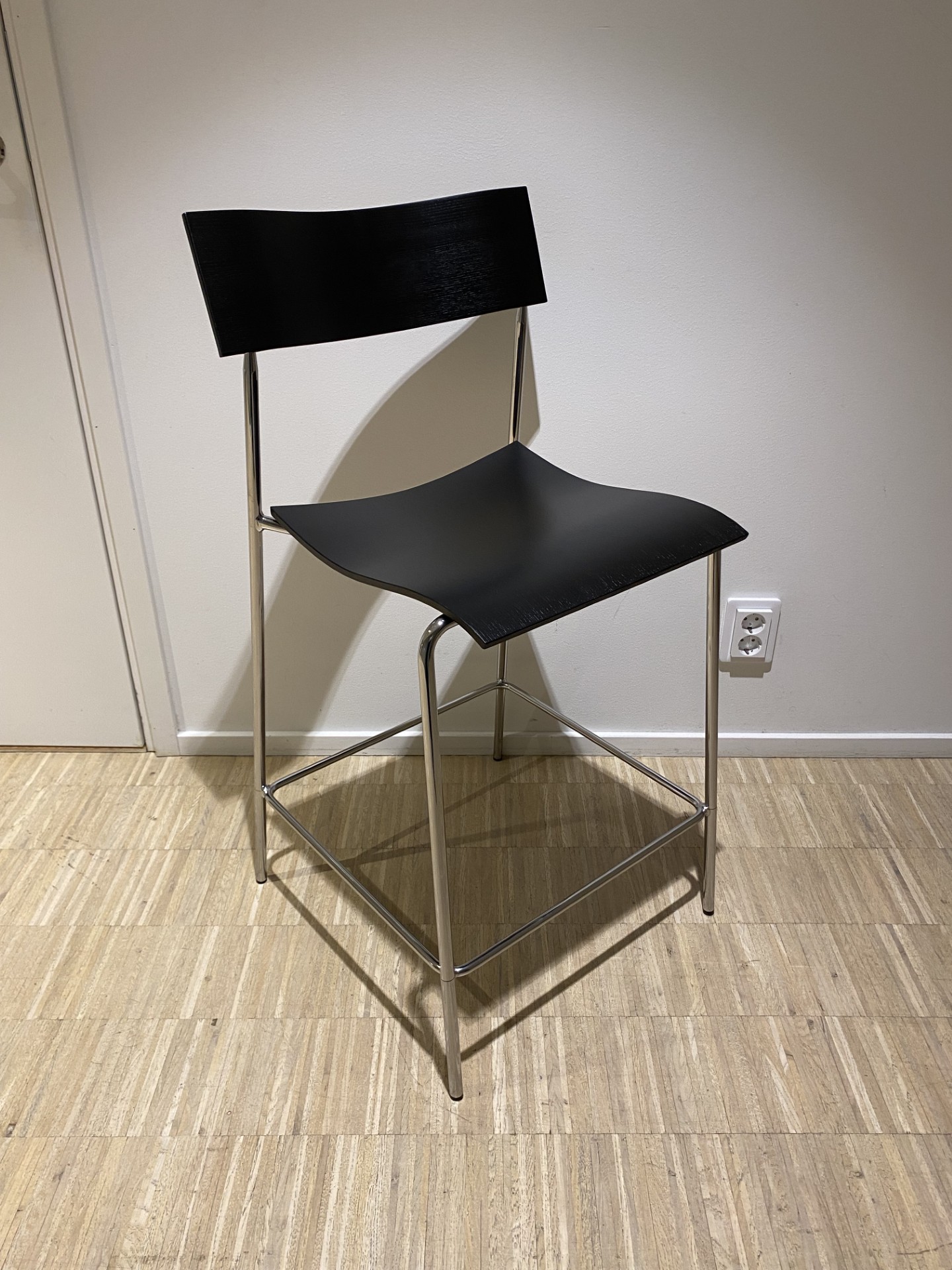 Sits och rygg i trä (svart). Ben i metall (krom).