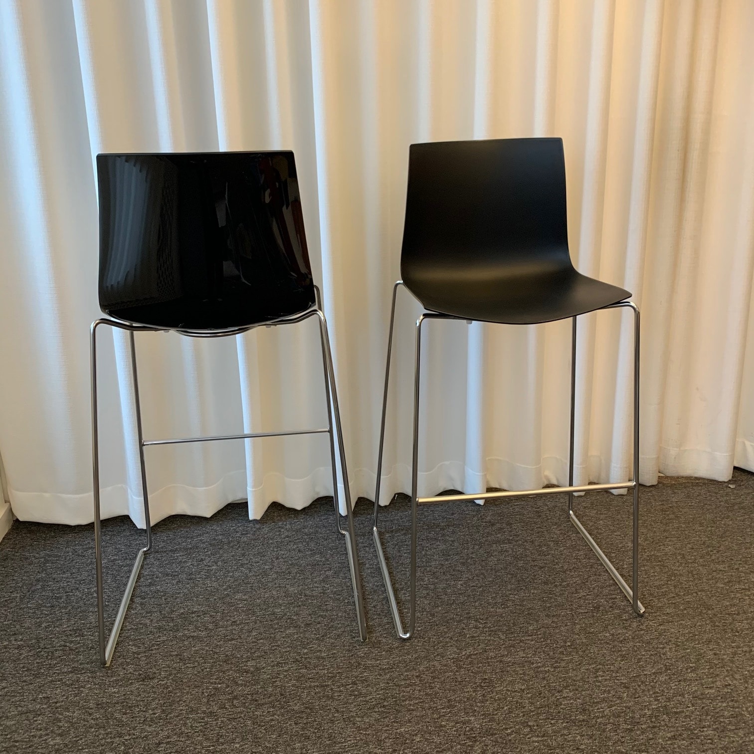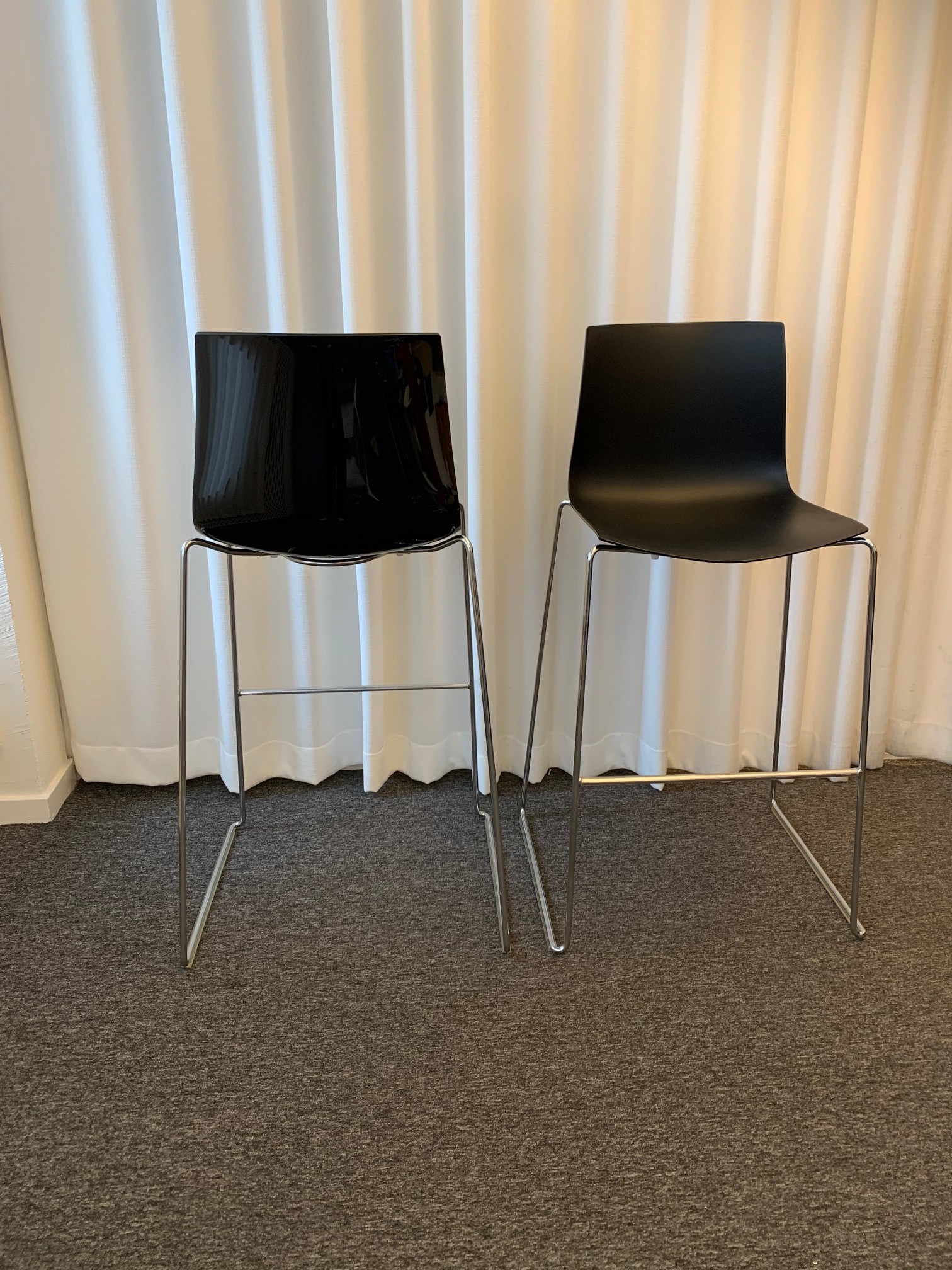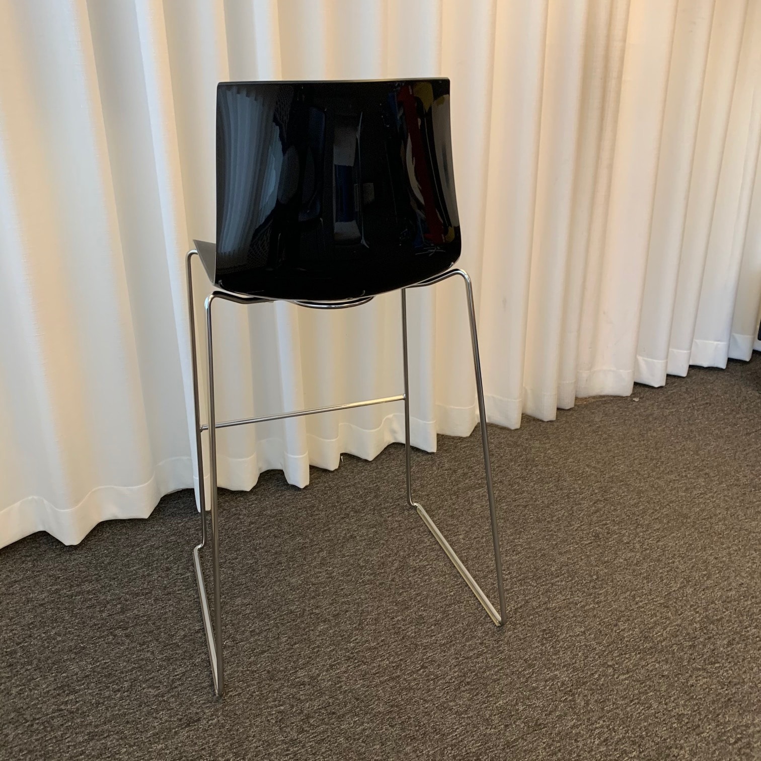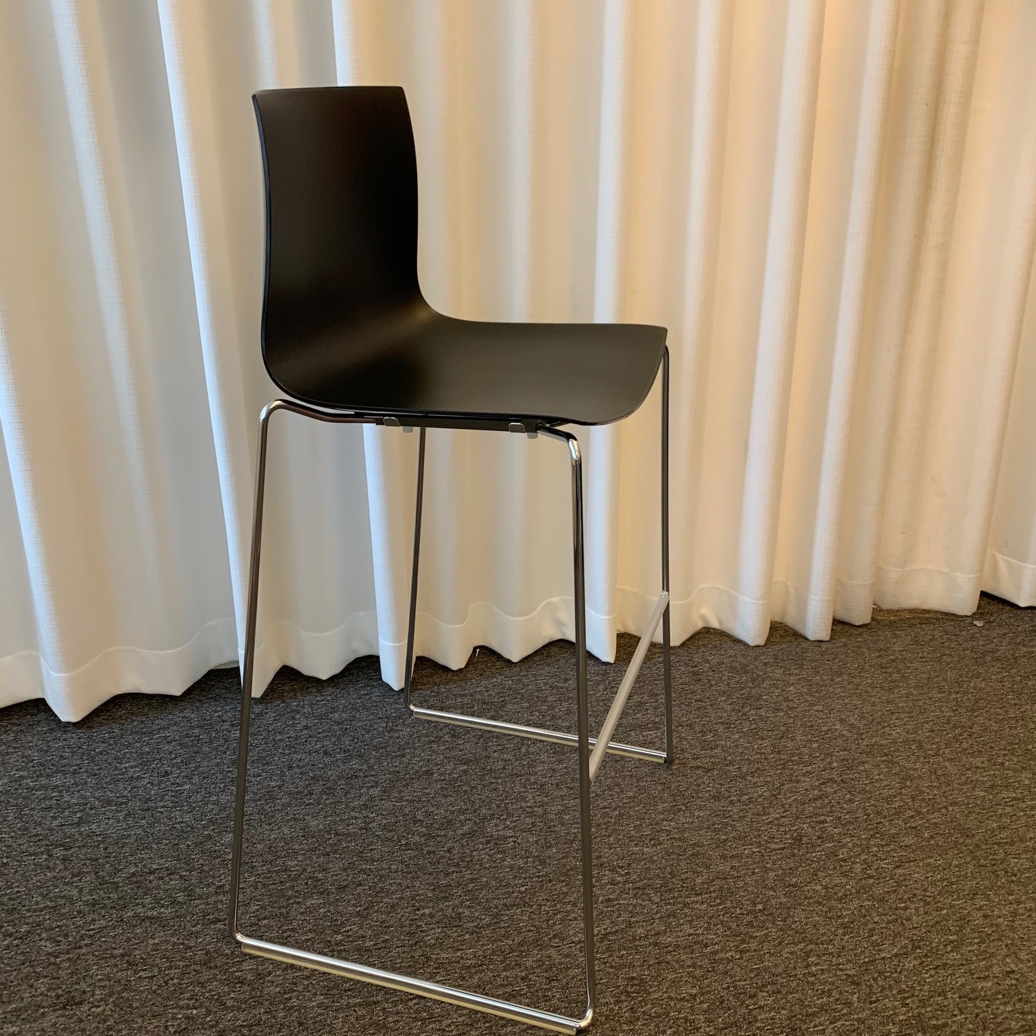 Sits och rygg i plast (svart). Medstativ i metall (krom).