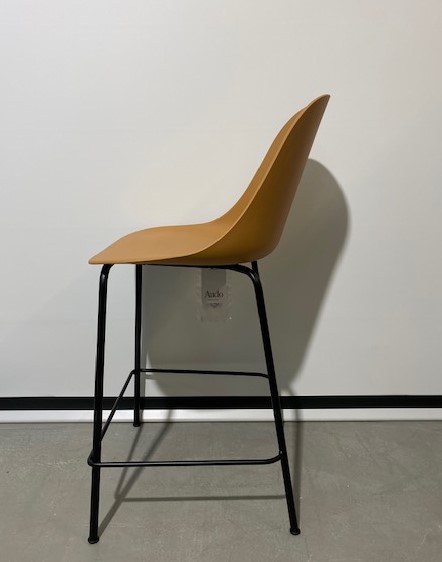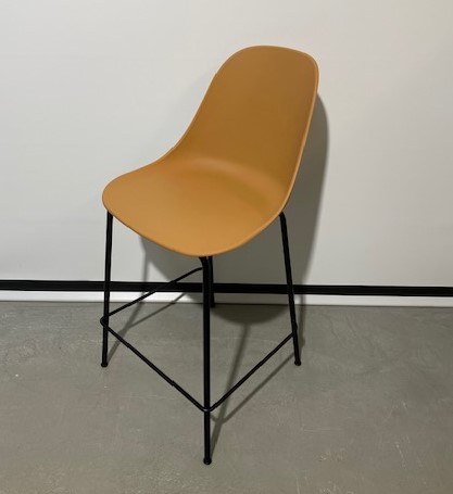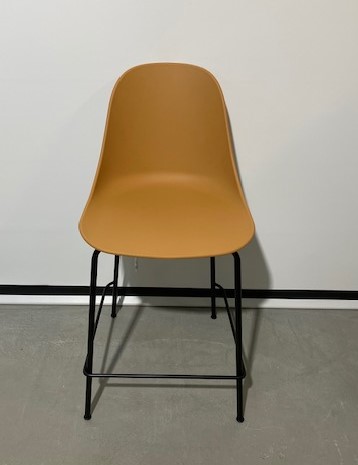 Sits och rygg i plast (brun). Ben i metall (svart).