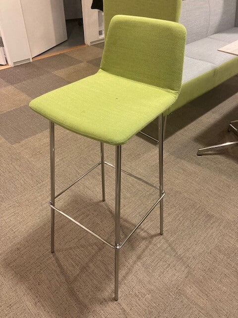 Sits och rygg i tyg (grön). Ben i metall (krom).