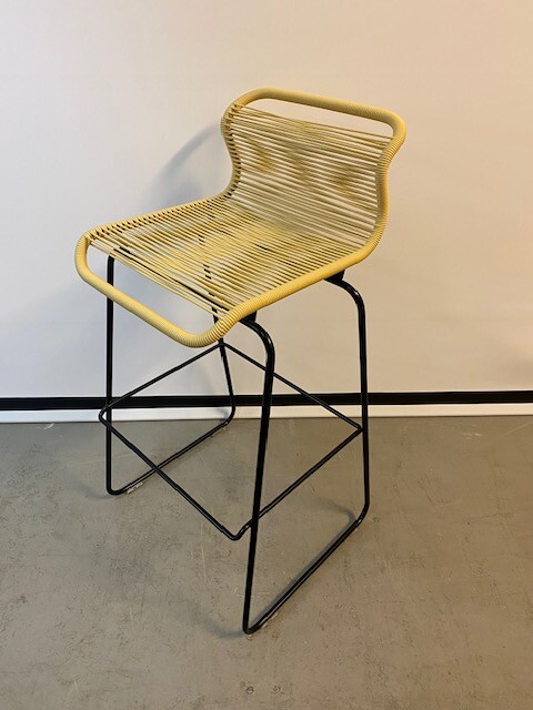 Sits och rygg i plast (gul). Medstativ i metall (svart).