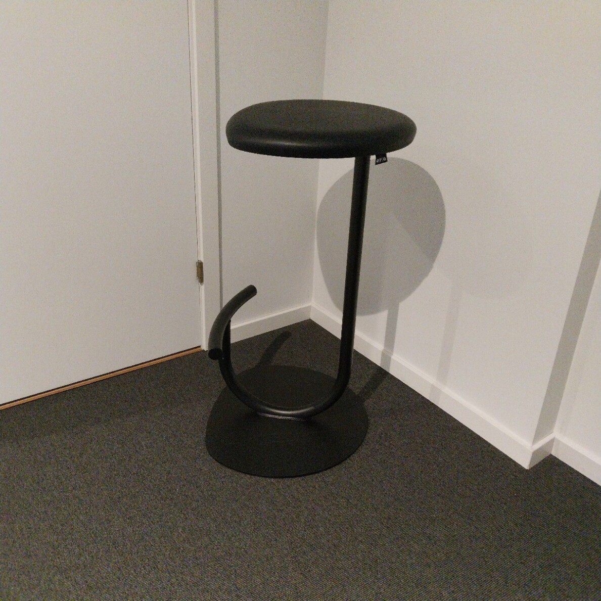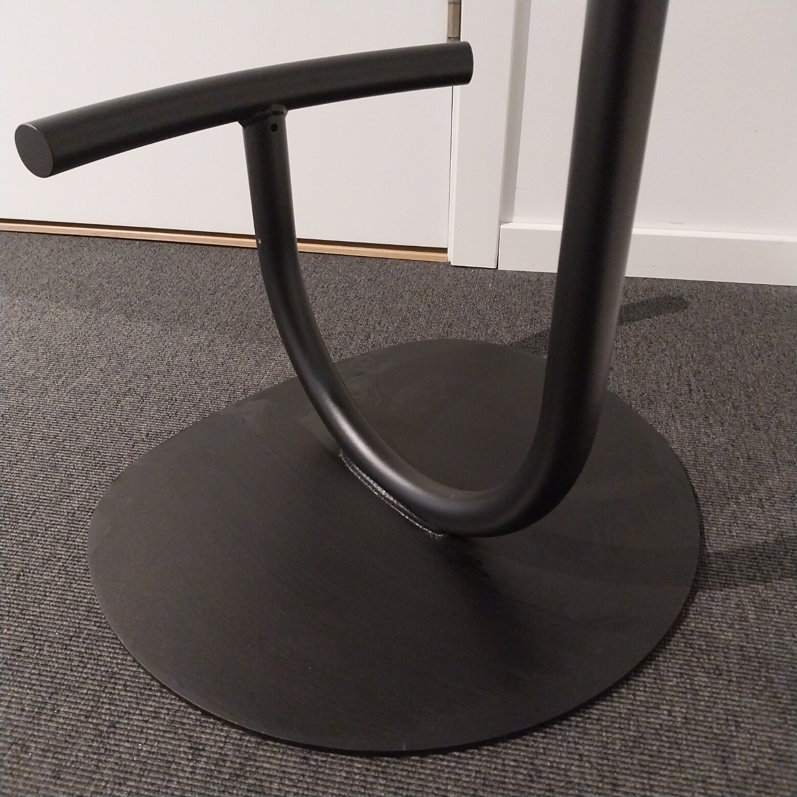 Sits i läder (svart). Pelarfot i metall (svart).