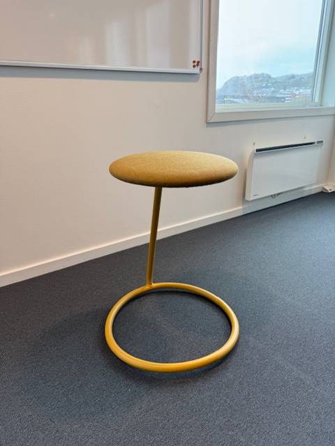 Sits i tyg (gul). Pelarfot i metall (gul).