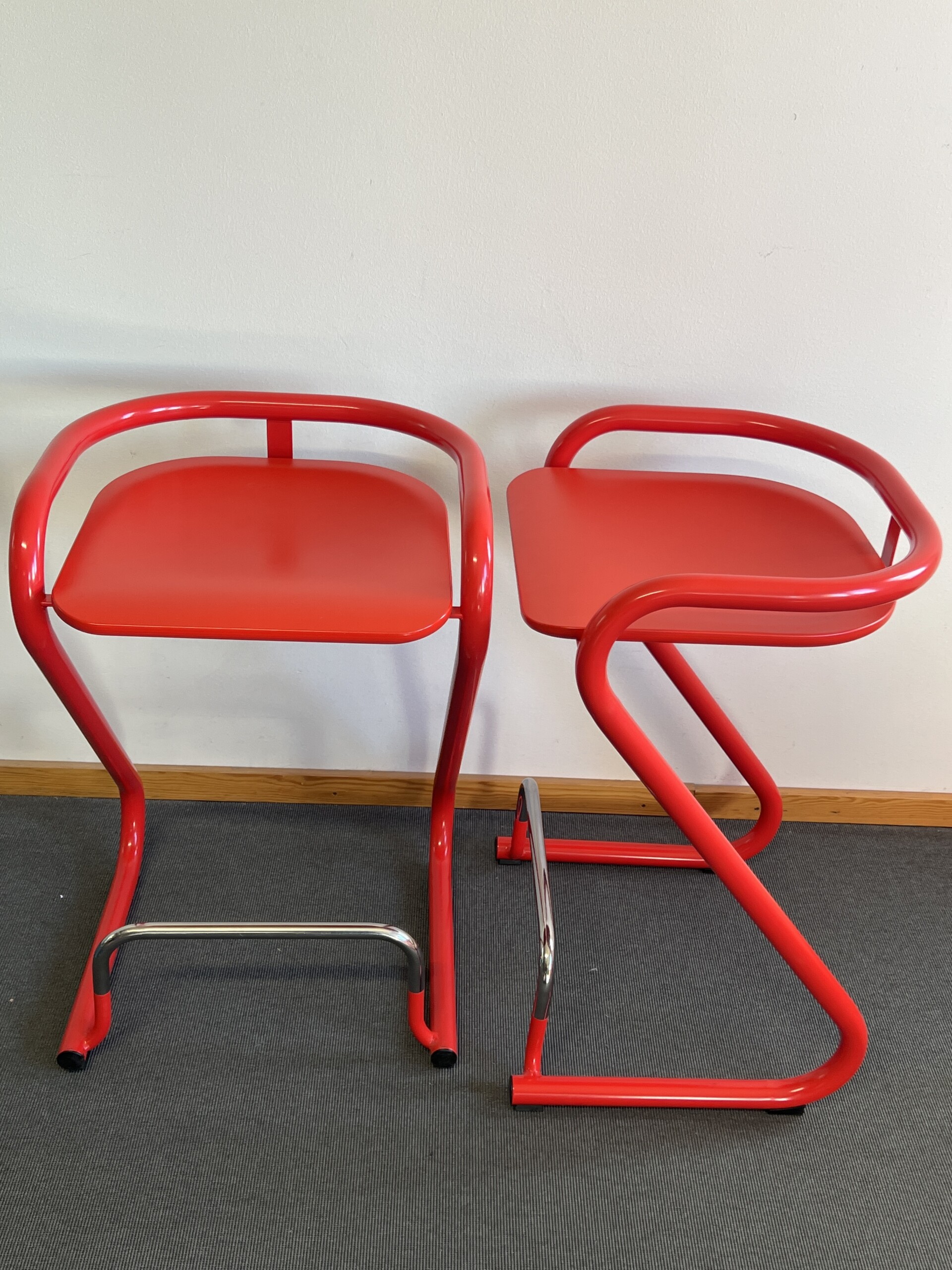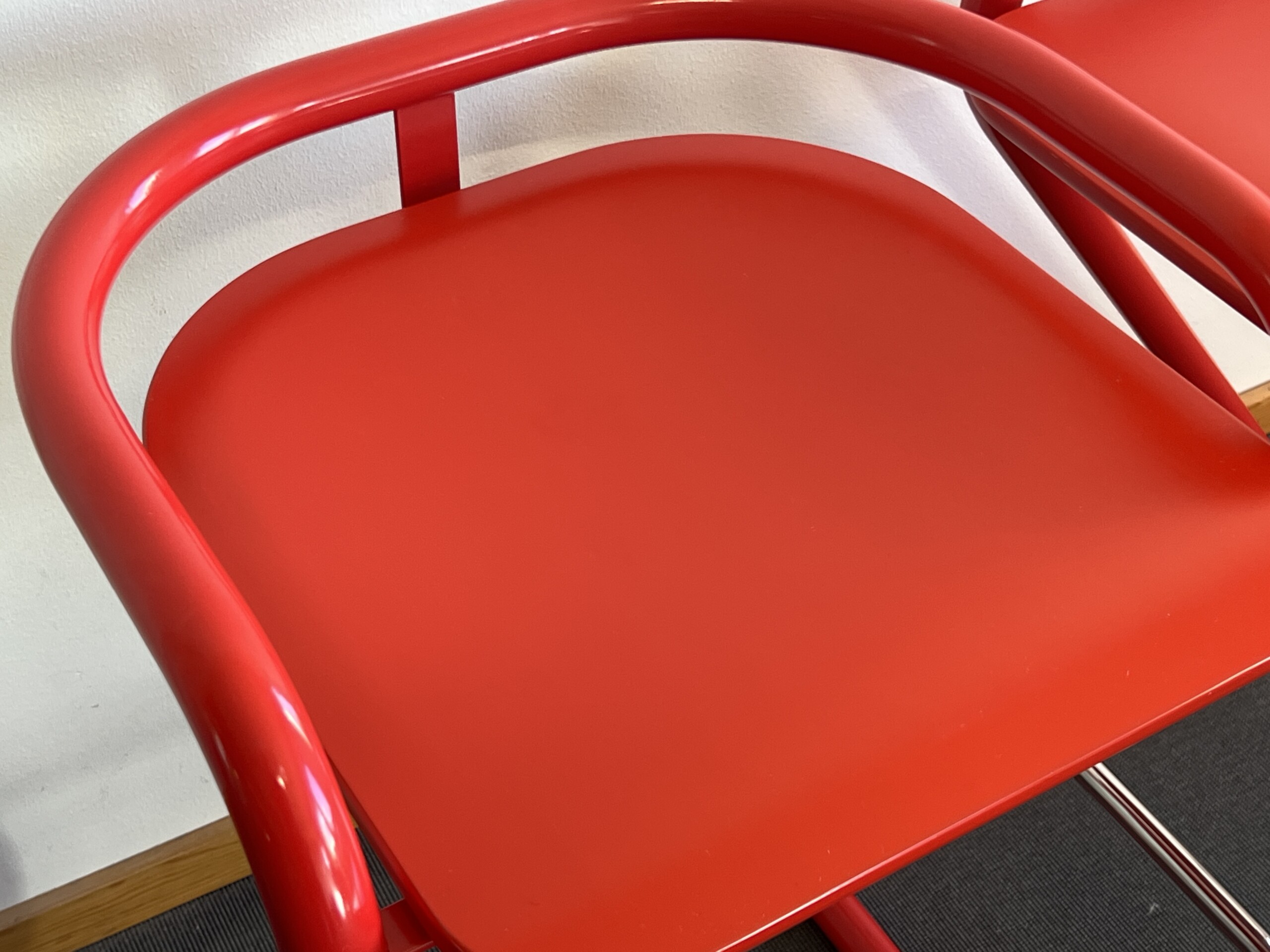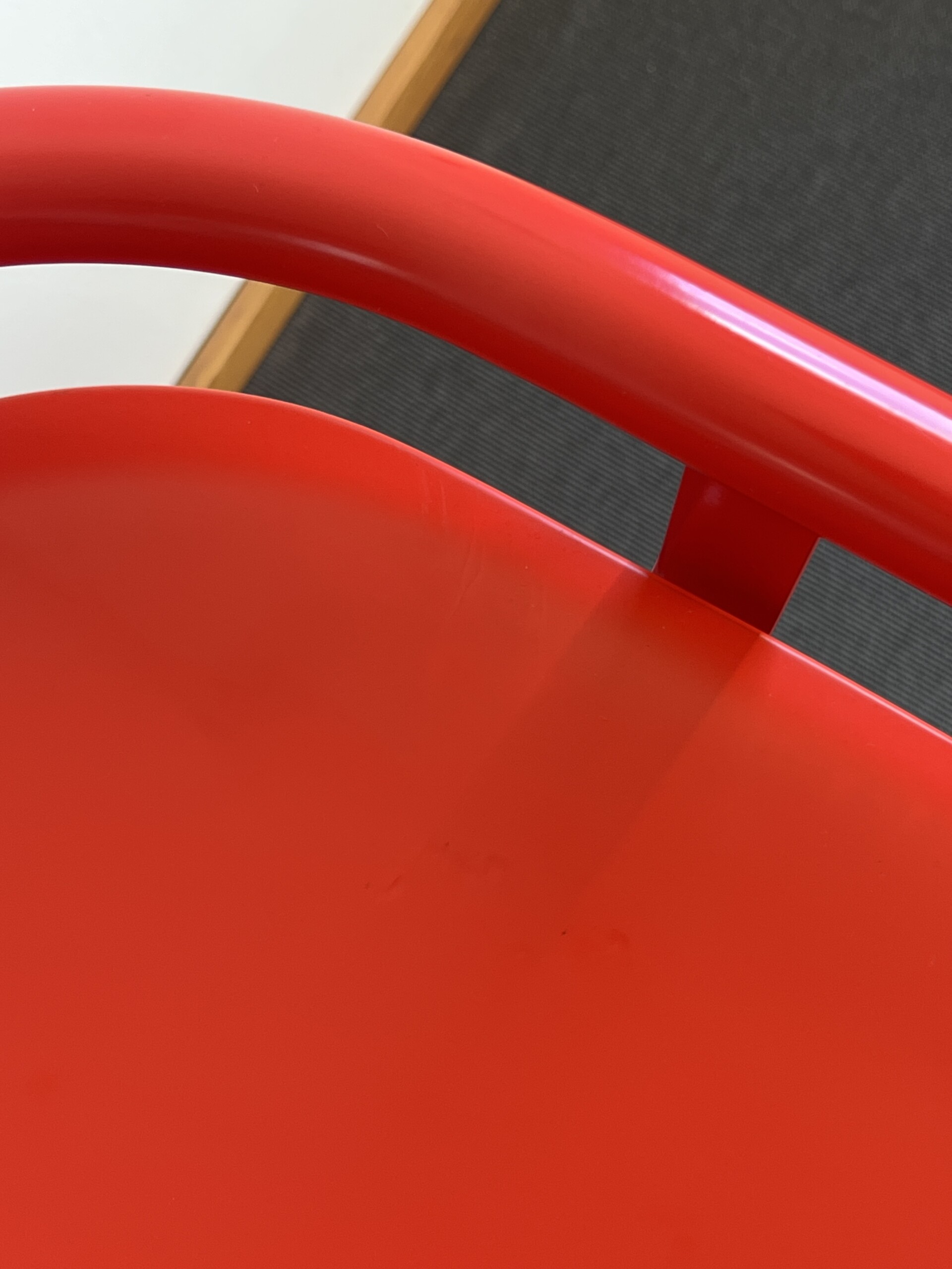 Sits i trä (röd). Medstativ i metall (röd).