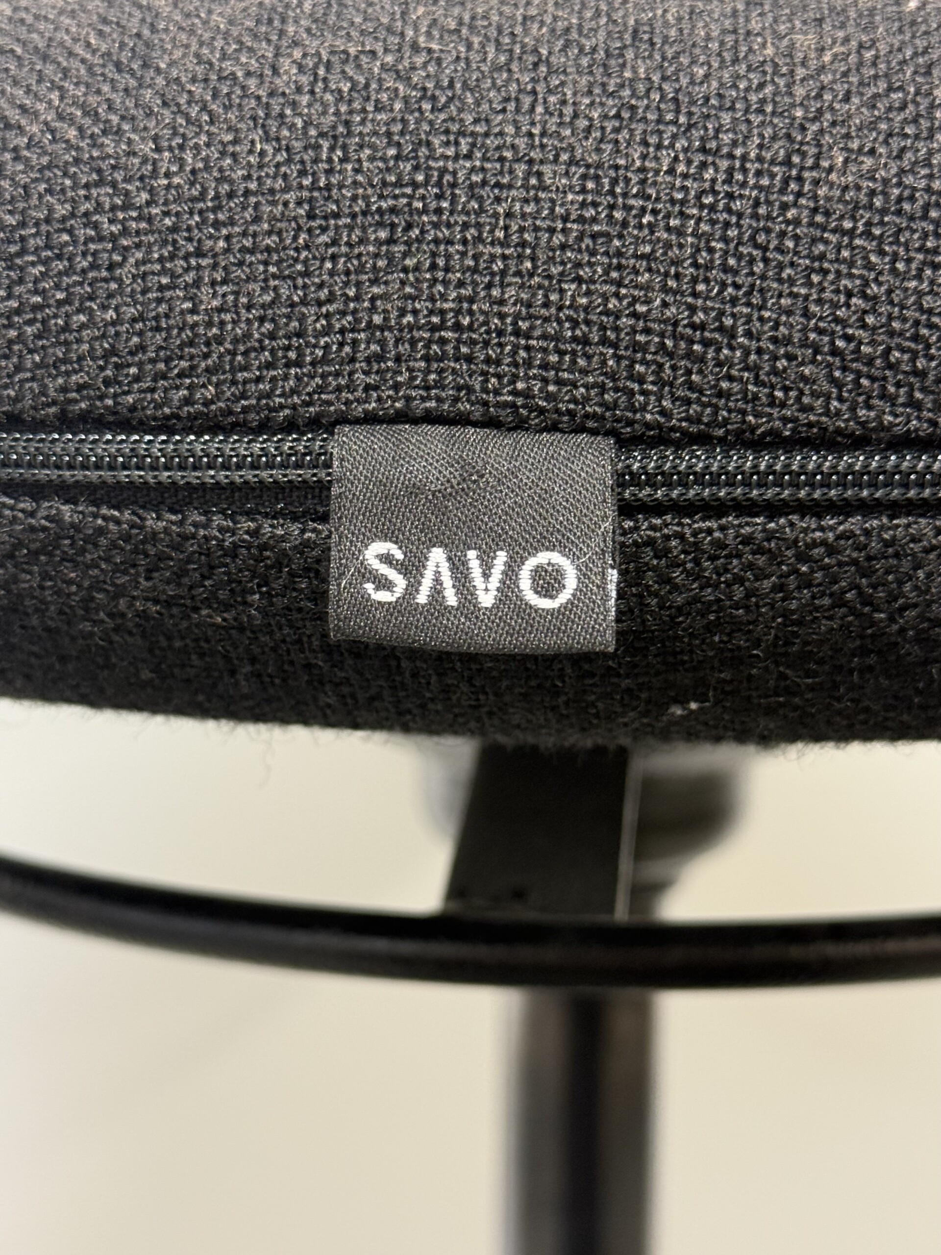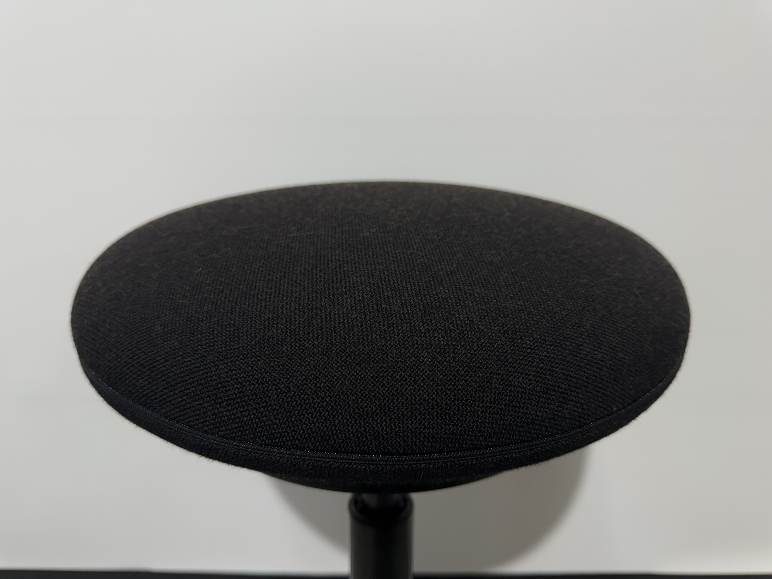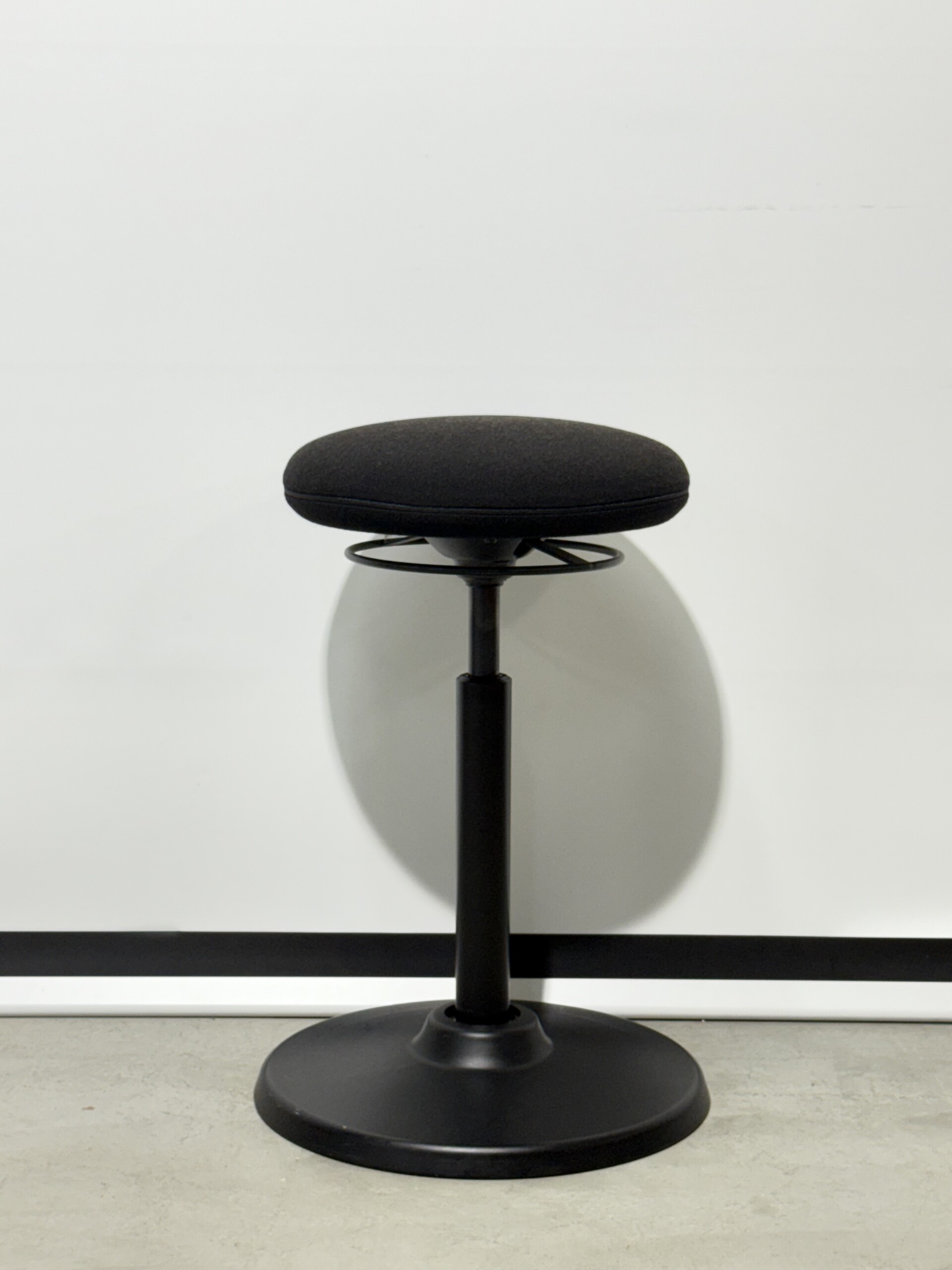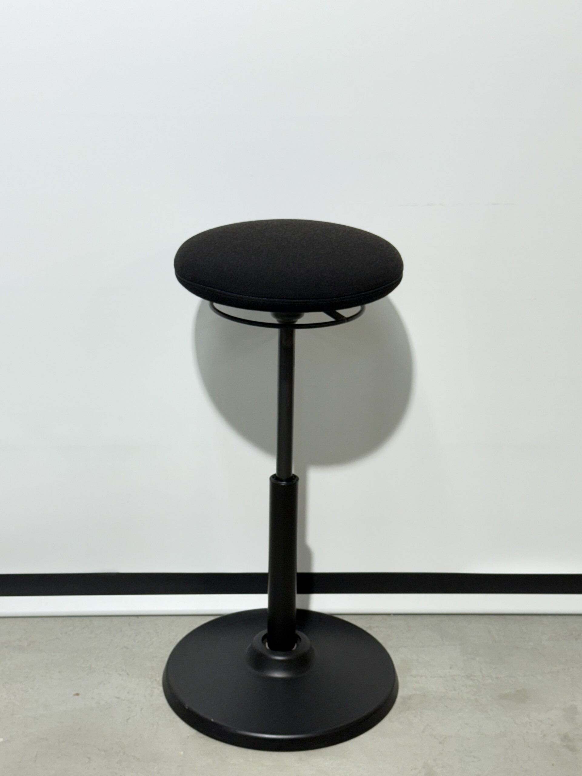 Sits i tyg (svart). Pelarfot i metall (svart). Höj- och sänkbar.