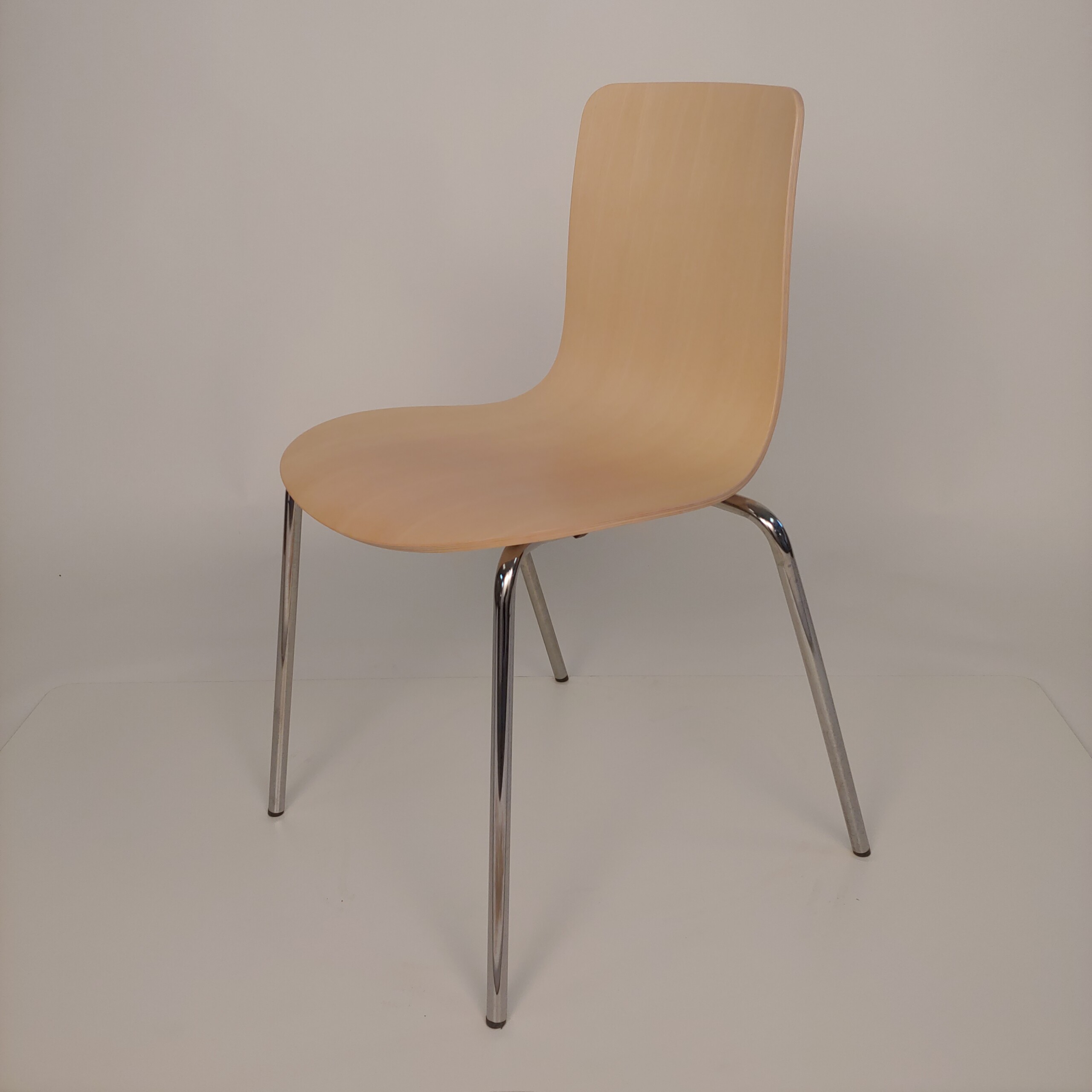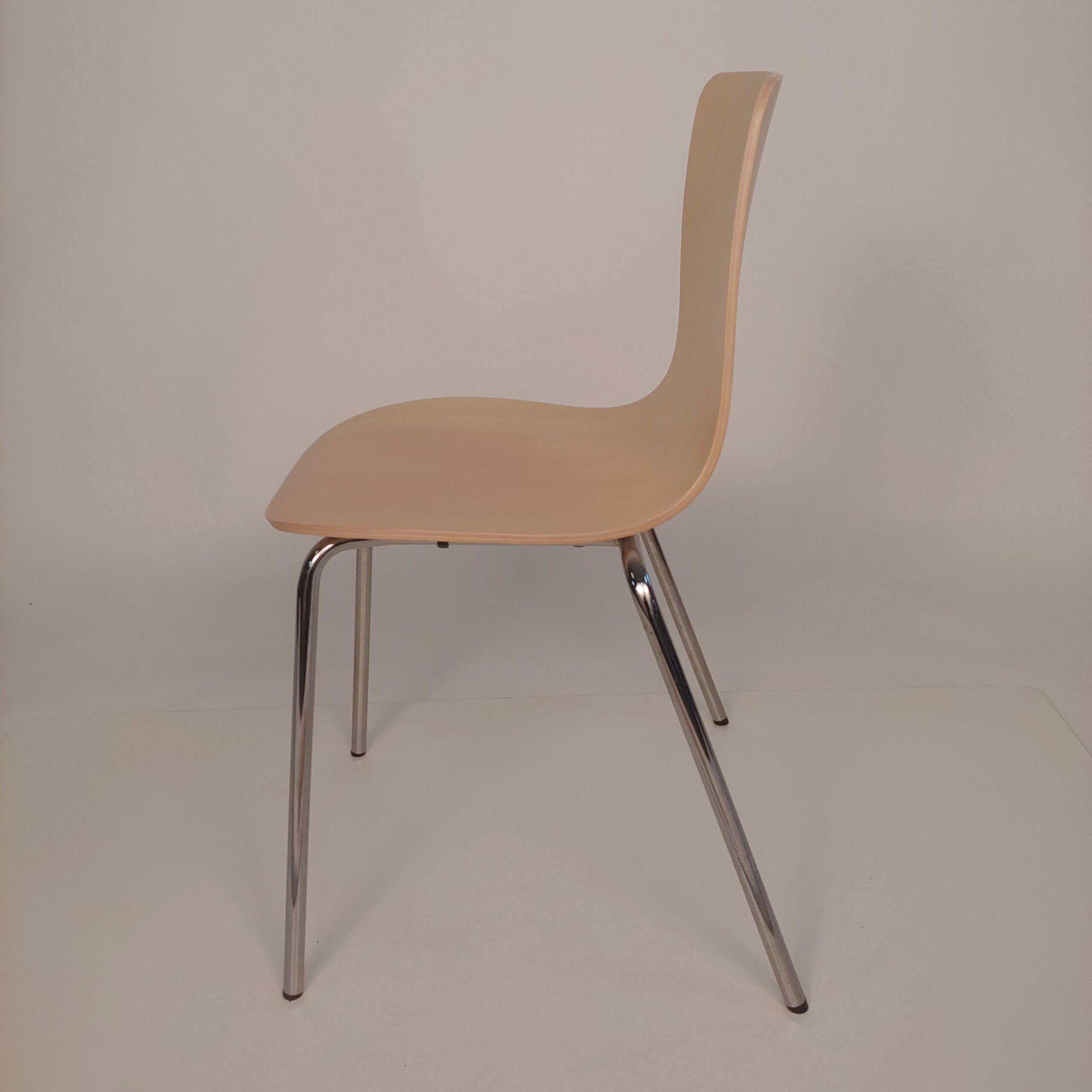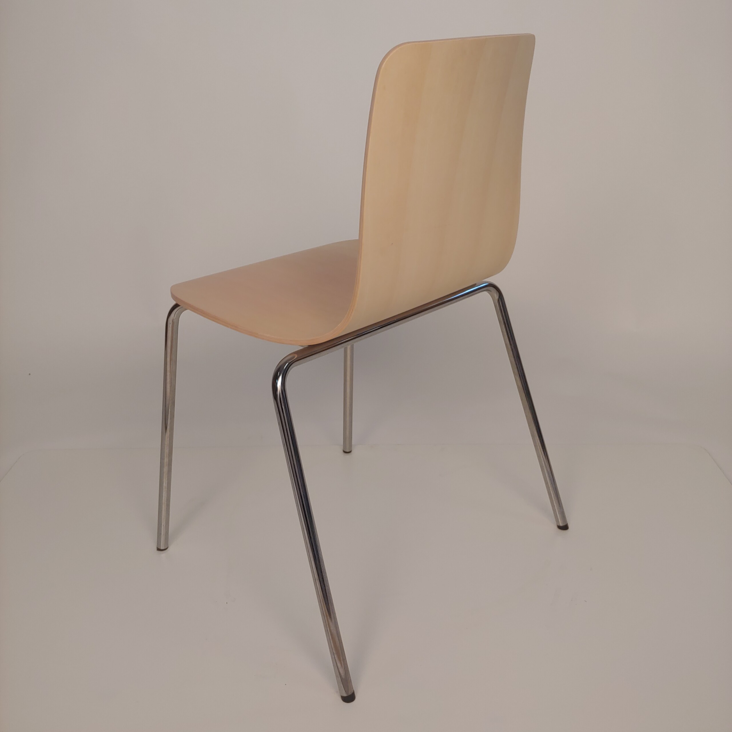 Sits och rygg i trä (ek). Ben i metall (krom).