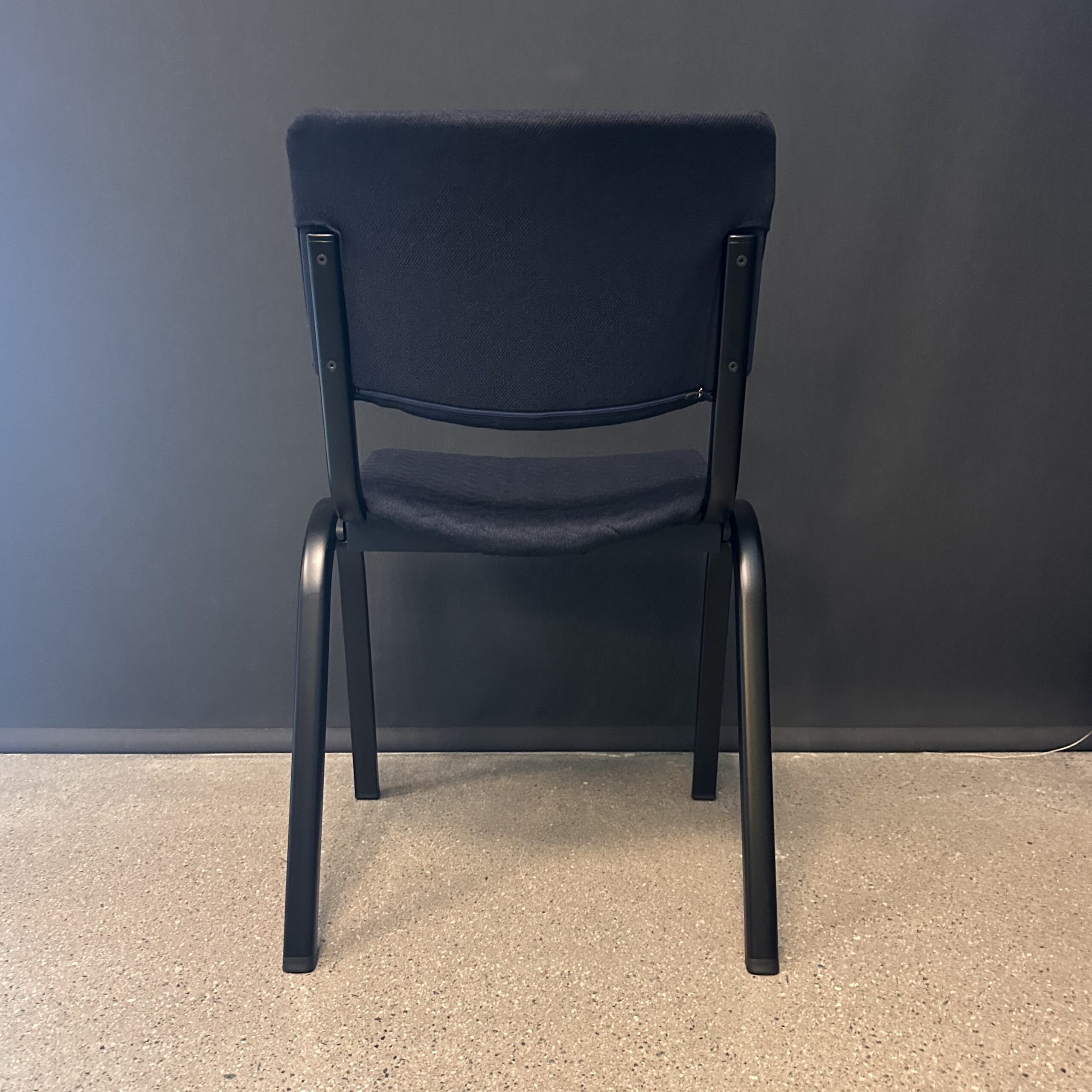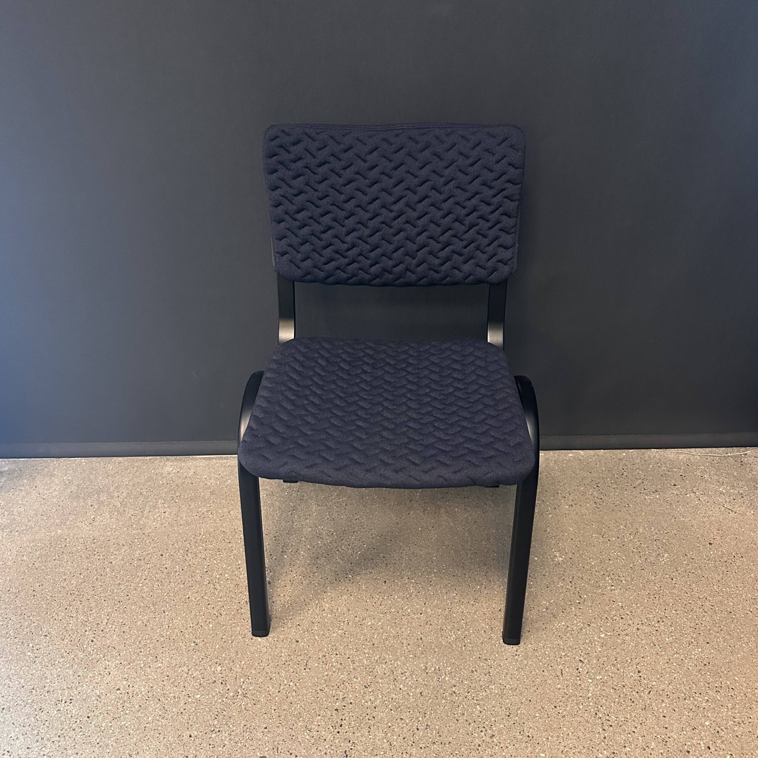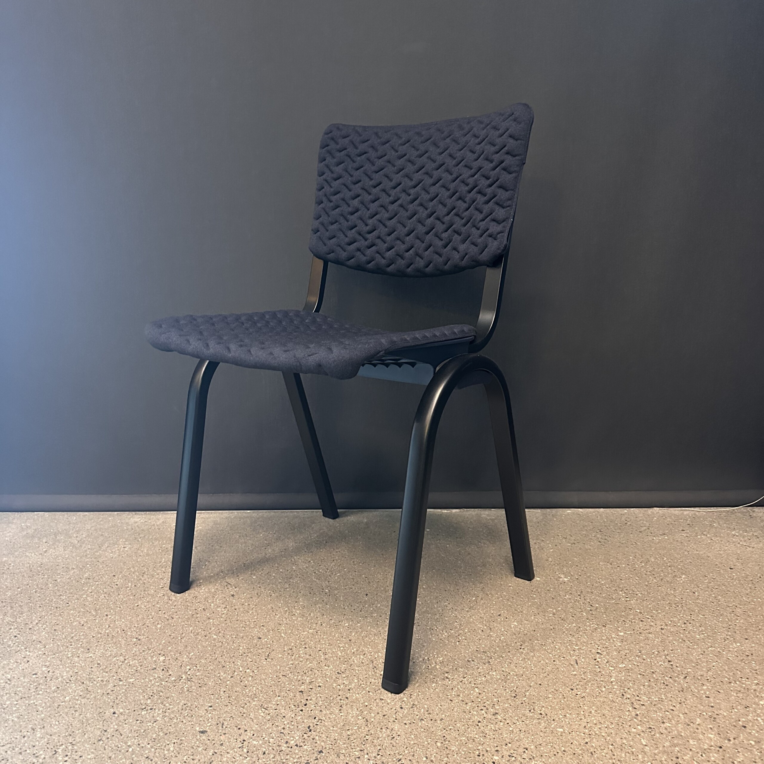Sits och rygg i tyg (blå). Ben i metall (svart).