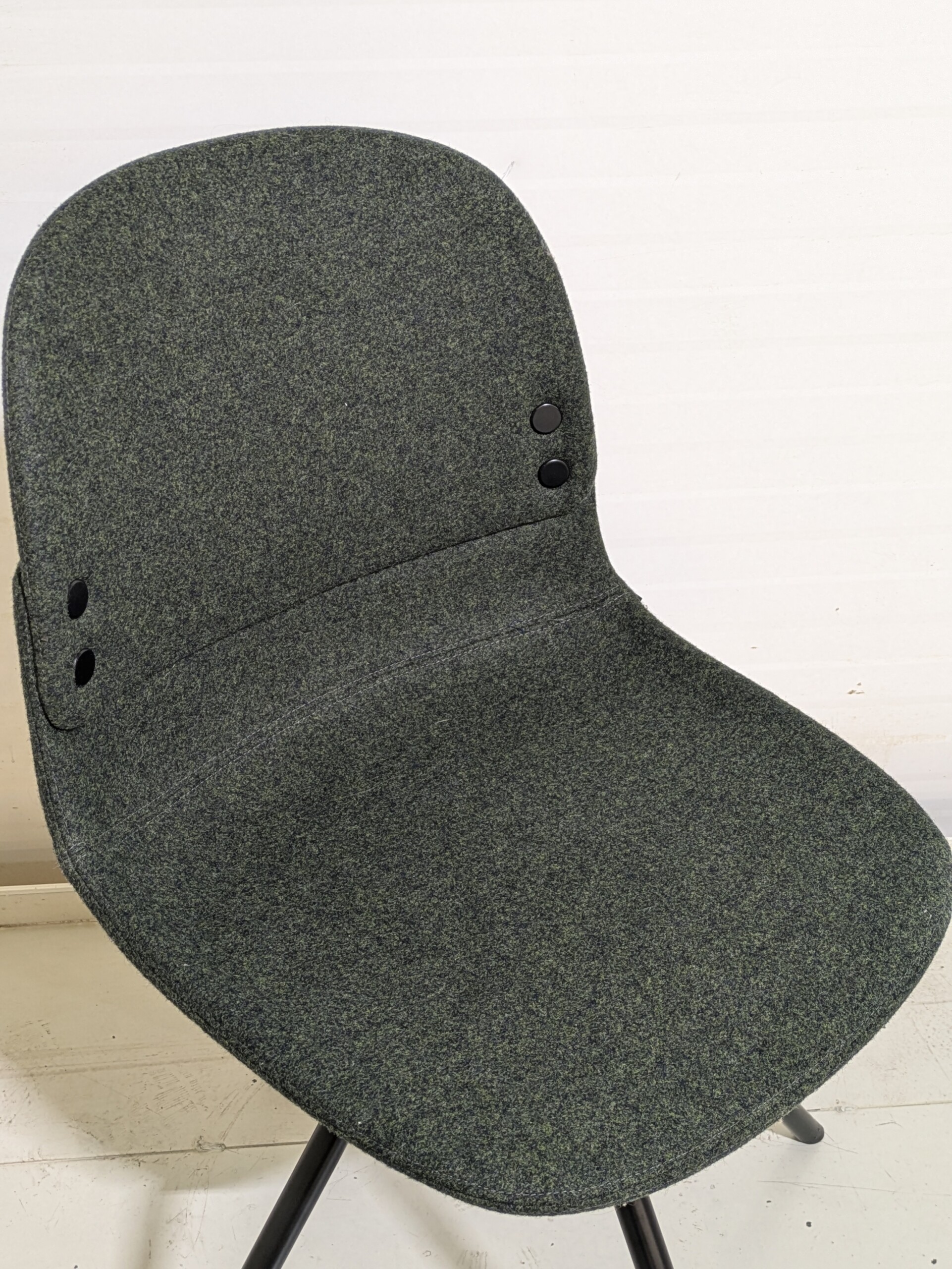 Sits och rygg i tyg (grön). Kryssfot i metall (svart).