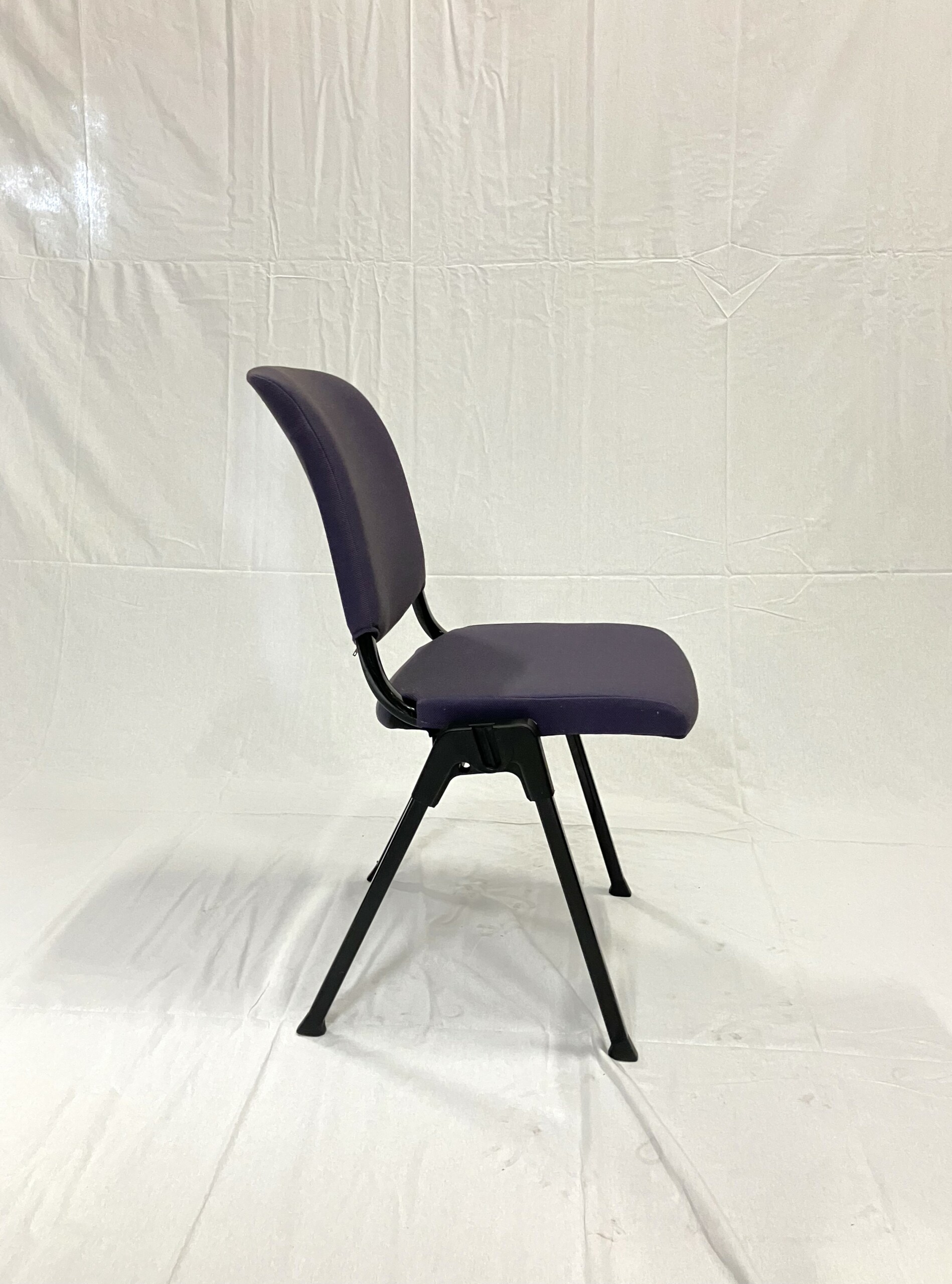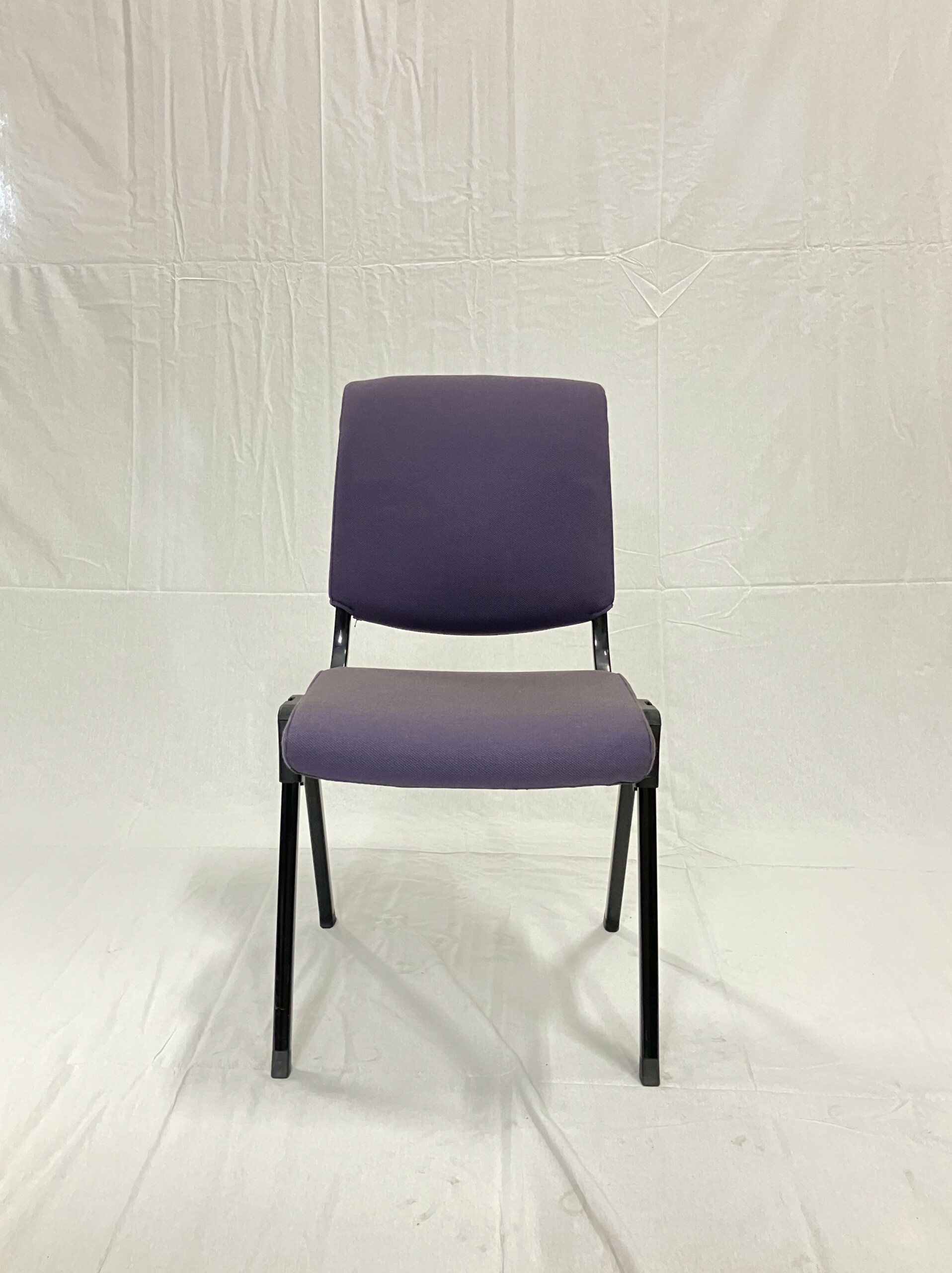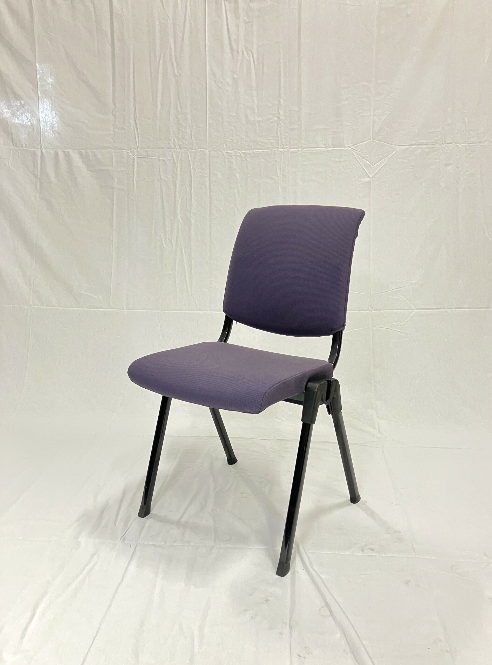 Sits och rygg i tyg (lila). Ben i metall (svart).