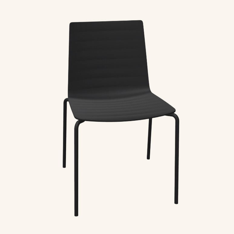 Sits och rygg i tyg (svart). Ben i metall (svart).