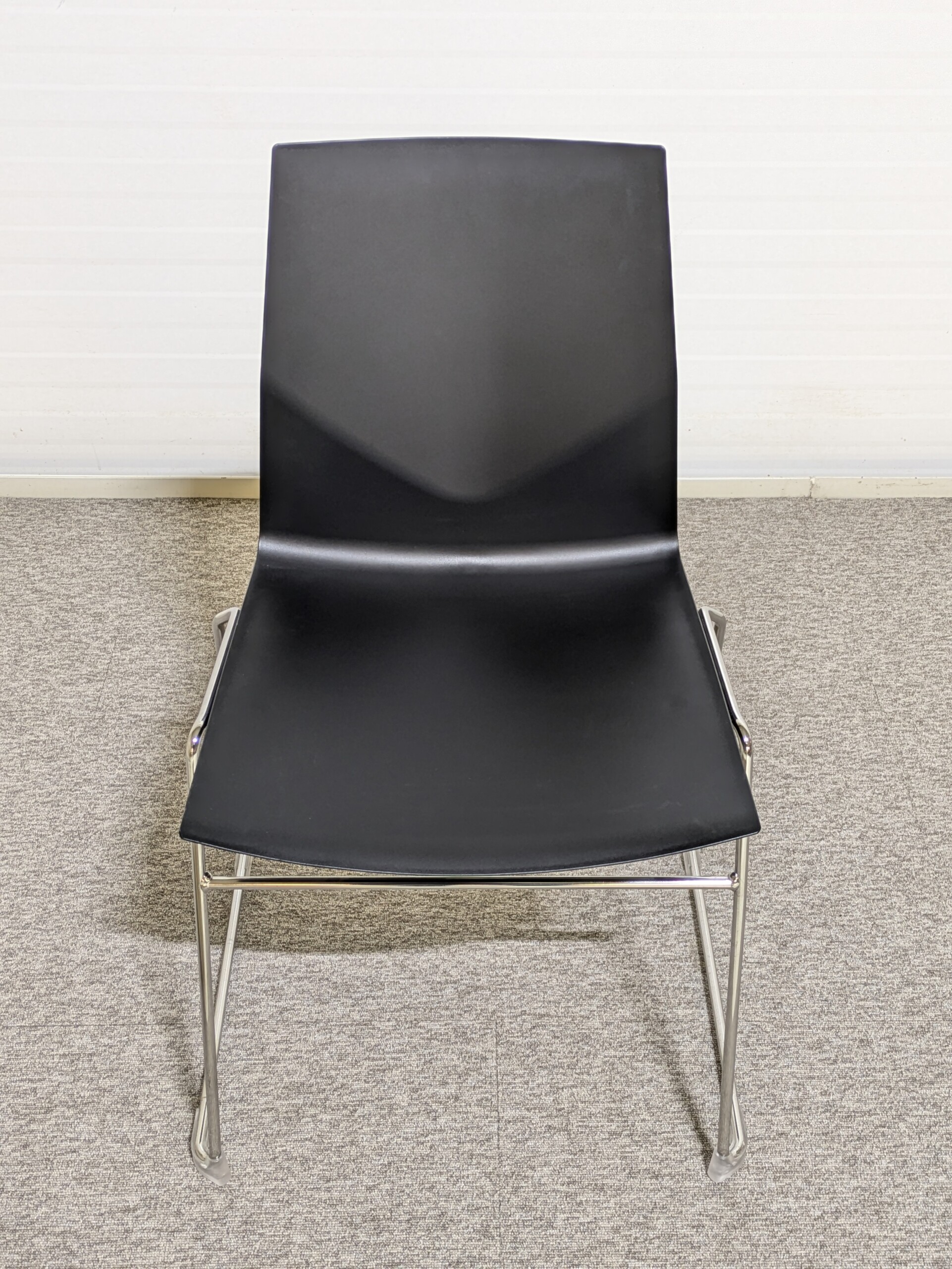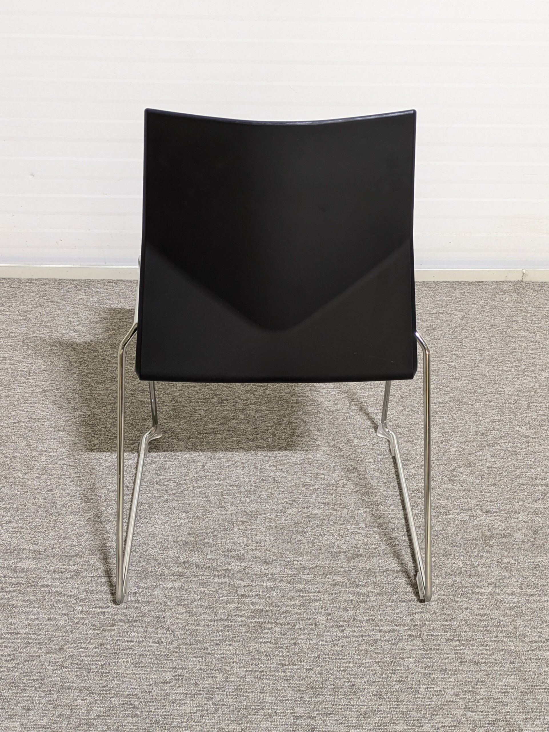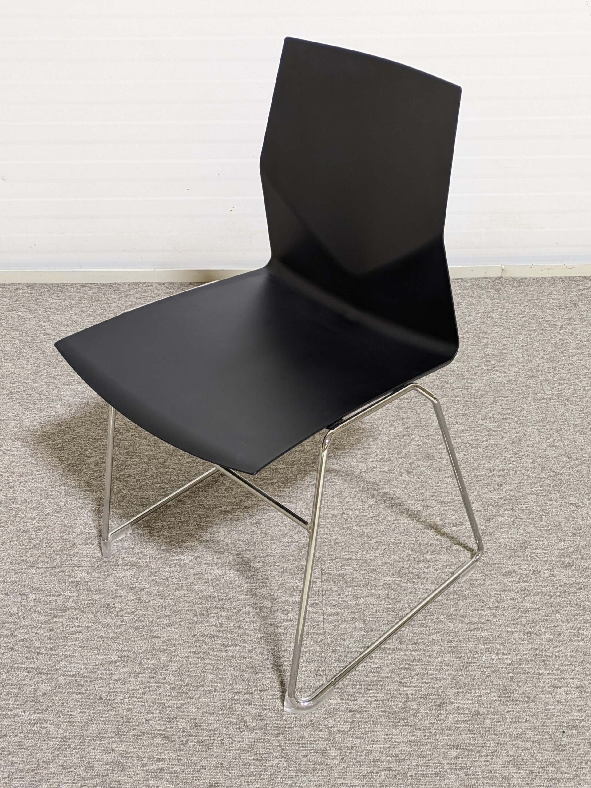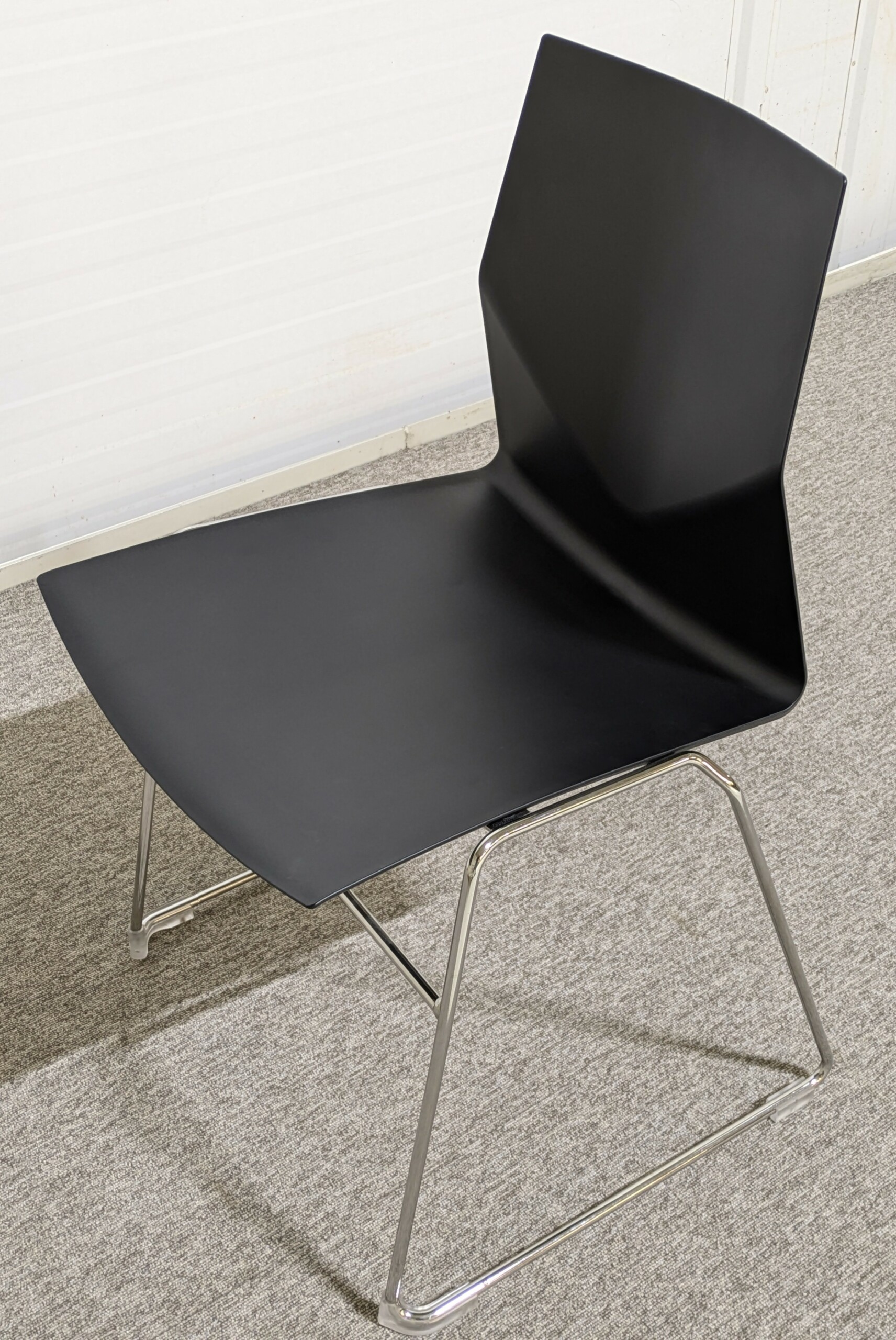 Sits och rygg i plast (svart). Medstativ i metall (krom).