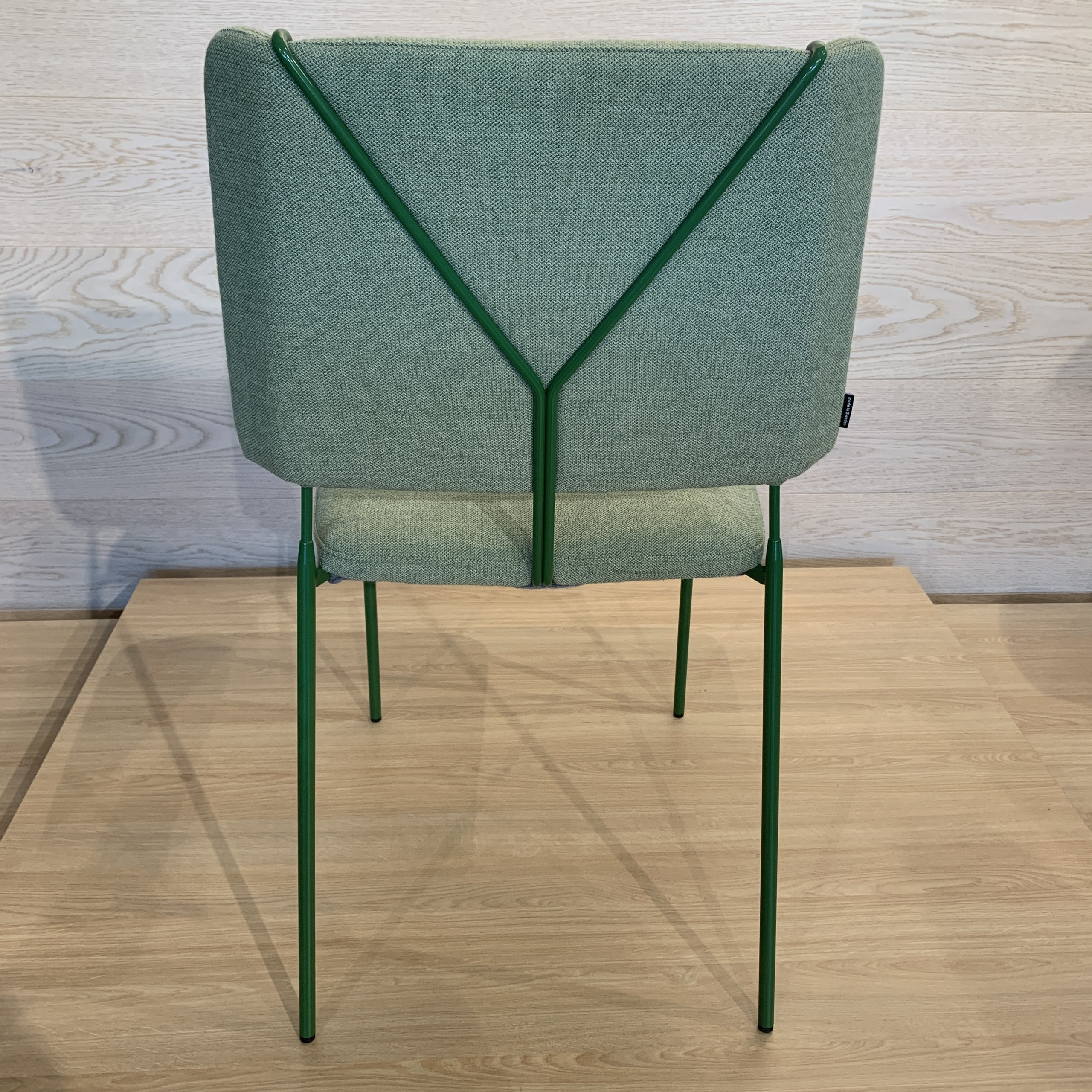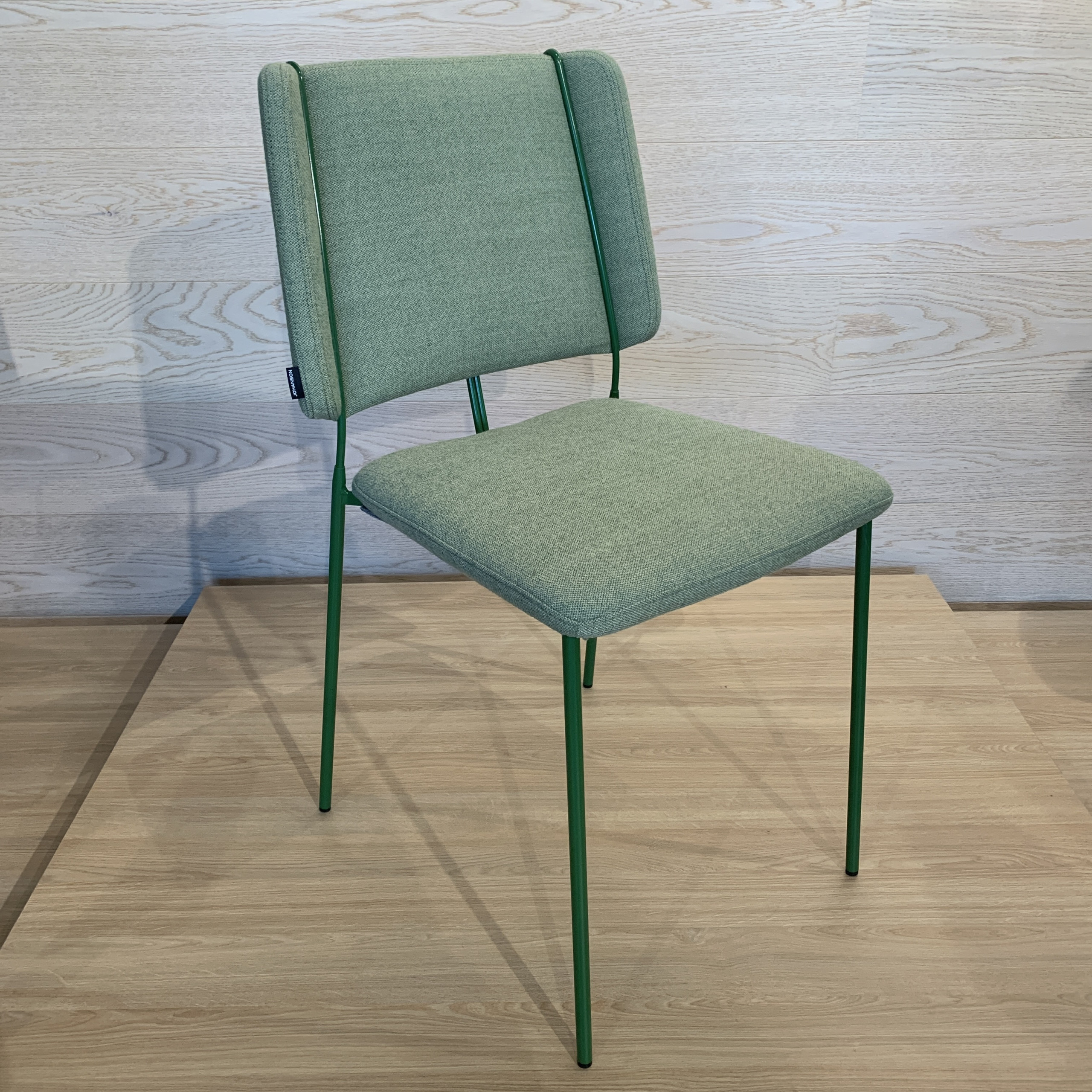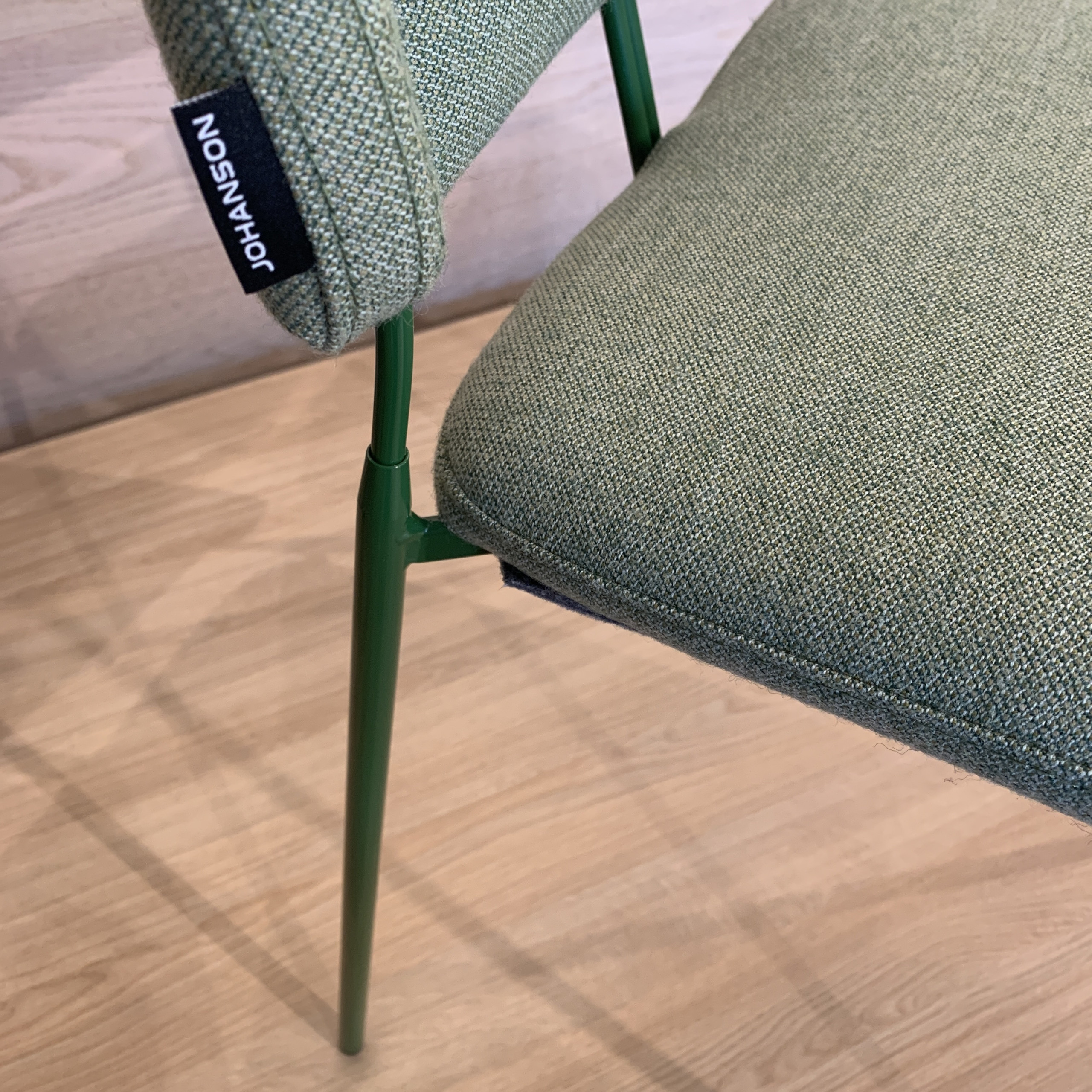 Sits och rygg i tyg (grön). Ben i metall (grön).