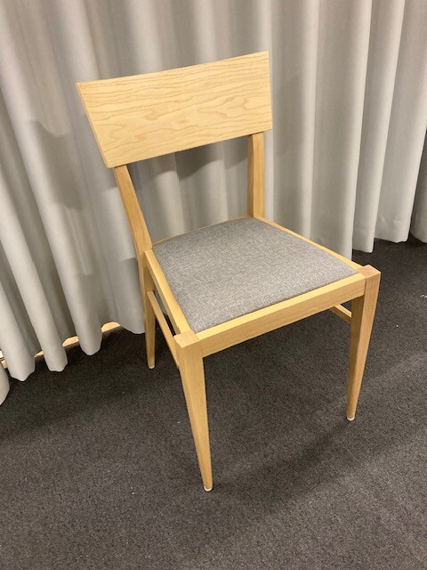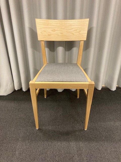 Sits i tyg (grå). Rygg i laminat (ask). Ben i trä (ask).