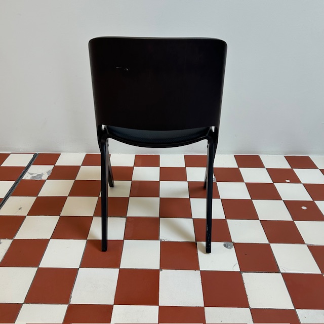 Sits i läder (svart). Rygg i trä (svart). Ben i trä (svart).