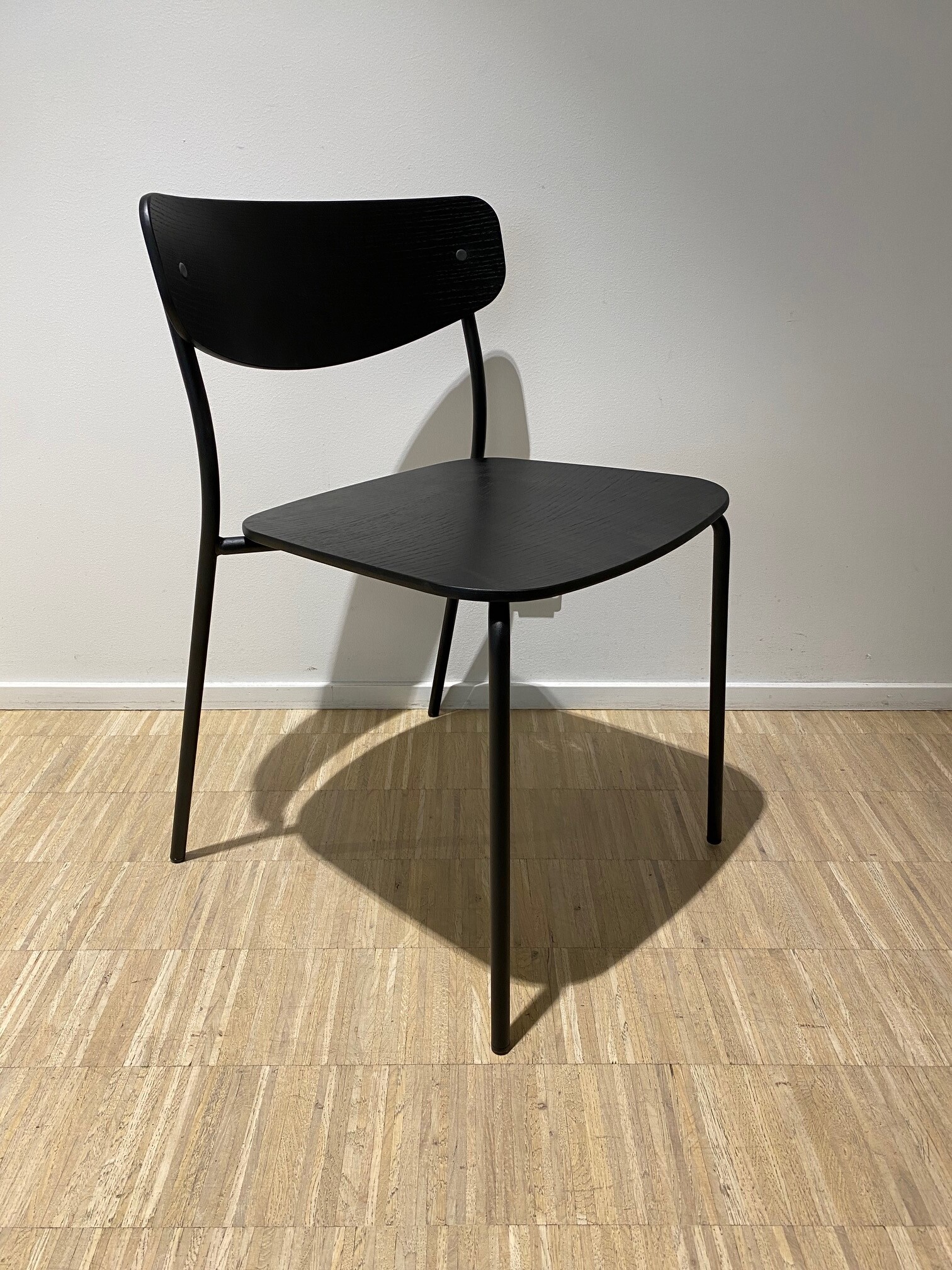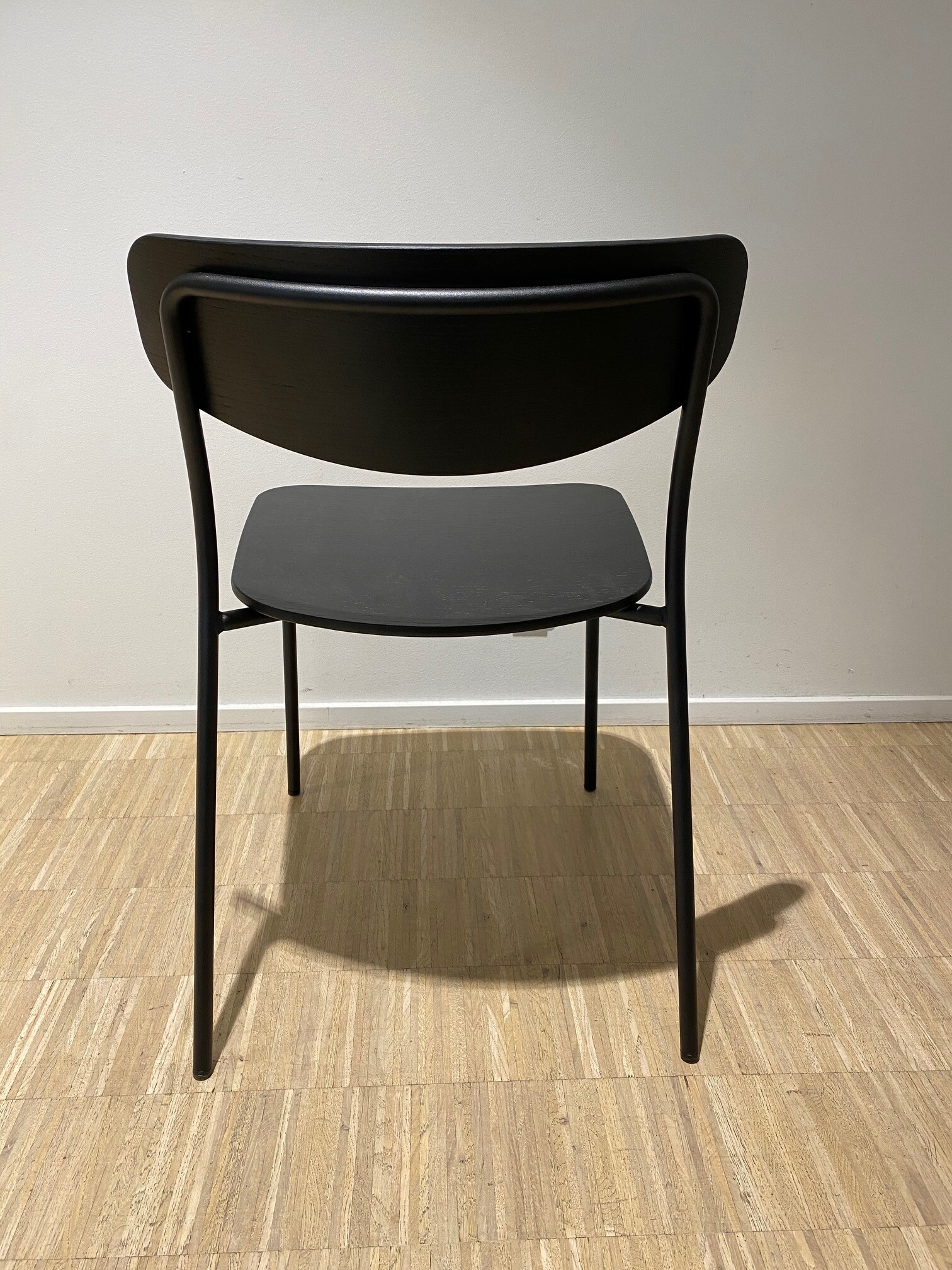 Sits och rygg i trä (svart). Ben i metall (svart).