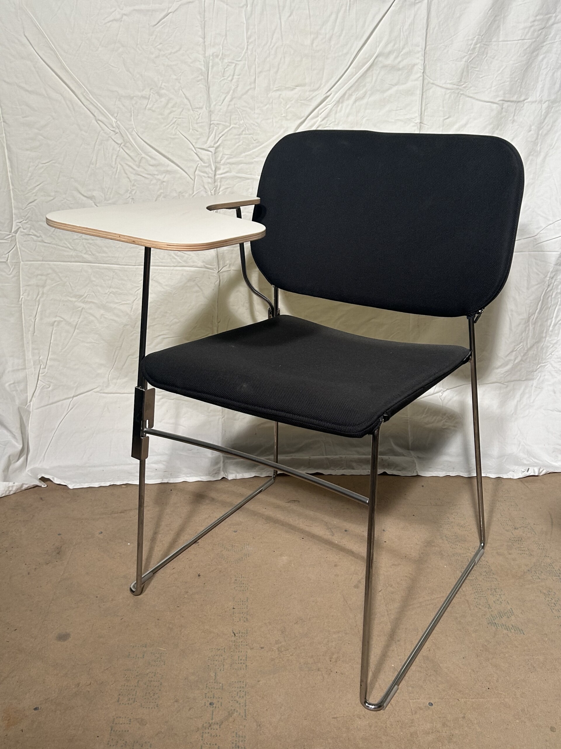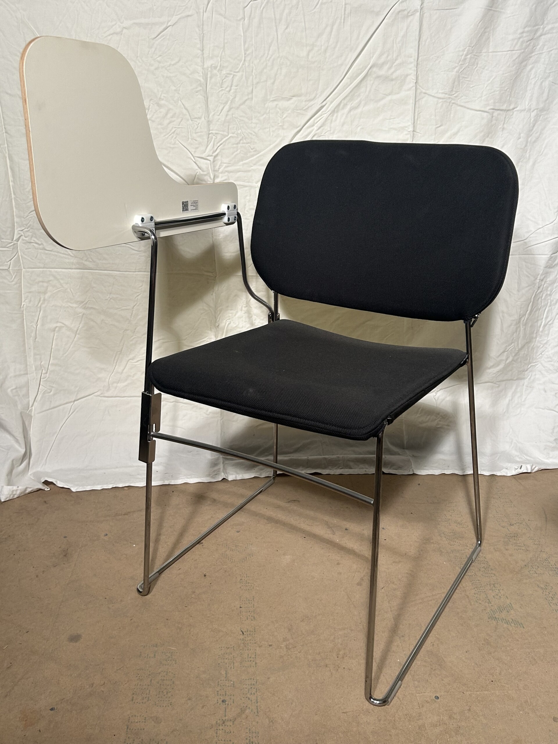 Sits och rygg i tyg (svart). Medstativ i metall (krom).