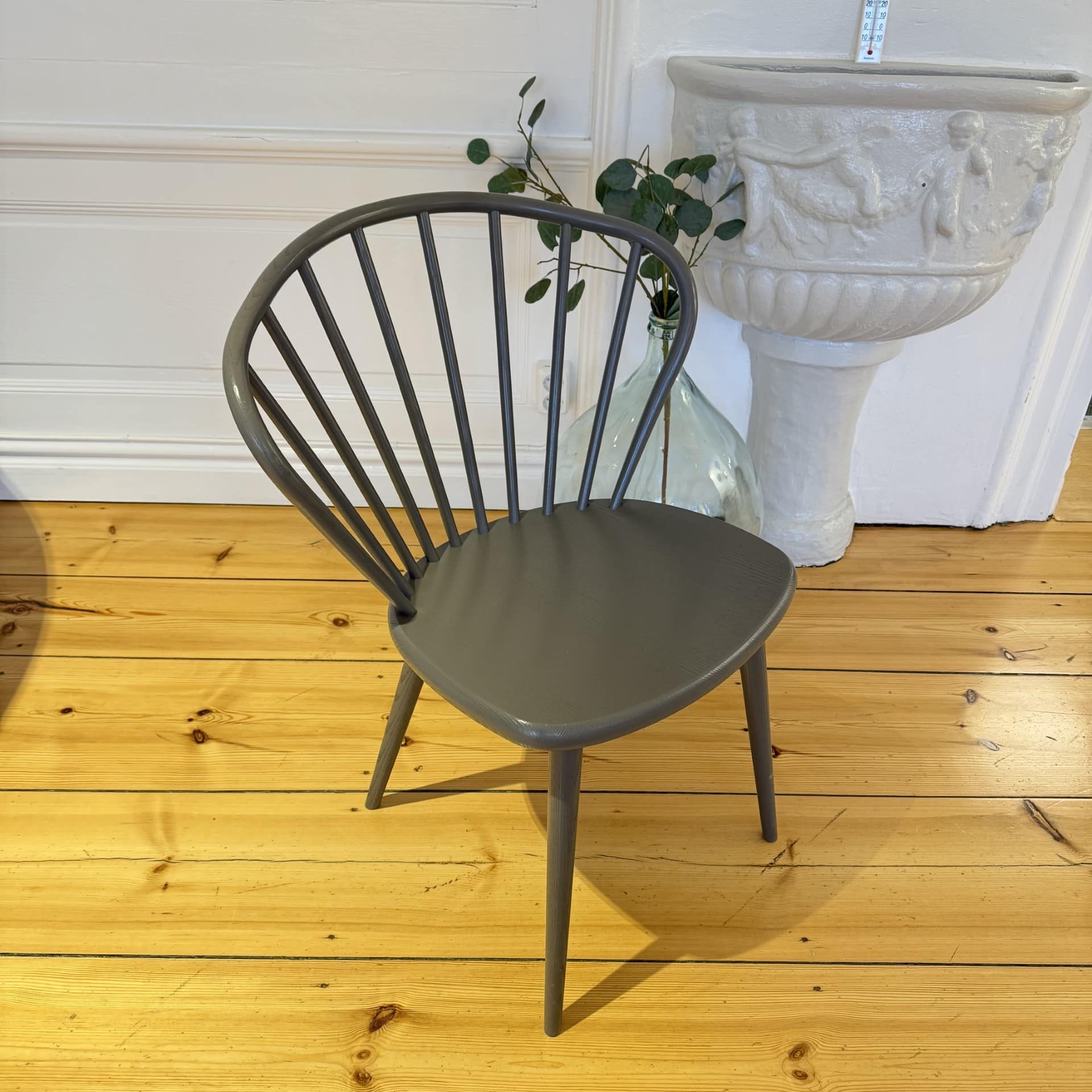 Sits, rygg och ben i trä (grå).