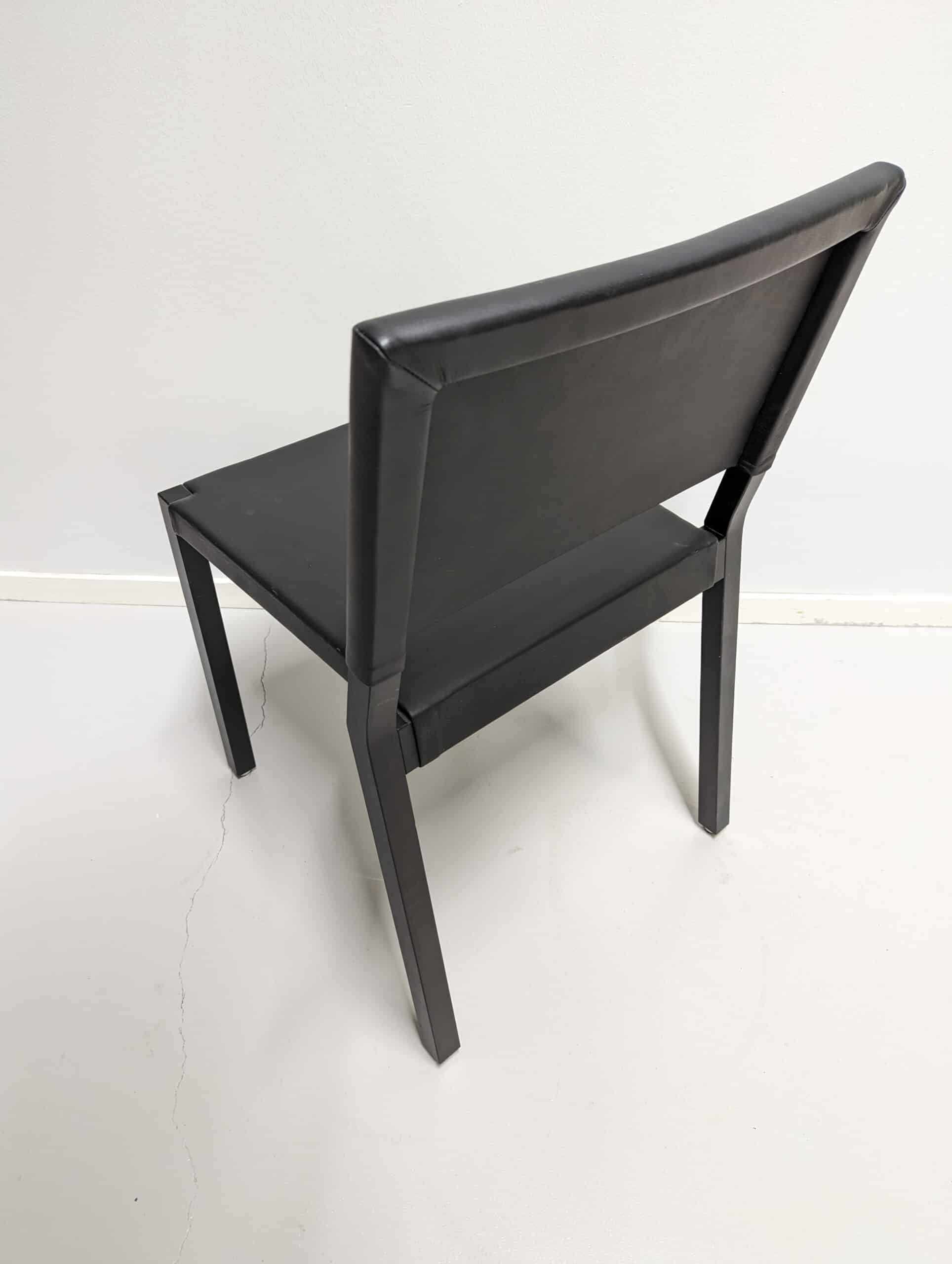 Sits och rygg i läder (svart). Ben i trä (svart).