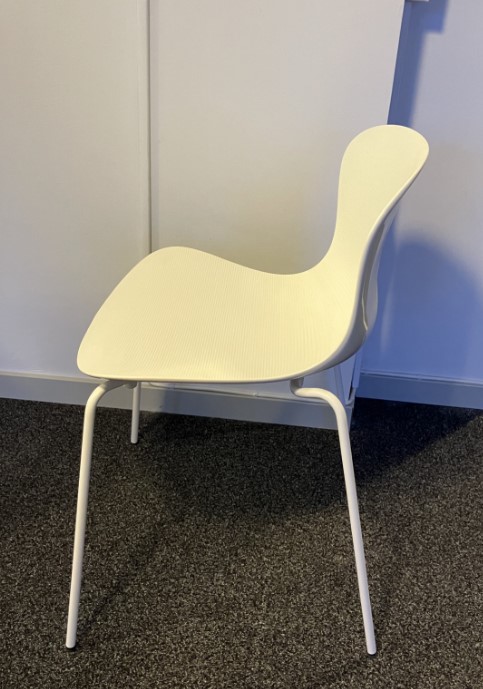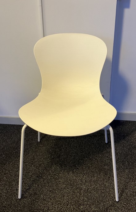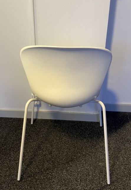 Sits och rygg i plast (vit). Ben i metall (vit).