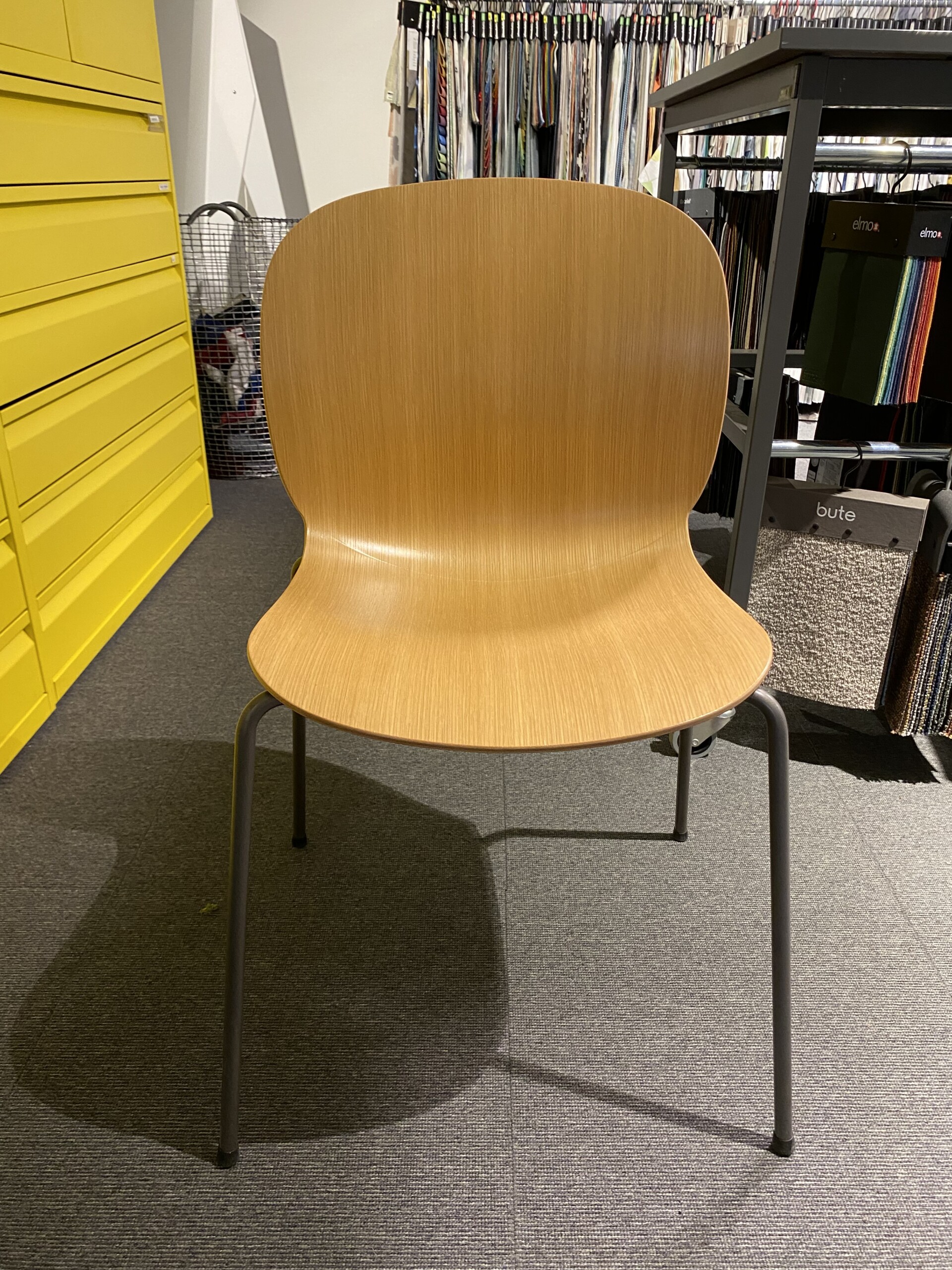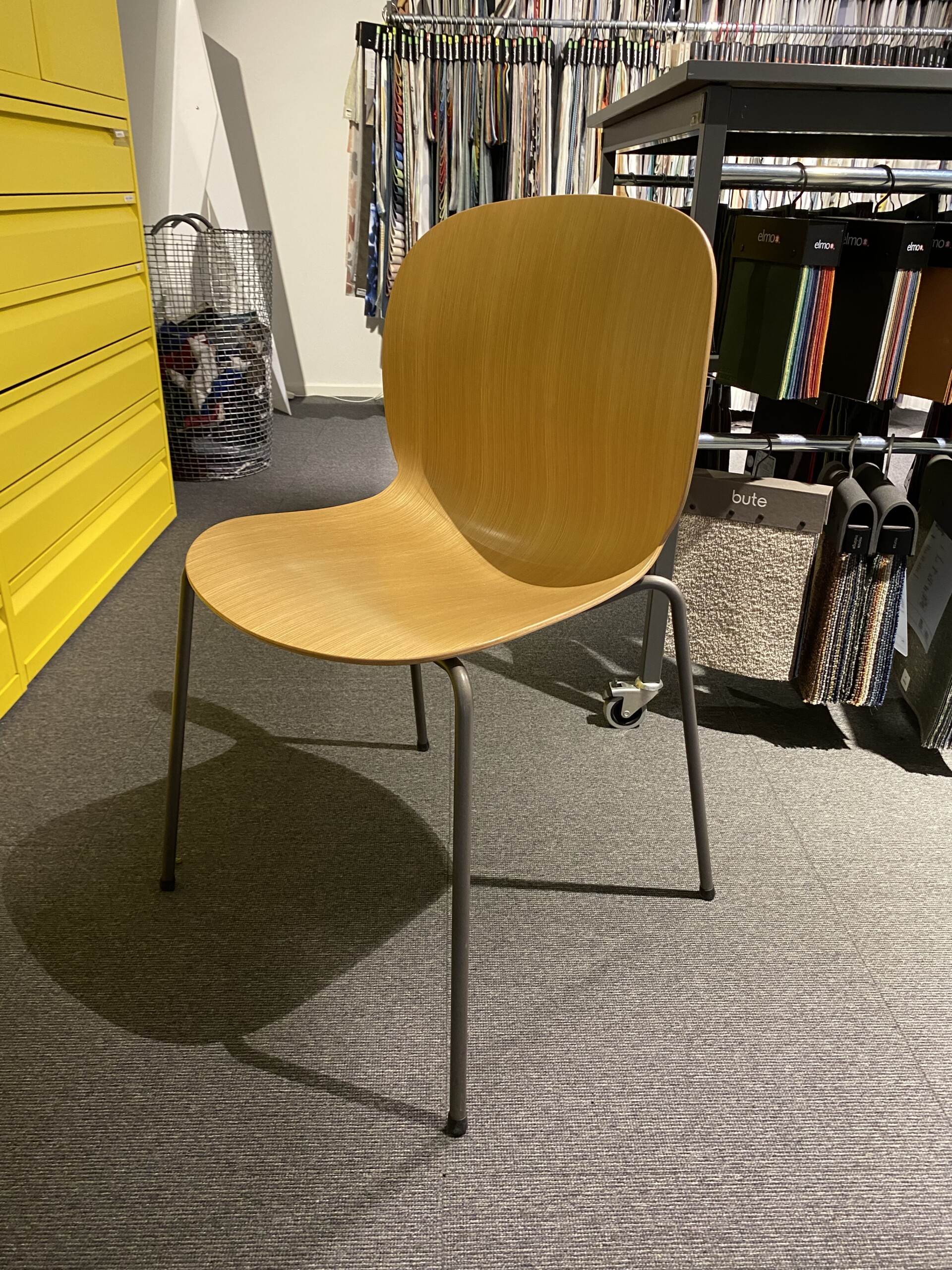 Sits och rygg i trä (ek). Ben i metall (grå).