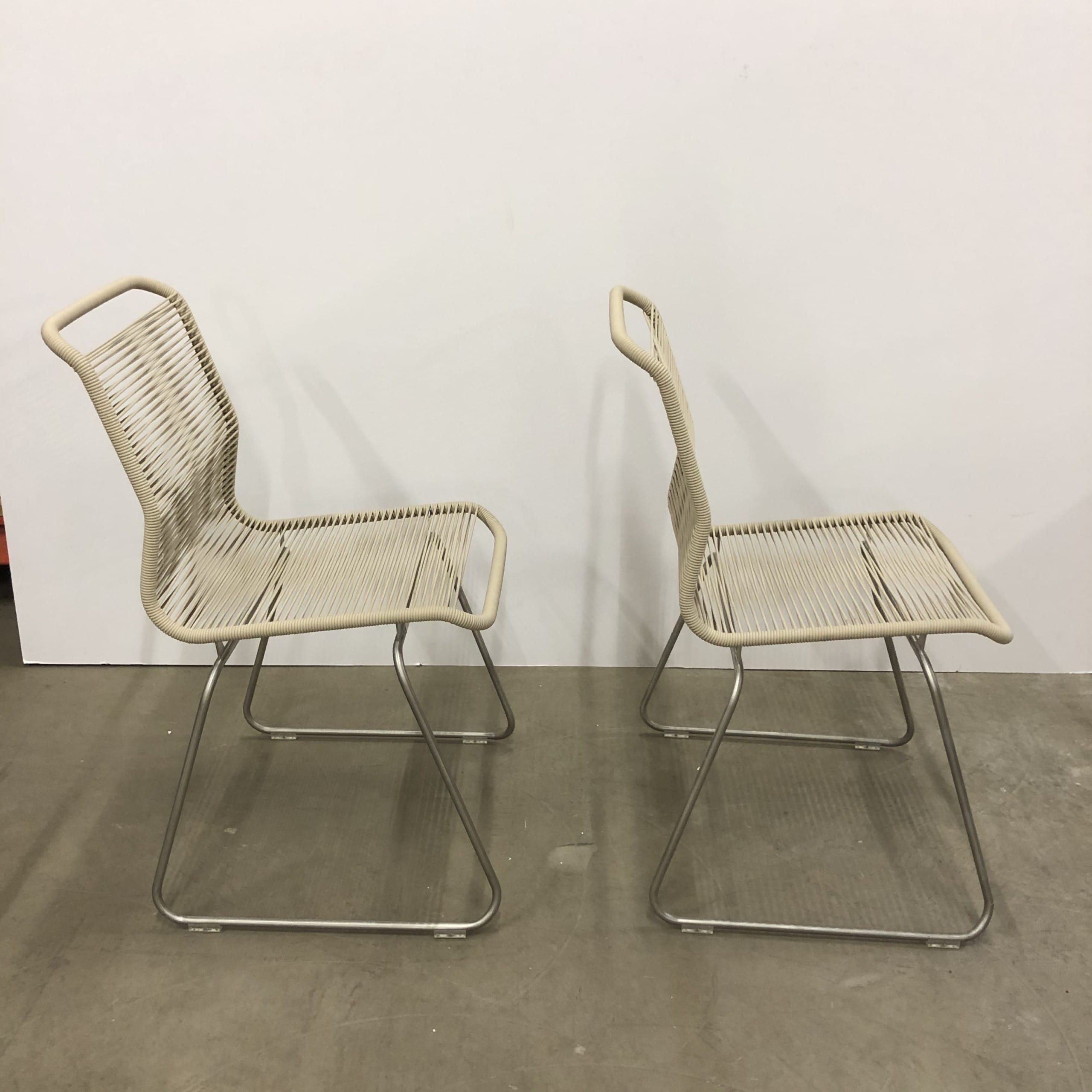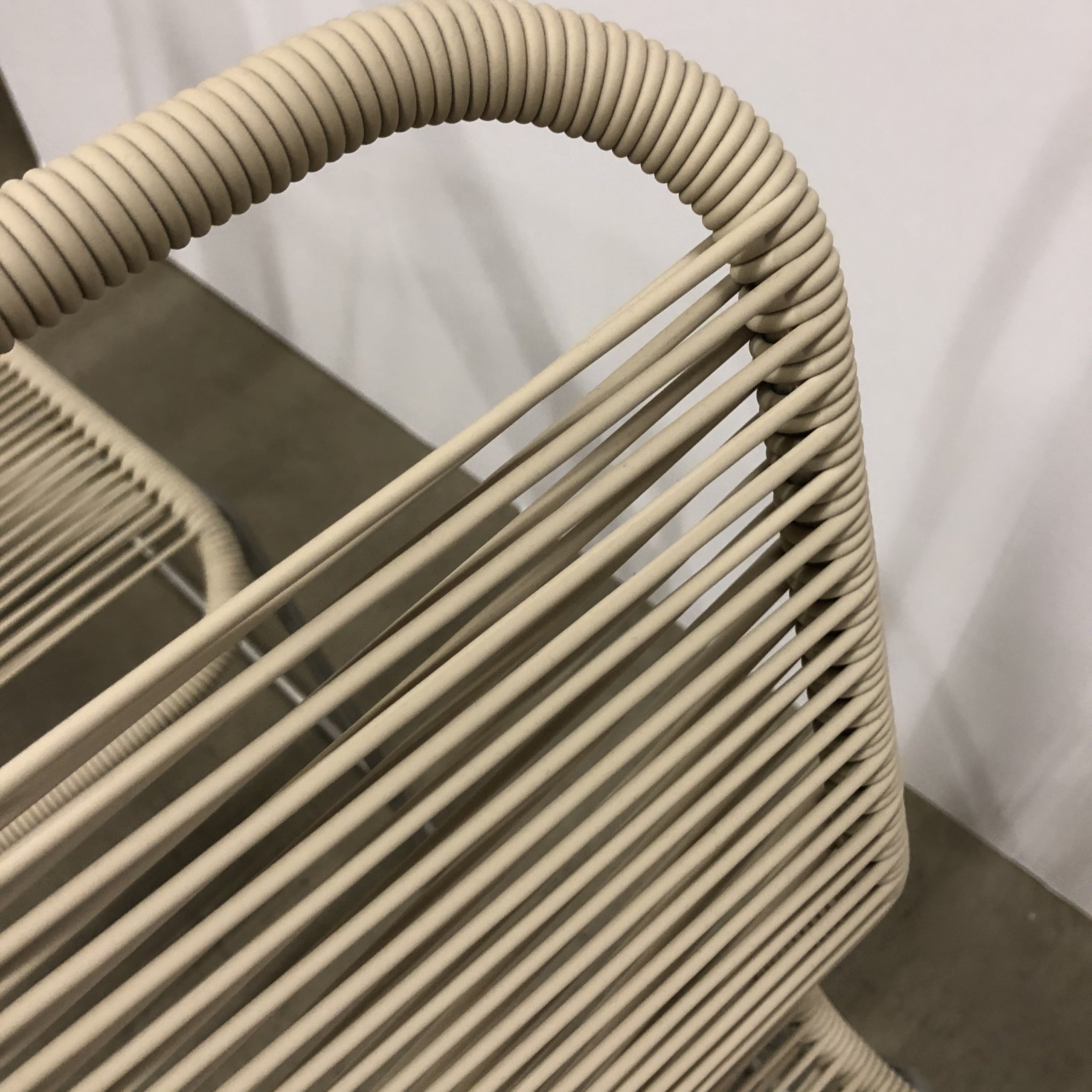 Sits och rygg i plast (beige). Medstativ i metall (aluminium).