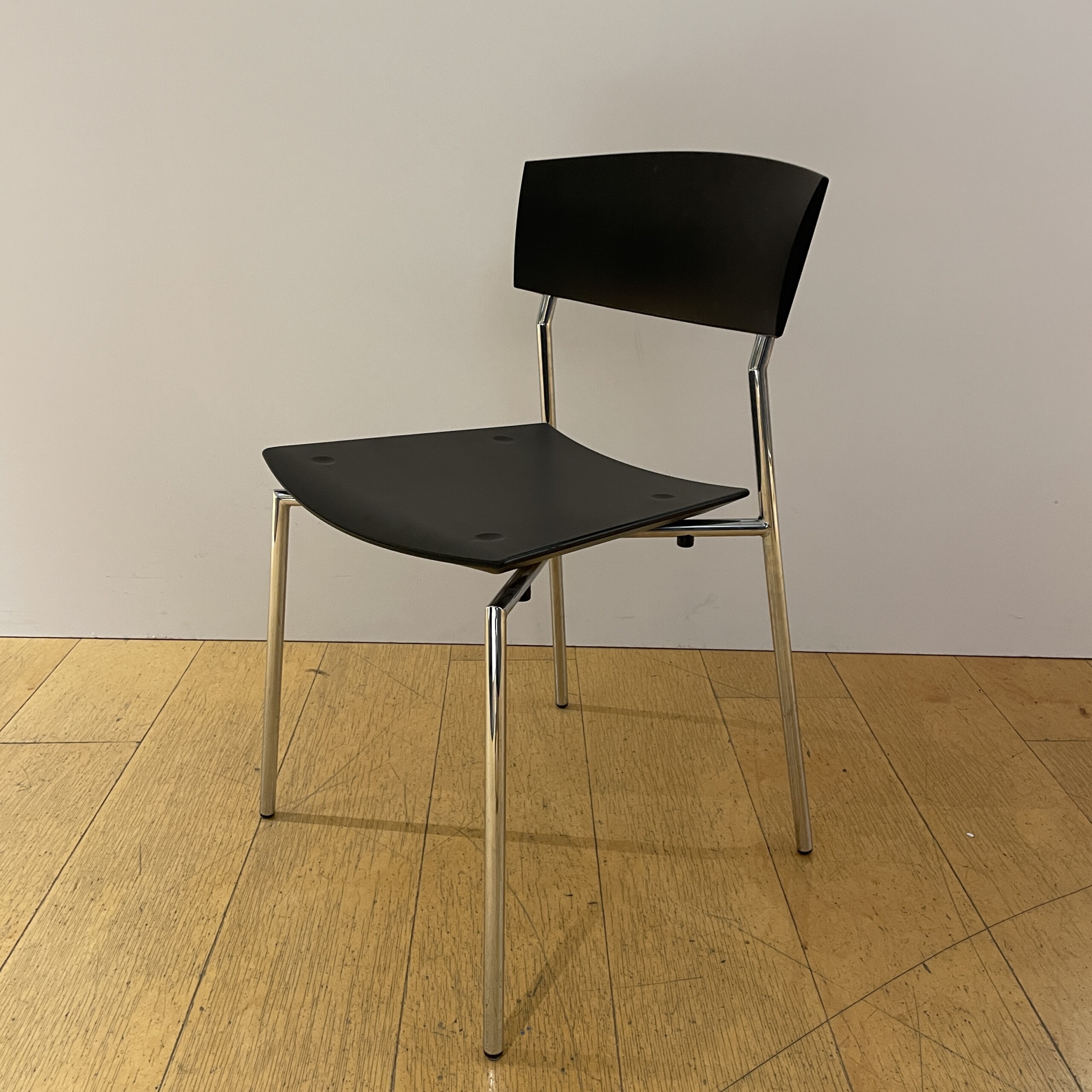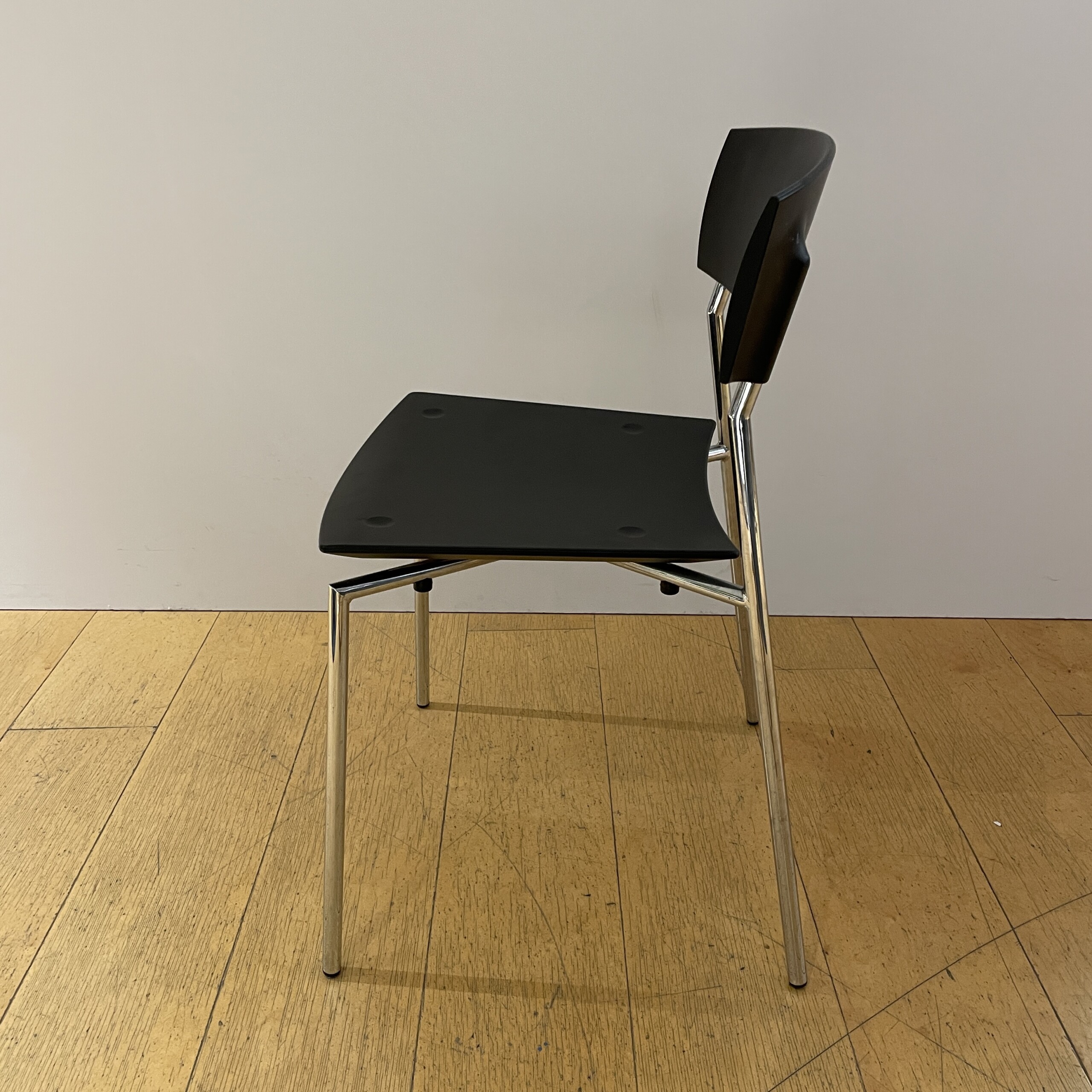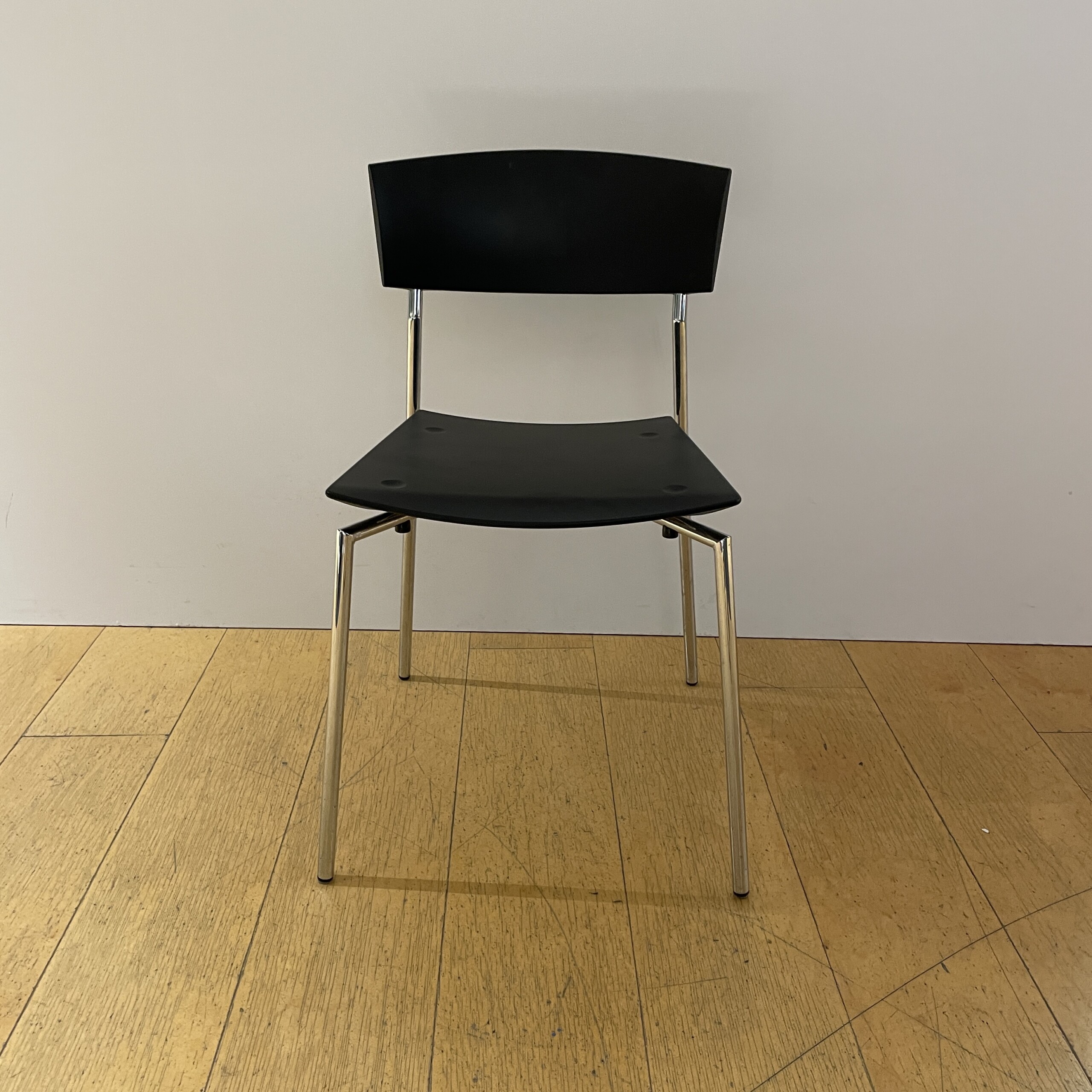 Sits och rygg i gummi (svart). Ben i metall (krom).