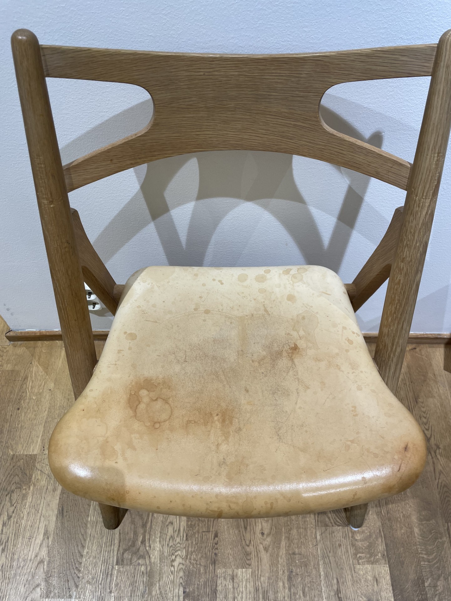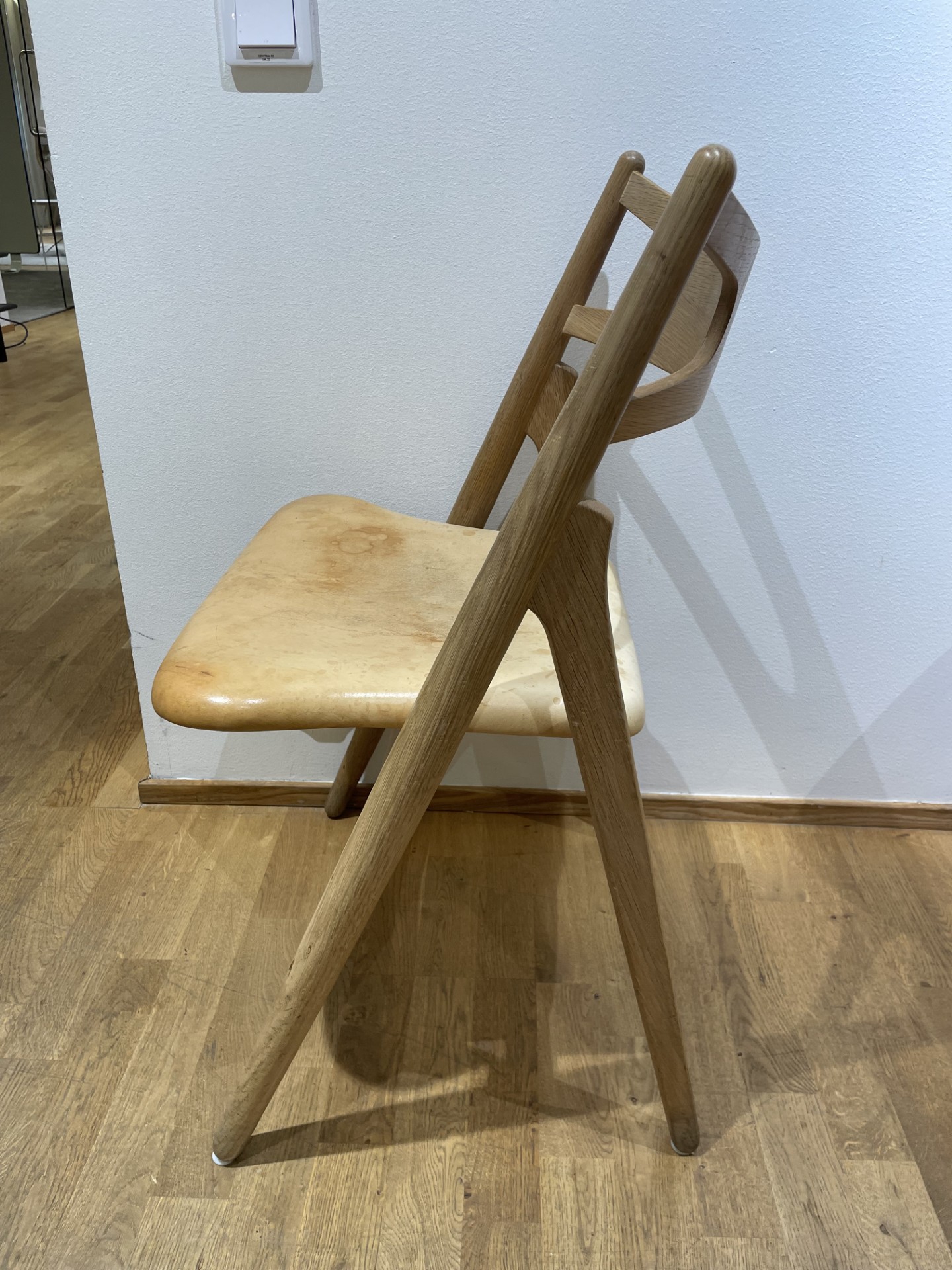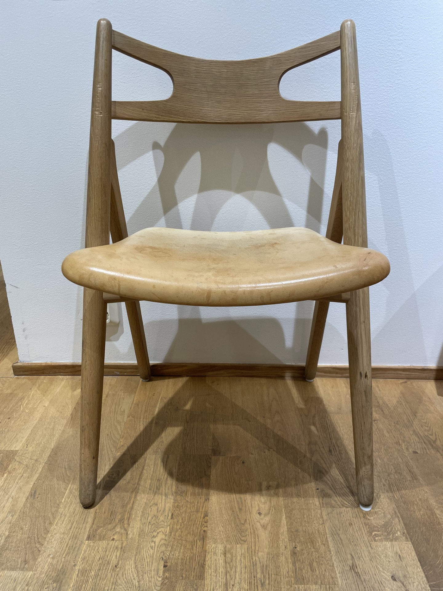 Sits i läder. Rygg i trä (ek). Ben i trä (ek).