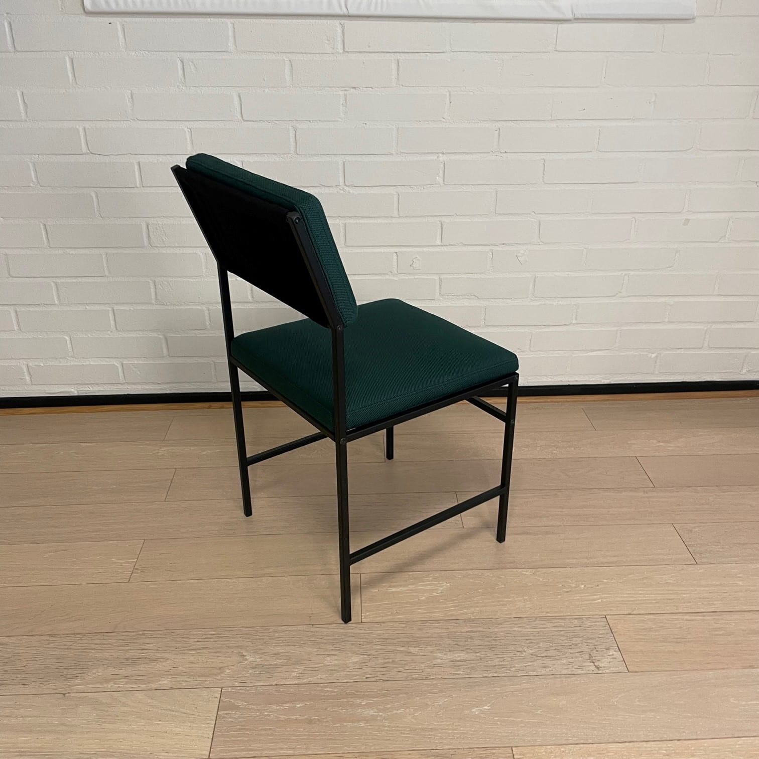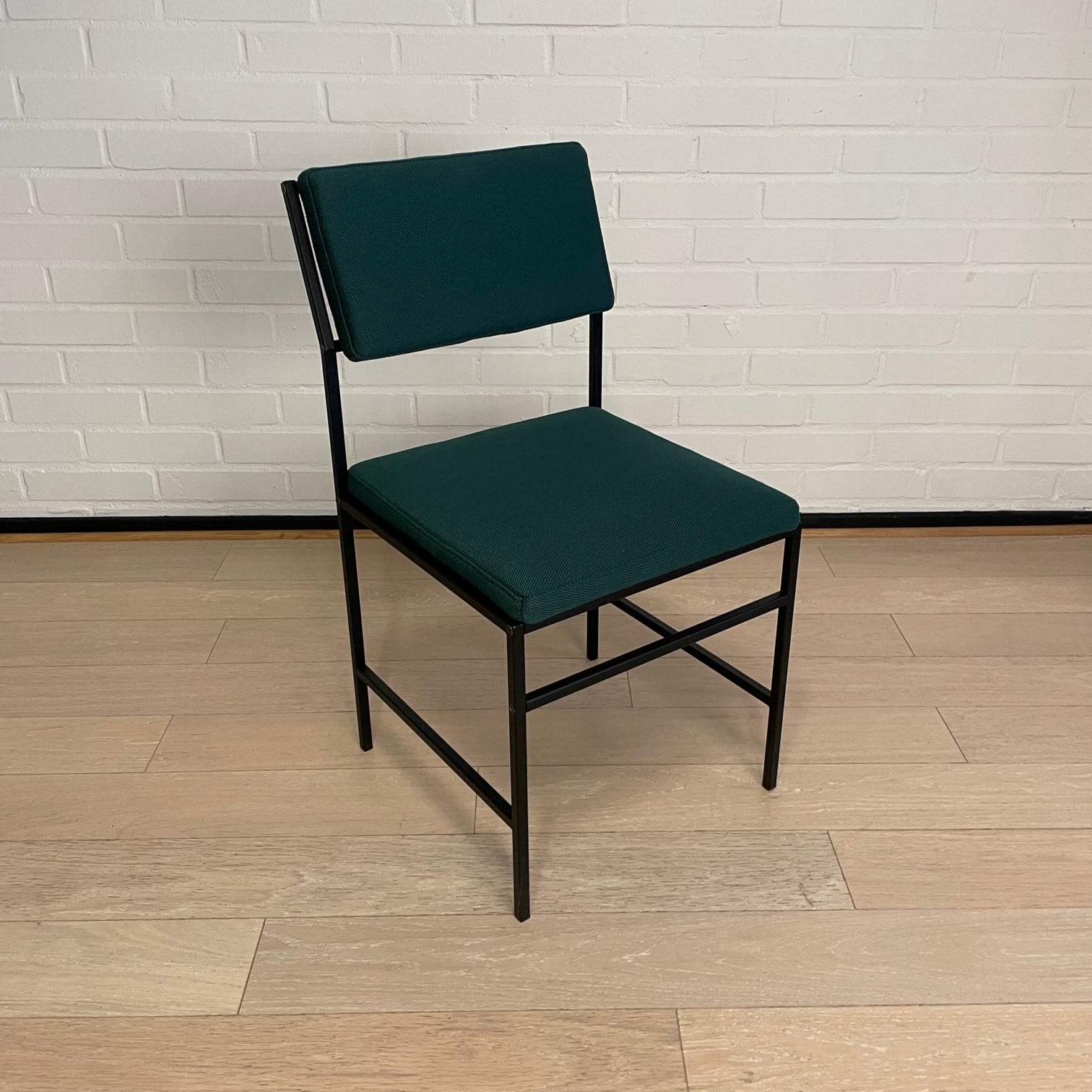 Sits och rygg i tyg. Ben i metall (svart).