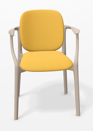 Sits och rygg i konstläder (gul). Ben i trä (ek).