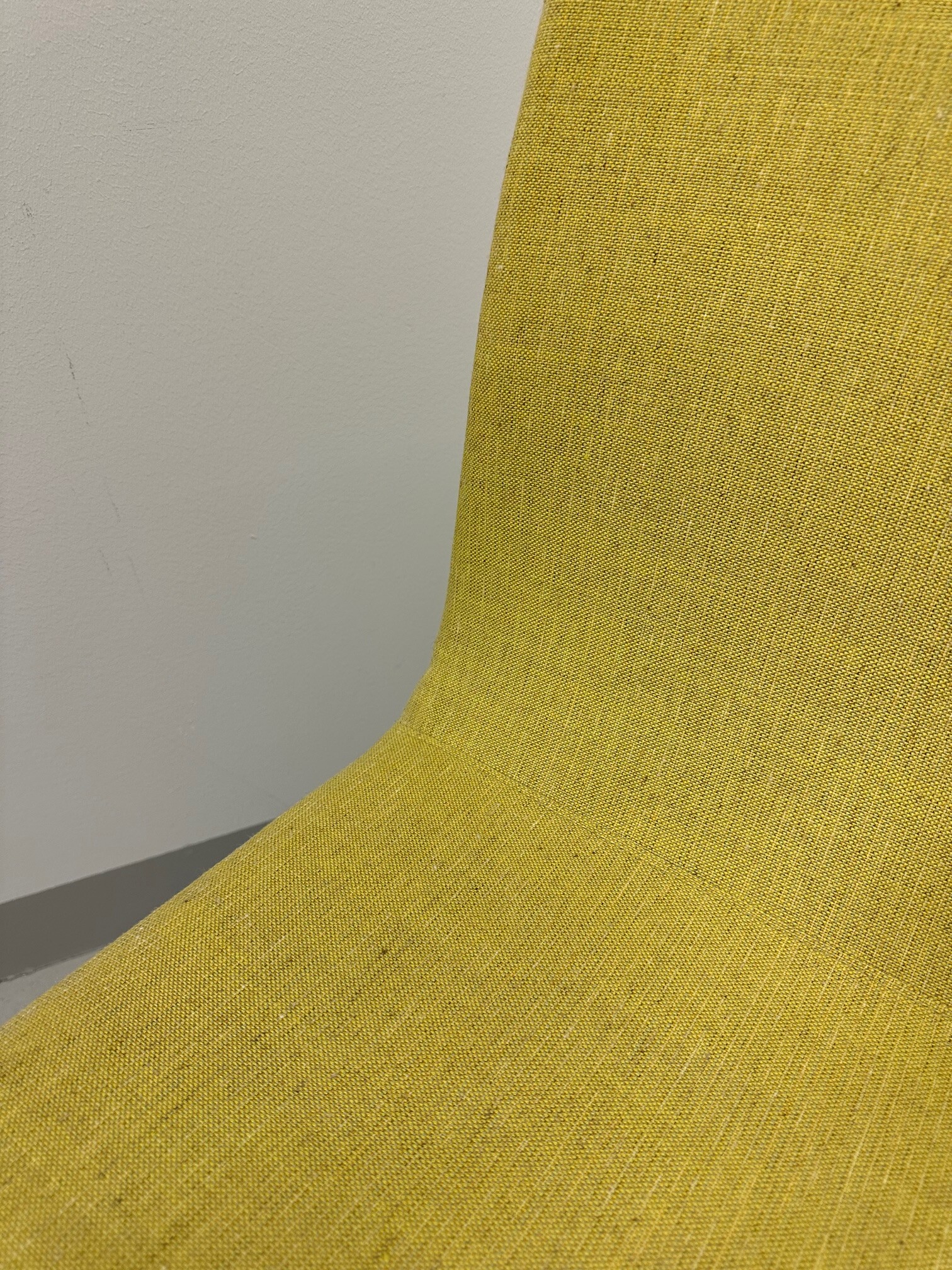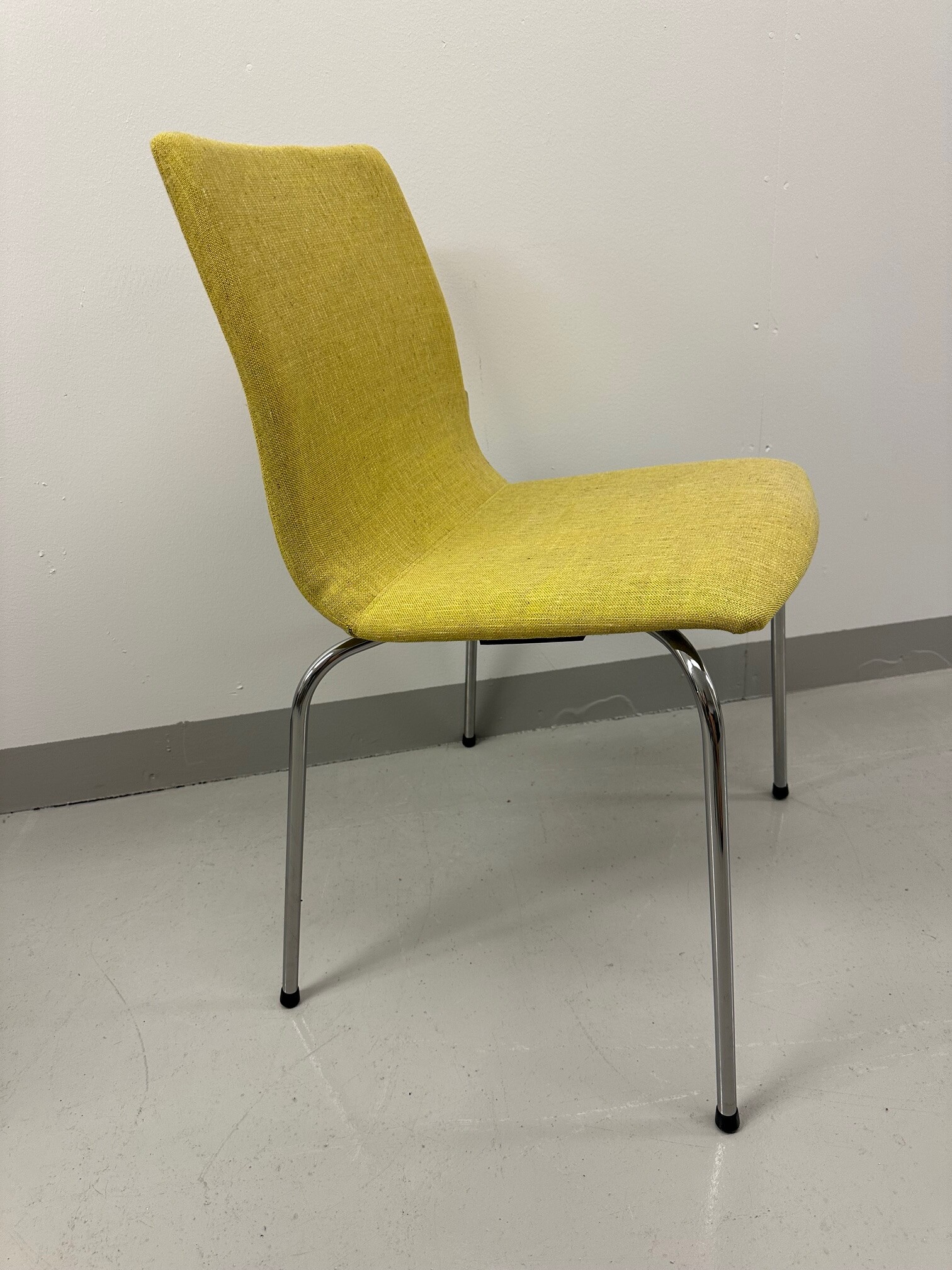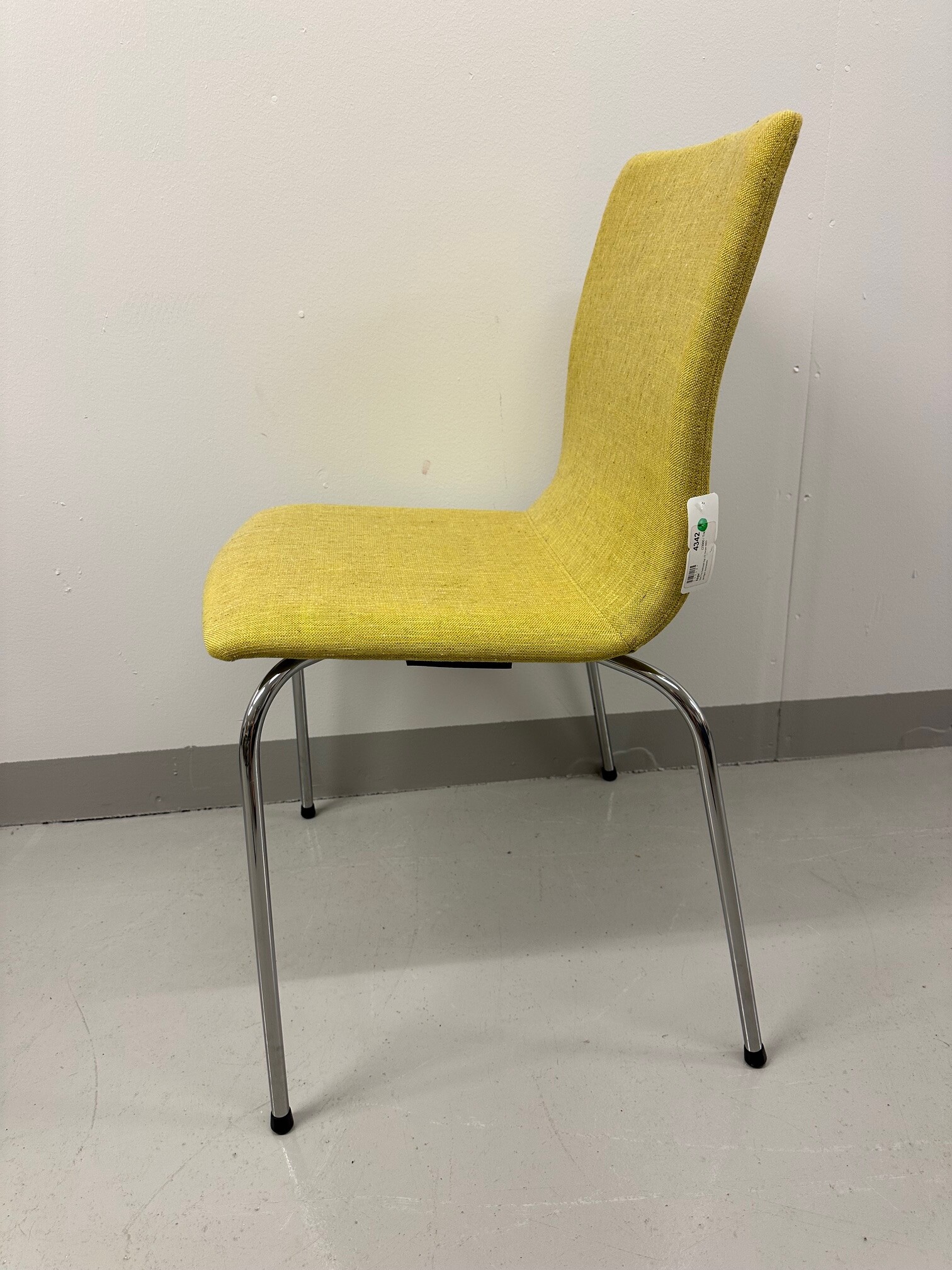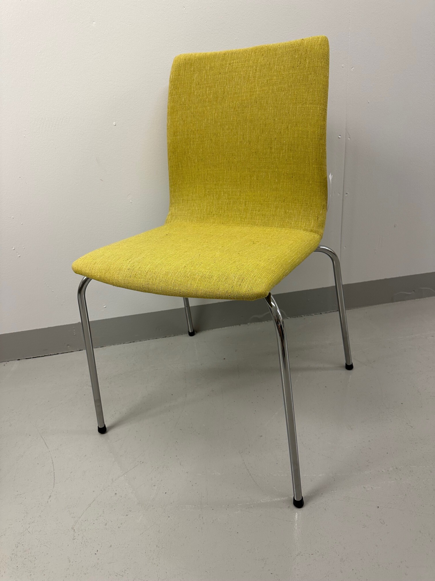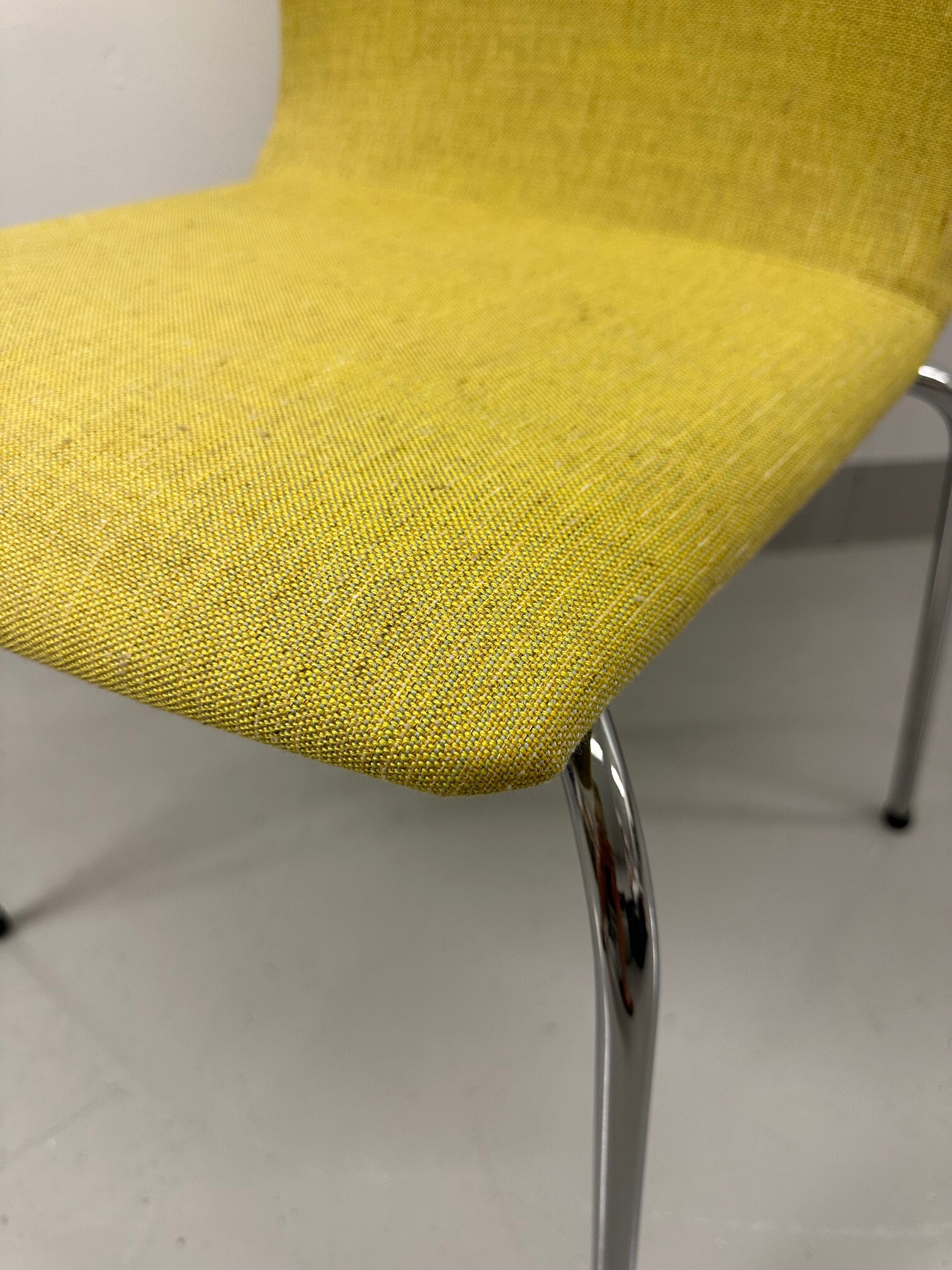 Sits och rygg i tyg (gul). Ben i metall (krom).