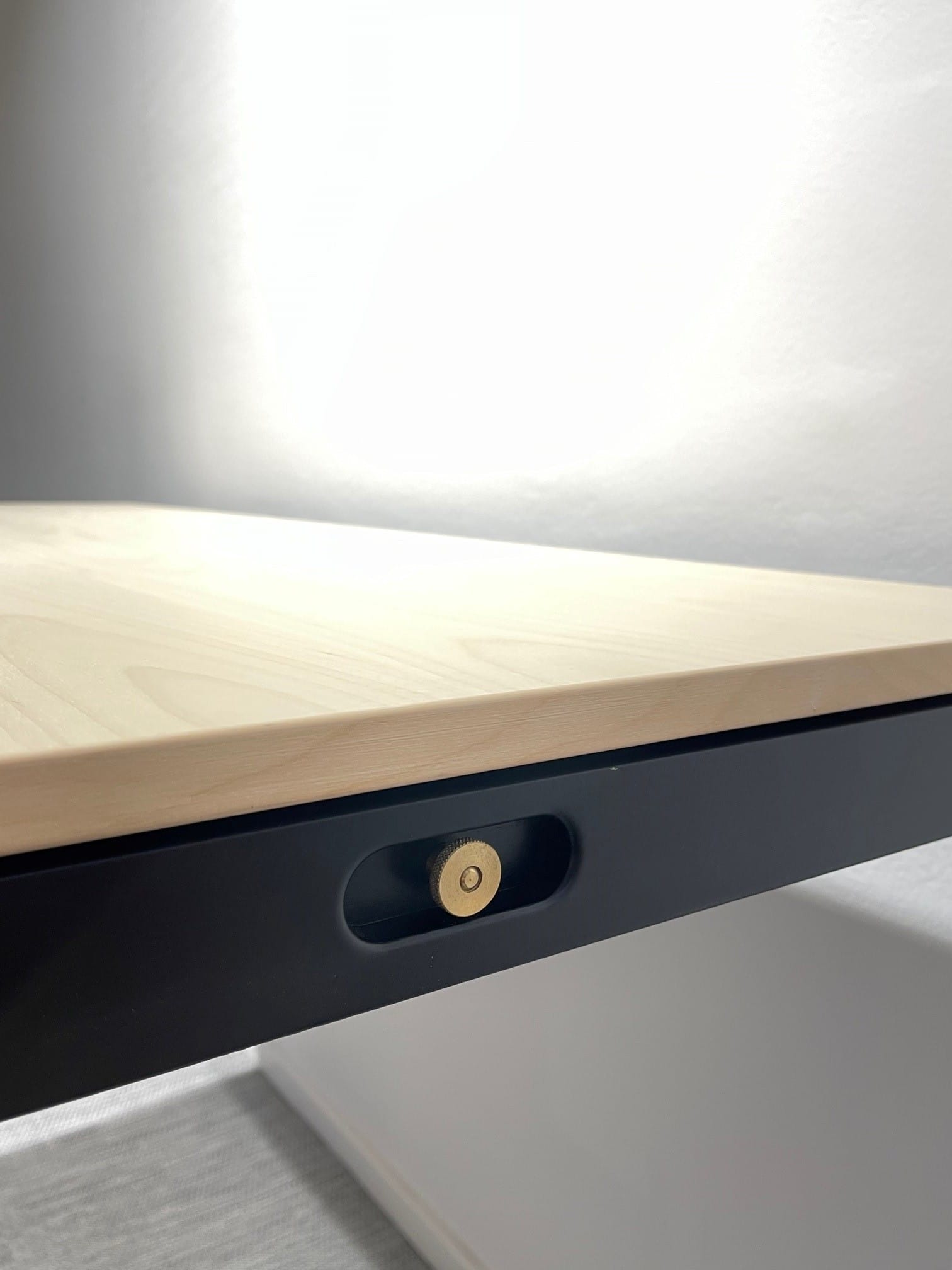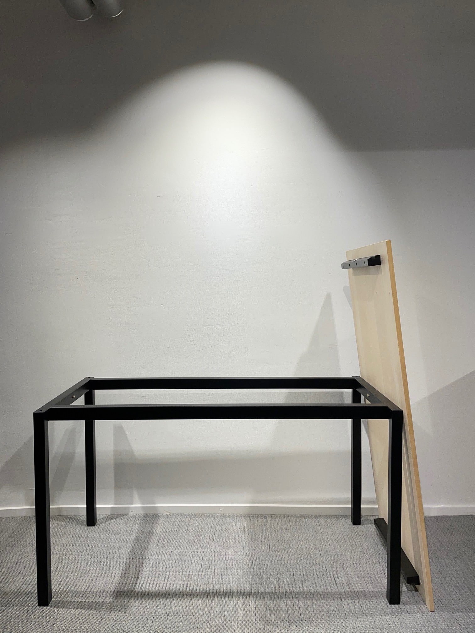 Bordsskiva i trä (björk). Underrede i trä (svart).